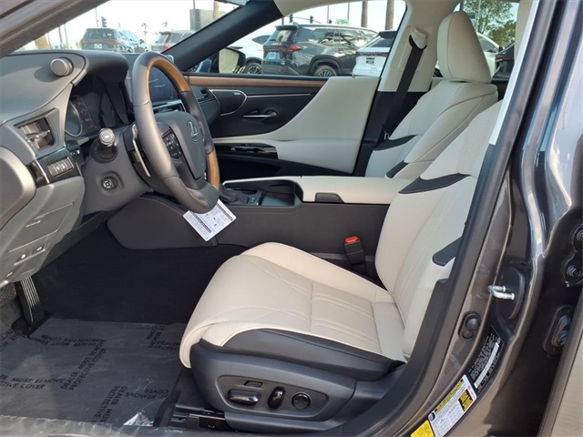 This Lexus ES is equipped with the following features: Accessory Package (Z1) (Cargo Net, Carpet Trunk Mat, Key Gloves, and Wheel Locks), Luxury Package, 2.5L I4 DOHC 16V VVT, 02 Leather, 10 Speakers, 4-Wheel Disc Brakes, ABS brakes, Air Conditioning, Alloy wheels, AM/FM radio: SiriusXM, Auto High-beam Headlights, Auto tilt-away steering wheel, Auto-dimming door mirrors, Auto-dimming Rear-View mirror, Automatic temperature control, Brake assist, Bumpers: body-color, Compass, Delay-off headlights, Driver door bin, Driver vanity mirror, Dual front impact airbags, Dual front side impact airbags, Electronic Stability Control, Emergency communication system, Exterior Parking Camera Rear, Four wheel independent suspension, Front anti-roll bar, Front Bucket Seats, Front Center Armrest, Front dual zone A/C, Front reading lights, Fully automatic headlights, Garage door transmitter: HomeLink, Genuine wood dashboard insert, Genuine wood door panel insert, Hands-Free Power Open/Close Trunk, Head-Up Display (HUD), Heated & Ventilated Front Power Seats, Heated door mirrors, Heated front seats, Heated steering wheel, Illuminated entry, Knee airbag, Leather Shift Knob, Leather steering wheel, Low tire pressure warning, Memory seat, Navigation system: Drive Connect Cloud Navigation (subscription required), Navigation w/Mark Levinson Audio, Occupant sensing airbag, Outside temperature display, Overhead airbag, Overhead console, Panic alarm, Passenger door bin, Passenger vanity mirror, Power door mirrors, Power driver seat, Power moonroof, Power passenger seat, Power steering, Power windows, Quilted & Perforated Semi-Aniline Leather Seat Trim, Radio data system, Radio: Lexus Interface w/8" Touch Screen, Rain sensing wipers, Rear anti-roll bar, Rear reading lights, Rear seat center armrest, Rear side impact airbag, Rear Window Blind, Rear window defroster, Remote keyless entry, Security system, SmartAccess Key Card, Speed control, Speed-sensing steering, Steering wheel memory, Steering wheel mounted audio controls, Tachometer, Telescoping steering wheel, Tilt steering wheel, Traction control, Trip computer, Triple Beam LED Headlamps, Turn signal indicator mirrors, Variably intermittent wipers, Ventilated front seats, Wheels: 18" Split-10-Spoke Two-Tone Alloy, Wheels: 18" Split-5-Spoke Alloy, and Wireless Apple CarPlay/Wireless Android Auto.