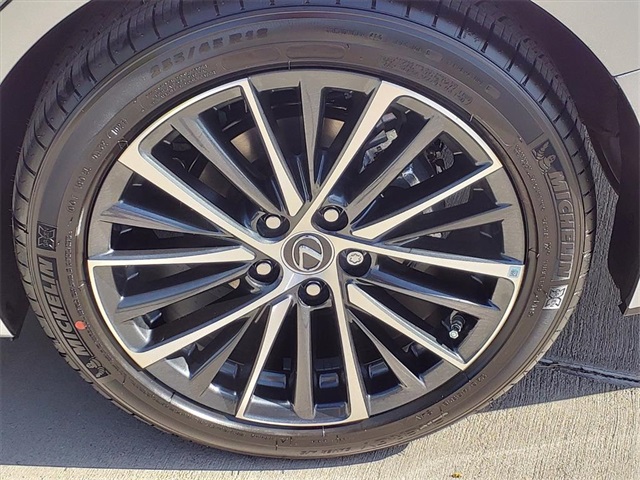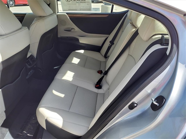 This Lexus ES is equipped with the following features: Accessory Package (Z1) (Cargo Net, Carpet Trunk Mat, Key Gloves, and Wheel Locks), Premium Package (Heated & Ventilated Seats, Heated Leather 3-Spoke Steering Wheel, Intuitive Parking Assist w/Auto Braking, Lexus Memory System, Parking Support Alert/Brake, Perforated NuLuxe Seat Trim (LD), Power Tilt/Telescoping Steering Wheel, Rain Sensing Wipers, Windshield De-Icer, and Wireless Charger), 02 Artificial Leather, 10 Speakers, 4-Wheel Disc Brakes, ABS brakes, Air Conditioning, All-Weather Floor Liners, All-Weather Floor Liners w/Trunk Tray, All-Weather Trunk Tray, Alloy wheels, AM/FM radio: SiriusXM, Auto High-beam Headlights, Auto-dimming door mirrors, Auto-dimming Rear-View mirror, Automatic temperature control, Brake assist, Bumpers: body-color, Compass, Delay-off headlights, Driver door bin, Driver vanity mirror, Dual front impact airbags, Dual front side impact airbags, Electronic Stability Control, Emergency communication system, Exterior Parking Camera Rear, Four wheel independent suspension, Front anti-roll bar, Front Bucket Seats, Front Center Armrest, Front dual zone A/C, Front Power Seats, Front reading lights, Fully automatic headlights, Garage door transmitter: HomeLink, Heated door mirrors, Illuminated entry, Knee airbag, Leather Shift Knob, Leather steering wheel, Low tire pressure warning, Navigation system: Drive Connect Cloud Navigation (subscription required), Occupant sensing airbag, Outside temperature display, Overhead airbag, Overhead console, Panic alarm, Passenger door bin, Passenger vanity mirror, Perforated NuLuxe Seat Trim, Power door mirrors, Power driver seat, Power moonroof, Power passenger seat, Power steering, Power windows, Quick Charging Cables-Mobile, Radio data system, Radio: Lexus Interface w/8" Touch Screen, Rear anti-roll bar, Rear reading lights, Rear seat center armrest, Rear side impact airbag, Rear window defroster, Remote keyless entry, Security system, Speed control, Speed-sensing steering, Steering wheel mounted audio controls, Tachometer, Telescoping steering wheel, Tilt steering wheel, Traction control, Trip computer, Turn signal indicator mirrors, Variably intermittent wipers, Wheels: 17" Twin-V-Spoke Alloy, Wheels: 18" Split-10-Spoke Two-Tone Alloy, and Wireless Apple CarPlay/Wireless Android Auto.