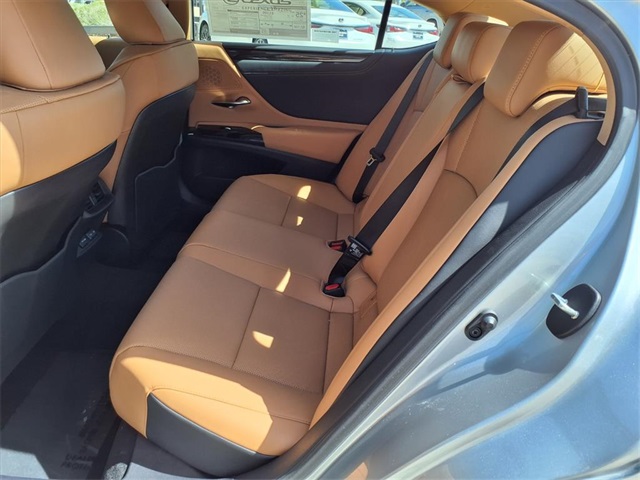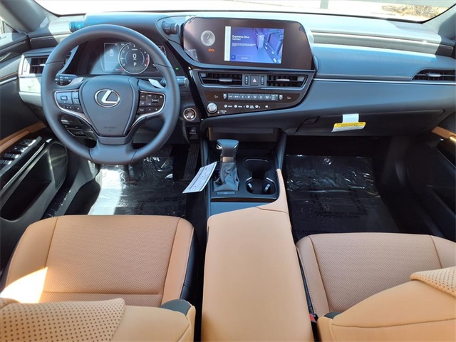 This Lexus ES is equipped with the following features: Accessory Package (Z1) (Cargo Net, Carpet Trunk Mat, Key Gloves, and Wheel Locks), 40 Artificial Leather, 10 Speakers, 4-Wheel Disc Brakes, ABS brakes, Air Conditioning, All-Weather Floor Liners, All-Weather Floor Liners w/Trunk Tray, All-Weather Trunk Tray, Alloy wheels, AM/FM radio: SiriusXM, Auto High-beam Headlights, Auto-dimming door mirrors, Auto-dimming Rear-View mirror, Automatic temperature control, Brake assist, Bumpers: body-color, Compass, Delay-off headlights, Driver door bin, Driver vanity mirror, Dual front impact airbags, Dual front side impact airbags, Electronic Stability Control, Emergency communication system, Exterior Parking Camera Rear, Four wheel independent suspension, Front anti-roll bar, Front Bucket Seats, Front Center Armrest, Front dual zone A/C, Front Power Seats, Front reading lights, Fully automatic headlights, Garage door transmitter: HomeLink, Heated door mirrors, Illuminated Door Sills, Illuminated entry, Knee airbag, Leather Shift Knob, Leather steering wheel, Low tire pressure warning, Navigation system: Drive Connect Cloud Navigation (subscription required), Occupant sensing airbag, Outside temperature display, Overhead airbag, Overhead console, Panic alarm, Passenger door bin, Passenger vanity mirror, Perforated NuLuxe Seat Trim, Power door mirrors, Power driver seat, Power moonroof, Power passenger seat, Power steering, Power windows, Radio data system, Radio: Lexus Interface w/8" Touch Screen, Rear anti-roll bar, Rear Bumper Applique, Rear reading lights, Rear seat center armrest, Rear side impact airbag, Rear window defroster, Remote keyless entry, Security system, Speed control, Speed-sensing steering, Steering wheel mounted audio controls, Tachometer, Telescoping steering wheel, Tilt steering wheel, Traction control, Trip computer, Turn signal indicator mirrors, Variably intermittent wipers, Wheels: 17" Twin-V-Spoke Alloy, and Wireless Apple CarPlay/Wireless Android Auto.