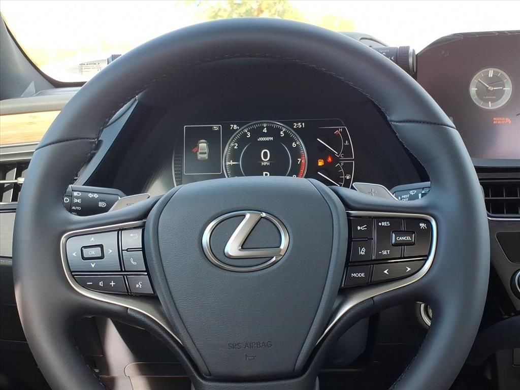 This Lexus ES is equipped with the following features: Premium Package (Heated & Ventilated Seats, Heated Leather 3-Spoke Steering Wheel, Intuitive Parking Assist w/Auto Braking, Lexus Memory System, Parking Support Alert/Brake, Perforated NuLuxe Seat Trim (LD), Power Tilt/Telescoping Steering Wheel, Rain Sensing Wipers, Windshield De-Icer, and Wireless Charger), 02 Artificial Leather, 10 Speakers, 4-Wheel Disc Brakes, ABS brakes, Air Conditioning, All-Weather Floor Liners, All-Weather Floor Liners w/Trunk Tray, All-Weather Trunk Tray, Alloy wheels, AM/FM radio: SiriusXM, Auto High-beam Headlights, Auto-dimming door mirrors, Auto-dimming Rear-View mirror, Automatic temperature control, Brake assist, Bumpers: body-color, Cargo Net, Compass, Delay-off headlights, Driver door bin, Driver vanity mirror, Dual front impact airbags, Dual front side impact airbags, Electronic Stability Control, Emergency communication system, Exterior Parking Camera Rear, Four wheel independent suspension, Front anti-roll bar, Front Bucket Seats, Front Center Armrest, Front dual zone A/C, Front Power Seats, Front reading lights, Fully automatic headlights, Garage door transmitter: HomeLink, Heated door mirrors, Illuminated Door Sills, Illuminated entry, Key Gloves, Knee airbag, Leather Shift Knob, Leather steering wheel, Low tire pressure warning, Navigation system: Drive Connect Cloud Navigation (subscription required), Occupant sensing airbag, Outside temperature display, Overhead airbag, Overhead console, Panic alarm, Passenger door bin, Passenger vanity mirror, Perforated NuLuxe Seat Trim, Power door mirrors, Power driver seat, Power moonroof, Power passenger seat, Power steering, Power windows, Radio data system, Radio: Lexus Interface w/8" Touch Screen, Rear anti-roll bar, Rear Bumper Applique, Rear reading lights, Rear seat center armrest, Rear side impact airbag, Rear window defroster, Remote keyless entry, Security system, Speed control, Speed-sensing steering, Steering wheel mounted audio controls, Tachometer, Telescoping steering wheel, Tilt steering wheel, Traction control, Trip computer, Turn signal indicator mirrors, Variably intermittent wipers, Wheels: 17" Twin-V-Spoke Alloy, Wheels: 18" Split-10-Spoke Two-Tone Alloy, and Wireless Apple CarPlay/Wireless Android Auto.