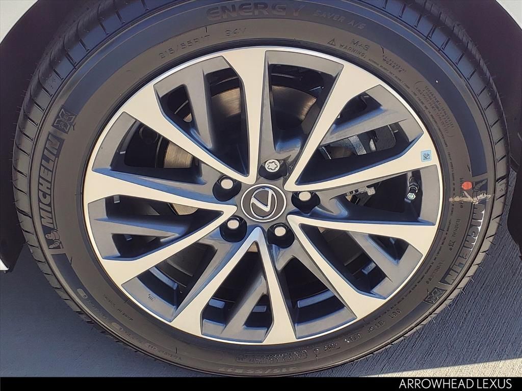 This Lexus ES is equipped with the following features: 70 Artificial Leather, 10 Speakers, 4-Wheel Disc Brakes, ABS brakes, Air Conditioning, Alloy wheels, AM/FM radio: SiriusXM, Auto High-beam Headlights, Auto-dimming door mirrors, Auto-dimming Rear-View mirror, Automatic temperature control, Brake assist, Bumpers: body-color, Compass, Delay-off headlights, Driver door bin, Driver vanity mirror, Dual front impact airbags, Dual front side impact airbags, Electronic Stability Control, Emergency communication system, Exterior Parking Camera Rear, Four wheel independent suspension, Front anti-roll bar, Front Bucket Seats, Front Center Armrest, Front dual zone A/C, Front Power Seats, Front reading lights, Fully automatic headlights, Garage door transmitter: HomeLink, Heated door mirrors, Illuminated entry, Knee airbag, Leather Shift Knob, Leather steering wheel, Low tire pressure warning, Navigation system: Drive Connect Cloud Navigation (subscription required), Occupant sensing airbag, Outside temperature display, Overhead airbag, Overhead console, Panic alarm, Passenger door bin, Passenger vanity mirror, Perforated NuLuxe Seat Trim, Power door mirrors, Power driver seat, Power moonroof, Power passenger seat, Power steering, Power windows, Quick Charging Cables-Mobile, Radio data system, Radio: Lexus Interface w/8" Touch Screen, Rear anti-roll bar, Rear reading lights, Rear seat center armrest, Rear side impact airbag, Rear window defroster, Remote keyless entry, Security system, Speed control, Speed-sensing steering, Steering wheel mounted audio controls, Tachometer, Telescoping steering wheel, Tilt steering wheel, Traction control, Trip computer, Turn signal indicator mirrors, Variably intermittent wipers, Wheels: 17" Twin-V-Spoke Alloy, and Wireless Apple CarPlay/Wireless Android Auto.