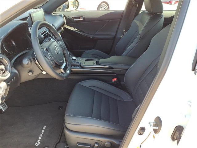 This Lexus IS is equipped with the following features: 62 Artificial Leather, 10 Speakers, 4-Wheel Disc Brakes, ABS brakes, Air Conditioning, Alloy wheels, AM/FM radio: SiriusXM, Apple CarPlay/Android Auto, Auto High-beam Headlights, Auto-dimming door mirrors, Auto-dimming Rear-View mirror, Automatic temperature control, Brake assist, Bumpers: body-color, Cargo Net, CD player, Compass, Delay-off headlights, Door Edge Film by 3M, Driver door bin, Driver vanity mirror, Dual front impact airbags, Dual front side impact airbags, Electronic Stability Control, Emergency communication system: Safety Connect (3-year trial), Exterior Parking Camera Rear, Four wheel independent suspension, Front anti-roll bar, Front Bucket Seats, Front Center Armrest, Front dual zone A/C, Front fog lights, Front reading lights, Fully automatic headlights, Garage door transmitter: HomeLink, Heated & Ventilated F SPORT Seats, Heated door mirrors, Heated front seats, Heated steering wheel, Illuminated entry, Illuminated Trunk Sills, Intuitive Park Assist, Knee airbag, Leather Shift Knob, Leather steering wheel, Low tire pressure warning, Memory seat, Moonroof, Occupant sensing airbag, Outside temperature display, Overhead airbag, Overhead console, Panic alarm, Passenger door bin, Passenger vanity mirror, Perforated NuLuxe Seat Trim, Power door mirrors, Power driver seat, Power passenger seat, Power steering, Power windows, Quick Charge Cables-Mobile, Radio data system, Radio: Multimedia System w/8" Color Touchscreen, Rain sensing wipers, Rear anti-roll bar, Rear reading lights, Rear seat center armrest, Rear side impact airbag, Rear window defroster, Remote keyless entry, Security system, Speed control, Speed-sensing steering, Speed-Sensitive Wipers, Split folding rear seat, Spoiler, Sport steering wheel, Steering wheel memory, Steering wheel mounted audio controls, Tachometer, Telescoping steering wheel, Tilt steering wheel, Traction control, Trip computer, Turn signal indicator mirrors, Variably intermittent wipers, Ventilated front seats, and Wheels: 19" Split-5-Spoke Alloy.