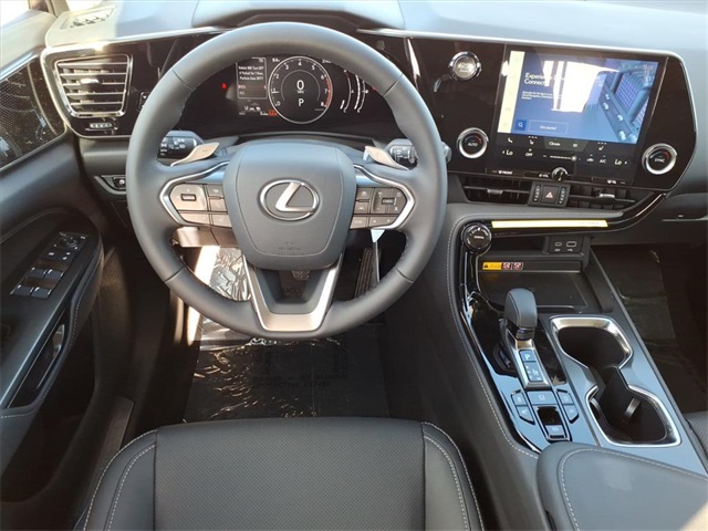 This Lexus NX is equipped with the following features: Accessory Package (2T) (All-Weather Cargo Mat and All-Weather Floor Liners), 10 Speakers, 4-Wheel Disc Brakes, ABS brakes, Air Conditioning, Alloy Wheel Locks w/Triple Nickel Chrome Plating, Alloy wheels, AM/FM radio: SiriusXM, Auto High-beam Headlights, Auto-dimming door mirrors, Auto-dimming Rear-View mirror, Automatic temperature control, Brake assist, Bumpers: body-color, Cargo Net, Color-Matched Door Edge Guards, Delay-off headlights, Driver door bin, Driver vanity mirror, Dual front impact airbags, Dual front side impact airbags, Electronic Stability Control, Emergency communication system: Safety Connect (up to 10-year trial subscription included), Exterior Parking Camera Rear, Four wheel independent suspension, Front anti-roll bar, Front Bucket Seats, Front Center Armrest, Front dual zone A/C, Front fog lights, Front reading lights, Fully automatic headlights, Garage door transmitter: HomeLink, Heated door mirrors, Heated Front Seats, Heated front seats, Illuminated entry, Knee airbag, Leather Shift Knob, Leather steering wheel, Lexus Interface w/9.8" Touchscreen Display, Lexus Quick Charge Cables, Low tire pressure warning, Navigation system: Drive Connect Cloud Navigation (subscription required), NuLuxe Seat Trim, Occupant sensing airbag, Outside temperature display, Overhead airbag, Overhead console, Panic alarm, Passenger door bin, Passenger vanity mirror, Power door mirrors, Power driver seat, Power Liftgate, Power Moonroof, Power passenger seat, Power steering, Power windows, Radio data system, Radio: 10-Speaker Lexus Premium Sound System, Rain sensing wipers, Rear anti-roll bar, Rear reading lights, Rear seat center armrest, Rear window defroster, Rear window wiper, Remote keyless entry, Security system, Speed control, Speed-sensing steering, Speed-Sensitive Wipers, Split folding rear seat, Spoiler, Steering wheel mounted audio controls, Tachometer, Telescoping steering wheel, Tilt steering wheel, Traction control, Trip computer, Turn signal indicator mirrors, Variably intermittent wipers, Wheels: 18" 15-Spoke Alloy, Wireless Apple CarPlay/Wireless Android Auto, and Wireless Phone Charger.