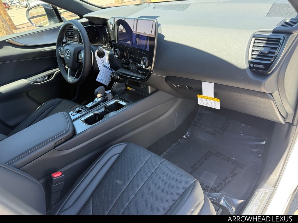 This Lexus NX is equipped with the following features: F SPORT Handling Luxury Package, 2.5L I4 DOHC 16V, 10 Speakers, 2,000 Lb Towing Capacity, 20" Wheels, 4-Wheel Disc Brakes, ABS brakes, Adaptive suspension, Advanced Park with Remote Park, Air Conditioning, Alloy wheels, AM/FM radio: SiriusXM, Auto High-beam Headlights, Auto tilt-away steering wheel, Auto-dimming door mirrors, Auto-dimming Rear-View mirror, Automatic temperature control, Black Emblem Overlays, Brake assist, Bumpers: body-color, Delay-off headlights, Digital Key and SmartAccess Card Key, Driver door bin, Driver vanity mirror, Dual front impact airbags, Dual front side impact airbags, Electronic Stability Control, Emergency communication system: Safety Connect (up to 10-year trial subscription included), Exterior Parking Camera Rear, F SPORT Heated and Ventilated Front Seats, Four wheel independent suspension, Front anti-roll bar, Front Bucket Seats, Front Center Armrest, Front Cross-Traffic Alert and Lane Change Assist, Front dual zone A/C, Front fog lights, Front reading lights, Fully automatic headlights, Garage door transmitter: HomeLink, Heads-Up Display, Heated door mirrors, Heated front seats, Heated steering wheel, Illuminated entry, Knee airbag, Leather Shift Knob, Leather steering wheel, Lexus Interface with 14" Touchscreen Display, Lexus Multimedia Screen Protector, Lexus Quick Charge Cables, Low tire pressure warning, Navigation system: Drive Connect Cloud Navigation (3-year trial subscription included), NuLuxe Seat Trim, Occupant sensing airbag, Outside temperature display, Overhead airbag, Overhead console, Panic alarm, Panorama Glass Roof, Panoramic View Monitor, Passenger door bin, Passenger vanity mirror, Power door mirrors, Power driver seat, Power Liftgate, Power passenger seat, Power steering, Power windows, Radio data system, Radio: 10-Speaker Lexus Premium Sound System, Rain sensing wipers, Rear anti-roll bar, Rear reading lights, Rear seat center armrest, Rear window defroster, Rear window wiper, Remote keyless entry, Security system, Speed control, Speed-sensing steering, Speed-Sensitive Wipers, Split folding rear seat, Spoiler, Sport steering wheel, Steering wheel mounted audio controls, Tachometer, Telescoping steering wheel, Tilt steering wheel, Traction control, Trip computer, Turn signal indicator mirrors, Variably intermittent wipers, Ventilated front seats, Wheels: F SPORT 20" Split 5-Spoke Alloy, Wireless Apple CarPlay/Wireless Android Auto, and Wireless Phone Charger.