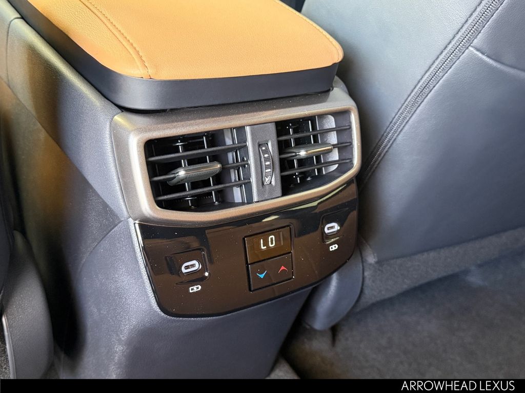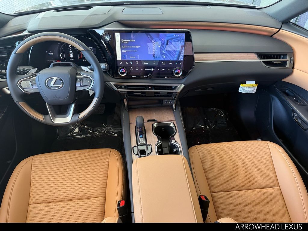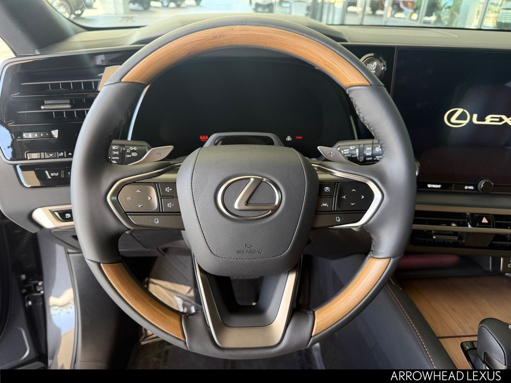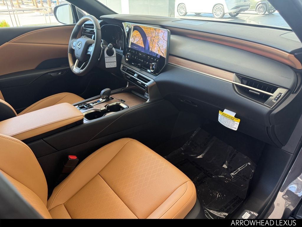 This Lexus RX is equipped with the following features: Convenience Package (Front Cross-Traffic Alert and Lane Change Assist), Premium+ Grade, Technology Package (10" Color Head-Up Display and Digital Rearview Mirror), Palomino W/Ash Bamboo Per Leather, 12 Speakers, 4-Wheel Disc Brakes, ABS brakes, Air Conditioning, Alloy wheels, AM/FM radio: SiriusXM, Anti-whiplash front head restraints, Auto High-beam Headlights, Auto tilt-away steering wheel, Auto-dimming door mirrors, Auto-dimming Rear-View mirror, Automatic temperature control, Brake assist, Bumpers: body-color, Compass, Delay-off headlights, Door Edge Guards, Driver door bin, Driver vanity mirror, Dual front impact airbags, Dual front side impact airbags, Electronic Stability Control, Emergency communication system: Safety Connect (5-year minimum), Exterior Parking Camera Rear, Four wheel independent suspension, Front anti-roll bar, Front Bucket Seats, Front Center Armrest, Front dual zone A/C, Front fog lights, Front reading lights, Fully automatic headlights, Garage door transmitter: HomeLink, Genuine wood console insert, Heated and Ventilated Front Seats, Heated door mirrors, Heated front seats, Heated steering wheel, Illuminated Door Sills, Illuminated entry, Leather Shift Knob, Leather steering wheel, Lexus Interface with 14" Touchscreen Display, Lexus Multimedia Screen Protector, Low tire pressure warning, Memory seat, Navigation System, Occupant sensing airbag, Outside temperature display, Overhead airbag, Overhead console, Paint Protection Film by 3M, Panic alarm, Passenger door bin, Passenger vanity mirror, Perforated Leather Seat Trim, Power door mirrors, Power driver seat, Power Liftgate, Power passenger seat, Power Rear Door with Kick Sensor, Power steering, Power Tilt and Slide Moonroof, Power windows, Radio data system, Radio: 12-Speaker Lexus Premium Sound System, Rain sensing wipers, Rear air conditioning, Rear anti-roll bar, Rear reading lights, Rear seat center armrest, Rear side impact airbag, Rear window defroster, Rear window wiper, Remote keyless entry, Security system, Side Puddle Lamp, SiriusXM Trial Offering: 33 Months, Speed control, Speed-sensing steering, Split folding rear seat, Spoiler, Steering wheel memory, Steering wheel mounted audio controls, Tachometer, Telescoping steering wheel, Tilt steering wheel, Traction control, Trip computer, Turn signal indicator mirrors, Variably intermittent wipers, Ventilated front seats, Wheels: 21" 20-Spoke Alloy, and Wireless Apple CarPlay/Wireless Android Auto.