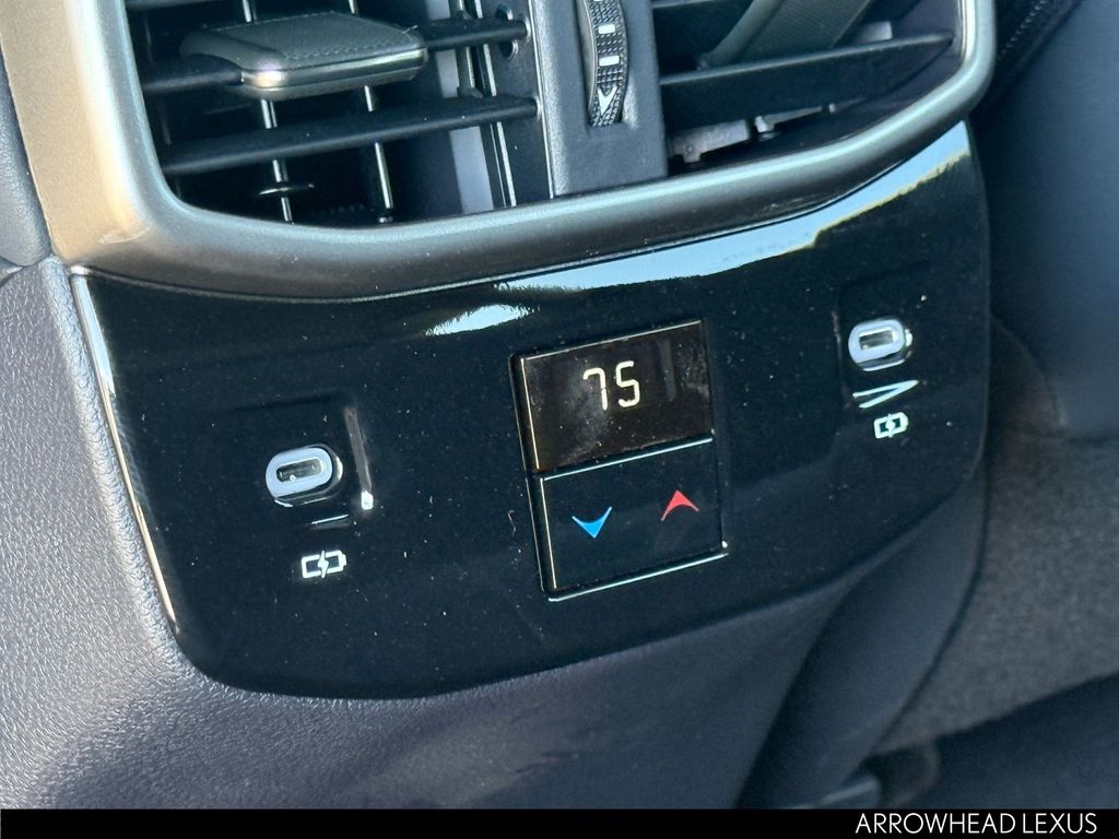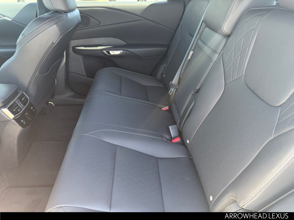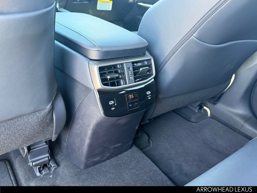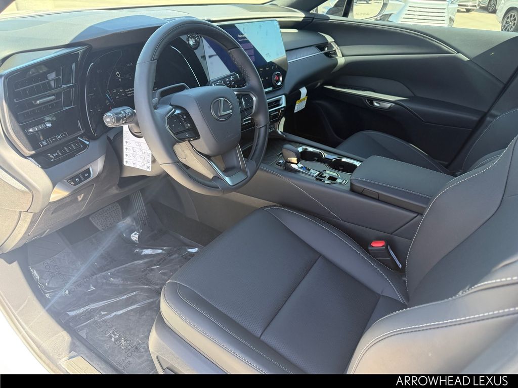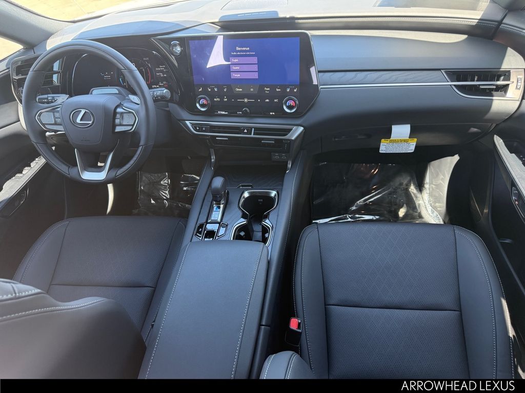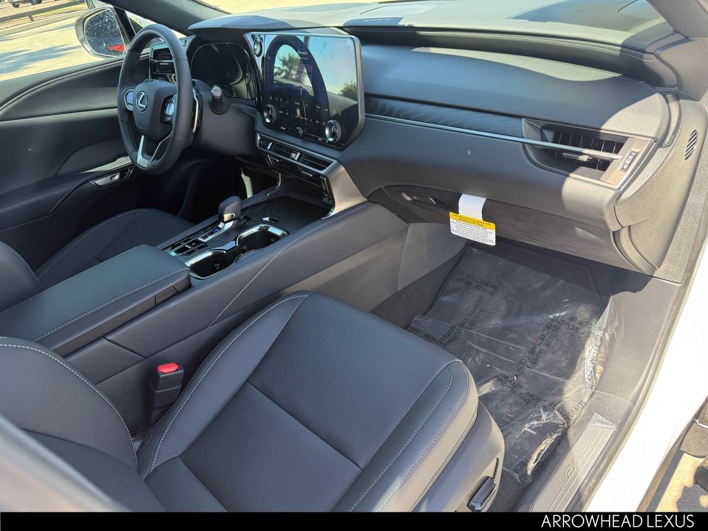 This Lexus RX is equipped with the following features: Convenience Package (Front Cross-Traffic Alert and Lane Change Assist), Premium+ Grade, Technology Package (10" Color Head-Up Display and Digital Rearview Mirror), 21 Leather, 12 Speakers, 4-Wheel Disc Brakes, ABS brakes, Air Conditioning, Alloy wheels, AM/FM radio: SiriusXM, Anti-whiplash front head restraints, Auto High-beam Headlights, Auto tilt-away steering wheel, Auto-dimming door mirrors, Auto-dimming Rear-View mirror, Automatic temperature control, Brake assist, Bumpers: body-color, Compass, Delay-off headlights, Driver door bin, Driver vanity mirror, Dual front impact airbags, Dual front side impact airbags, Electronic Stability Control, Emergency communication system: Safety Connect (5-year minimum), Exterior Parking Camera Rear, Four wheel independent suspension, Front anti-roll bar, Front Bucket Seats, Front Center Armrest, Front dual zone A/C, Front fog lights, Front reading lights, Fully automatic headlights, Garage door transmitter: HomeLink, Genuine wood console insert, Heated and Ventilated Front Seats, Heated door mirrors, Heated front seats, Heated steering wheel, Illuminated entry, Leather Shift Knob, Leather steering wheel, Lexus Interface with 14" Touchscreen Display, Low tire pressure warning, Memory seat, Navigation System, Occupant sensing airbag, Outside temperature display, Overhead airbag, Overhead console, Panic alarm, Passenger door bin, Passenger vanity mirror, Perforated Leather Seat Trim, Power door mirrors, Power driver seat, Power Liftgate, Power passenger seat, Power Rear Door with Kick Sensor, Power steering, Power Tilt and Slide Moonroof, Power windows, Radio data system, Radio: 12-Speaker Lexus Premium Sound System, Rain sensing wipers, Rear air conditioning, Rear anti-roll bar, Rear reading lights, Rear seat center armrest, Rear side impact airbag, Rear window defroster, Rear window wiper, Remote keyless entry, Security system, Speed control, Speed-sensing steering, Split folding rear seat, Spoiler, Steering wheel memory, Steering wheel mounted audio controls, Tachometer, Telescoping steering wheel, Tilt steering wheel, Traction control, Trip computer, Turn signal indicator mirrors, Variably intermittent wipers, Ventilated front seats, Wheels: 21" 20-Spoke Alloy, and Wireless Apple CarPlay/Wireless Android Auto.