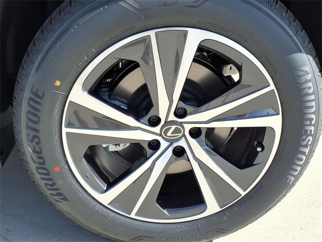 This Lexus RX is equipped with the following features: Accessory Package (2T) (All-Weather Cargo Mat and All-Weather Floor Liners), Premium Grade, 21 Artificial Leather, 12 Speakers, 19" 5-Spoke Alloy Wheels, 4-Wheel Disc Brakes, 8-Way Power Adjustable Driver & Passenger Seats, ABS brakes, Air Conditioning, Alloy Wheel Locks w/Triple Nickel Chrome Plating, Alloy wheels, AM/FM radio: SiriusXM, Anti-whiplash front head restraints, Auto High-beam Headlights, Auto tilt-away steering wheel, Auto-dimming door mirrors, Auto-dimming Rear-View mirror, Automatic temperature control, Brake assist, Bumpers: body-color, Compass, Delay-off headlights, Digital Key, Door Edge Film by 3M, Driver door bin, Driver vanity mirror, Dual front impact airbags, Dual front side impact airbags, Electronic Stability Control, Emergency communication system: Safety Connect (10-year trial), Exterior Parking Camera Rear, Four wheel independent suspension, Front anti-roll bar, Front Bucket Seats, Front Center Armrest, Front dual zone A/C, Front fog lights, Front reading lights, Fully automatic headlights, Garage door transmitter: HomeLink, Genuine wood console insert, Heated & Ventilated Front Bucket Seats, Heated door mirrors, Heated front seats, Heated steering wheel, Illuminated entry, Leather Shift Knob, Leather steering wheel, Lexus Interface w/14" Touchscreen Display, Lexus Interface w/9.8" Touchscreen Display, Low tire pressure warning, Memory seat, Navigation System, NuLuxe Seat Trim, Occupant sensing airbag, Outside temperature display, Overhead airbag, Overhead console, Panic alarm, Panoramic View Monitor, Passenger door bin, Passenger vanity mirror, Power door mirrors, Power driver seat, Power Liftgate, Power passenger seat, Power Rear Door w/Kick Sensor, Power steering, Power windows, Radio data system, Radio: 12-Speaker Lexus Premium Sound System, Rain sensing wipers, Rear air conditioning, Rear anti-roll bar, Rear reading lights, Rear seat center armrest, Rear side impact airbag, Rear window defroster, Rear window wiper, Remote keyless entry, Security system, Speed control, Speed-sensing steering, Split folding rear seat, Spoiler, Steering wheel memory, Steering wheel mounted audio controls, Tachometer, Telescoping steering wheel, Tilt steering wheel, Traction control, Trip computer, Turn signal indicator mirrors, Variably intermittent wipers, Ventilated front seats, and Wireless Apple CarPlay/Wireless Android Auto.