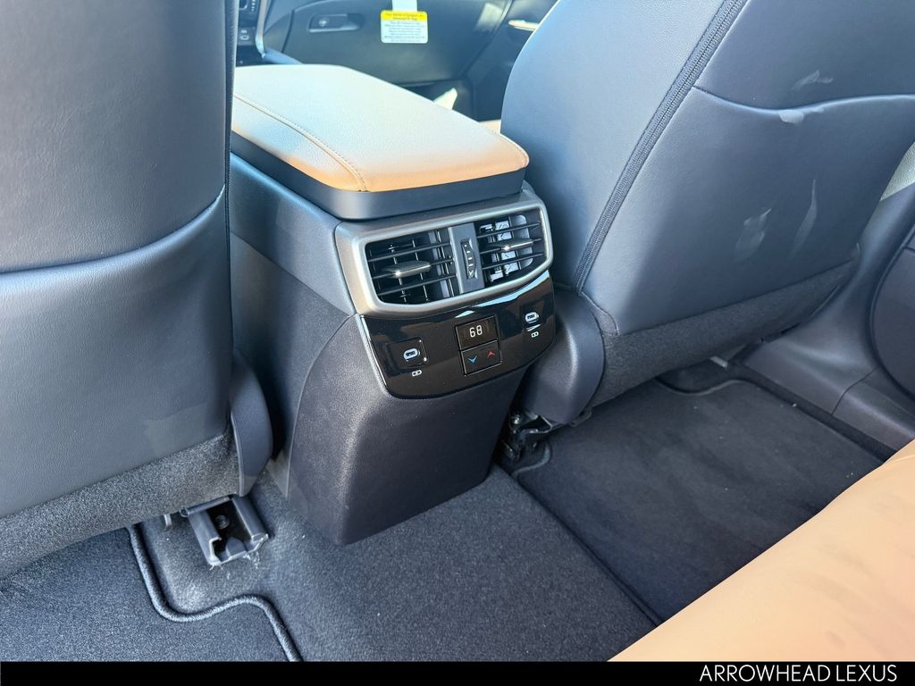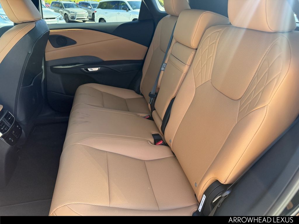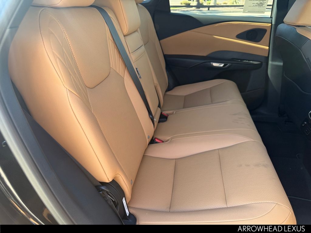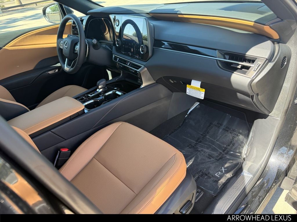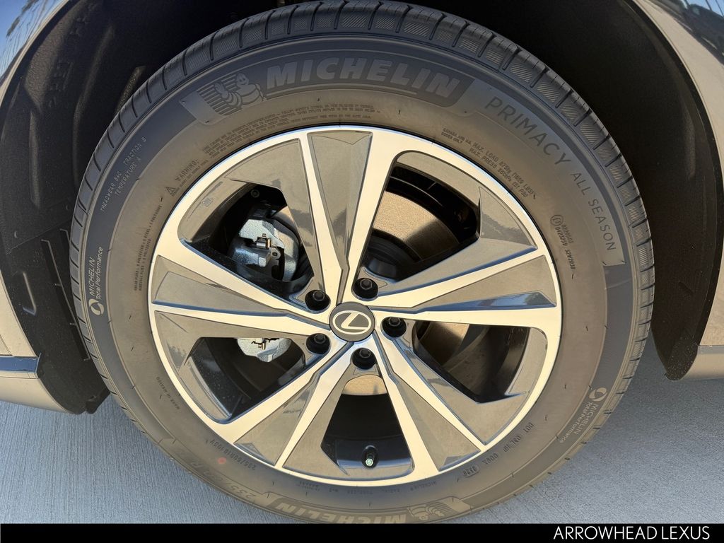 This Lexus RX is equipped with the following features: Cold Area Package (Heated Steering Wheel), 43 Artificial Leather, 12 Speakers, 19" 5-Spoke Alloy Wheels, 4-Wheel Disc Brakes, ABS brakes, Air Conditioning, Alloy wheels, AM/FM radio: SiriusXM, Anti-whiplash front head restraints, Auto High-beam Headlights, Auto-dimming door mirrors, Auto-dimming Rear-View mirror, Automatic temperature control, Black Emblem Overlays, Brake assist, Bumpers: body-color, Compass, Delay-off headlights, Digital Key, Driver door bin, Driver vanity mirror, Dual front impact airbags, Dual front side impact airbags, Electronic Stability Control, Emergency communication system: Safety Connect (5-year minimum), Exterior Parking Camera Rear, Four wheel independent suspension, Front anti-roll bar, Front Bucket Seats, Front Center Armrest, Front dual zone A/C, Front fog lights, Front reading lights, Fully automatic headlights, Garage door transmitter: HomeLink, Genuine wood console insert, Heated door mirrors, Heated Front Seats, Heated front seats, Illuminated entry, Leather Shift Knob, Leather steering wheel, Lexus Interface with 9.8" Touchscreen Display, Low tire pressure warning, Navigation System, NuLuxe Seat Trim, Occupant sensing airbag, Outside temperature display, Overhead airbag, Overhead console, Panic alarm, Passenger door bin, Passenger vanity mirror, Power door mirrors, Power driver seat, Power Liftgate, Power passenger seat, Power steering, Power Tilt and Slide Moonroof and Roof Rails, Power windows, Radio data system, Radio: 12-Speaker Lexus Premium Sound System, Rain sensing wipers, Rear air conditioning, Rear anti-roll bar, Rear reading lights, Rear seat center armrest, Rear side impact airbag, Rear window defroster, Rear window wiper, Remote keyless entry, Security system, Speed control, Speed-sensing steering, Split folding rear seat, Spoiler, Steering wheel mounted audio controls, Tachometer, Telescoping steering wheel, Tilt steering wheel, Traction control, Trip computer, Turn signal indicator mirrors, Variably intermittent wipers, and Wireless Apple CarPlay/Wireless Android Auto.