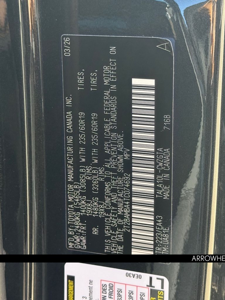 - VIN : 2T2BAMBA4TC074692