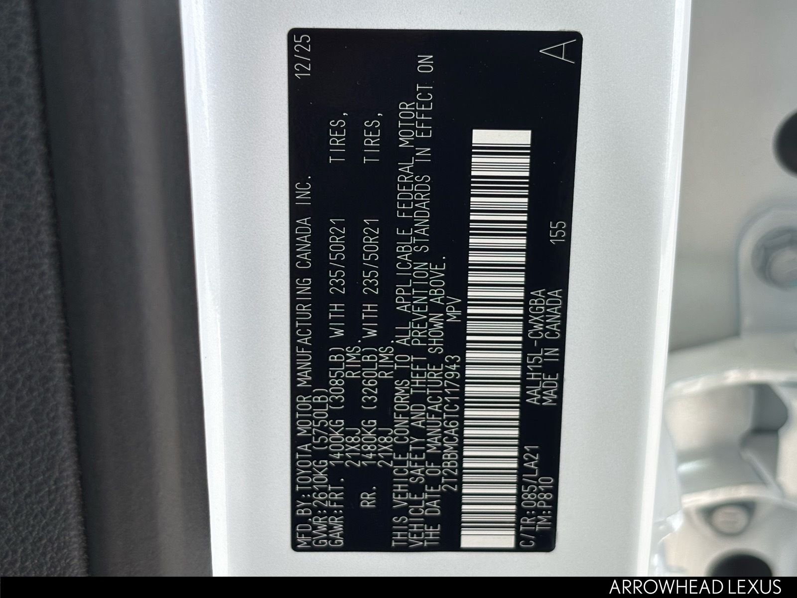 - VIN : 2T2BBMCA6TC117943