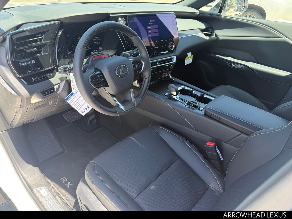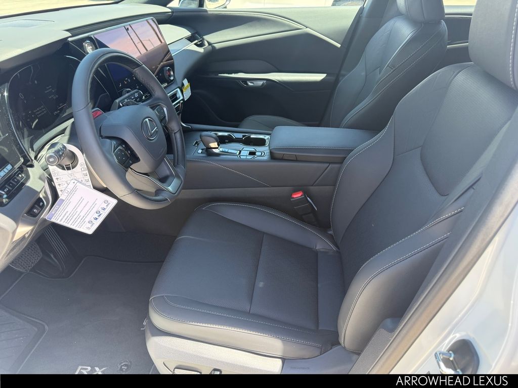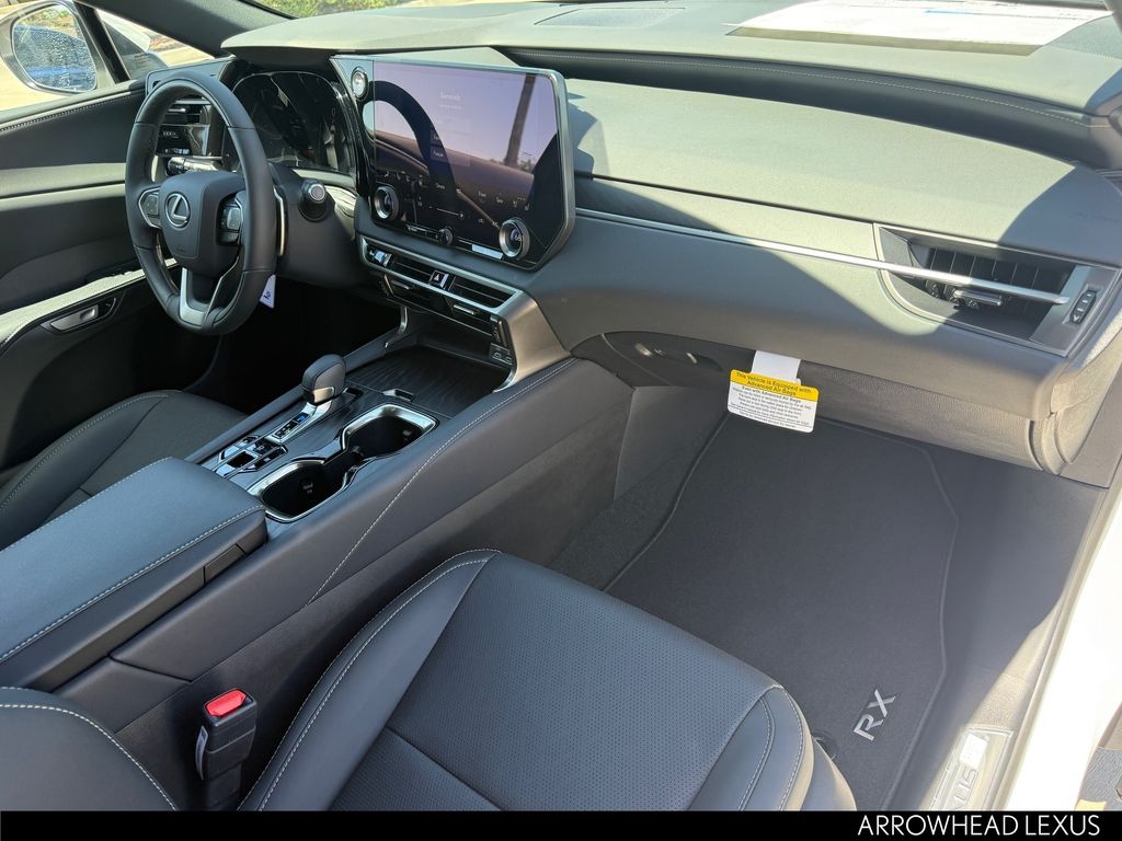 This Lexus RX is equipped with the following features: Convenience Package (Advanced Park, Front Cross-Traffic Alert, Panoramic View Monitor, and Traffic Jam Assist), Premium+ Grade, Technology Package (10" Color Head-Up Display), 2.5L I4 DOHC 16V, AWD, Blk Perforated Lth Leather, 12 Speakers, 120V/1,500-Watt AC Power Outlet, 4-Wheel Disc Brakes, ABS brakes, Air Conditioning, Alloy wheels, AM/FM radio: SiriusXM, Anti-whiplash front head restraints, Auto High-beam Headlights, Auto tilt-away steering wheel, Auto-dimming door mirrors, Auto-dimming Rear-View mirror, Automatic temperature control, Brake assist, Bumpers: body-color, Compass, Delay-off headlights, Driver door bin, Driver vanity mirror, Dual front impact airbags, Dual front side impact airbags, Electronic Stability Control, Emergency communication system: Safety Connect (5-year minimum), Exterior Parking Camera Rear, Four wheel independent suspension, Front anti-roll bar, Front Bucket Seats, Front Center Armrest, Front dual zone A/C, Front fog lights, Front reading lights, Fully automatic headlights, Garage door transmitter: HomeLink, Heated and Ventilated Front Seats, Heated door mirrors, Heated front seats, Heated steering wheel, Illuminated entry, Leather Shift Knob, Leather steering wheel, Lexus Interface with 14" Touchscreen Display, Lexus Multimedia Screen Protector, Low tire pressure warning, Memory seat, Navigation System, Occupant sensing airbag, Outside temperature display, Overhead airbag, Overhead console, Panic alarm, Panorama Glass Roof and Roof Rails, Passenger door bin, Passenger vanity mirror, Perforated Leather Seat Trim, Power door mirrors, Power driver seat, Power Liftgate, Power passenger seat, Power Rear Door with Kick Sensor, Power steering, Power windows, Radio data system, Radio: 12-Speaker Lexus Premium Sound System, Rain sensing wipers, Rear air conditioning, Rear anti-roll bar, Rear Bumper Applique, Rear reading lights, Rear seat center armrest, Rear side impact airbag, Rear window defroster, Rear window wiper, Remote keyless entry, Security system, Speed control, Speed-sensing steering, Split folding rear seat, Spoiler, Steering wheel memory, Steering wheel mounted audio controls, Telescoping steering wheel, Tilt steering wheel, Traction control, Trip computer, Turn signal indicator mirrors, Variably intermittent wipers, Ventilated front seats, Wheels: 21" 20-Spoke Alloy, and Wireless Apple CarPlay/Wireless Android Auto.