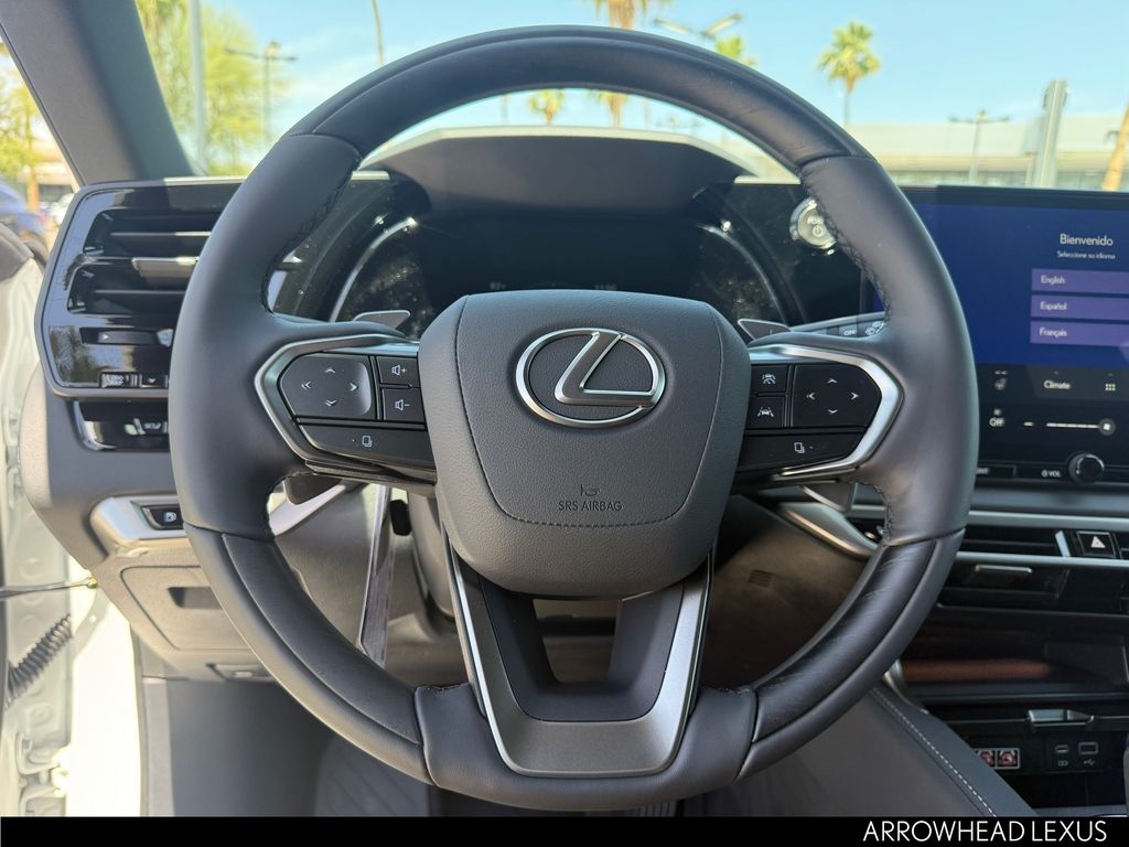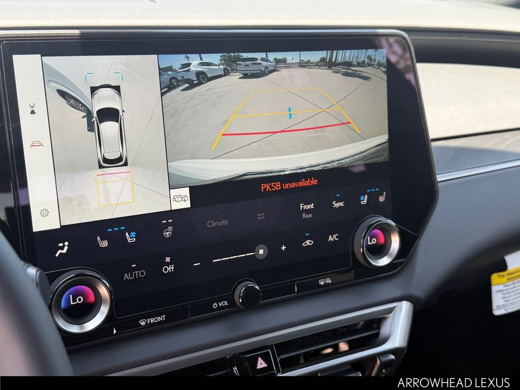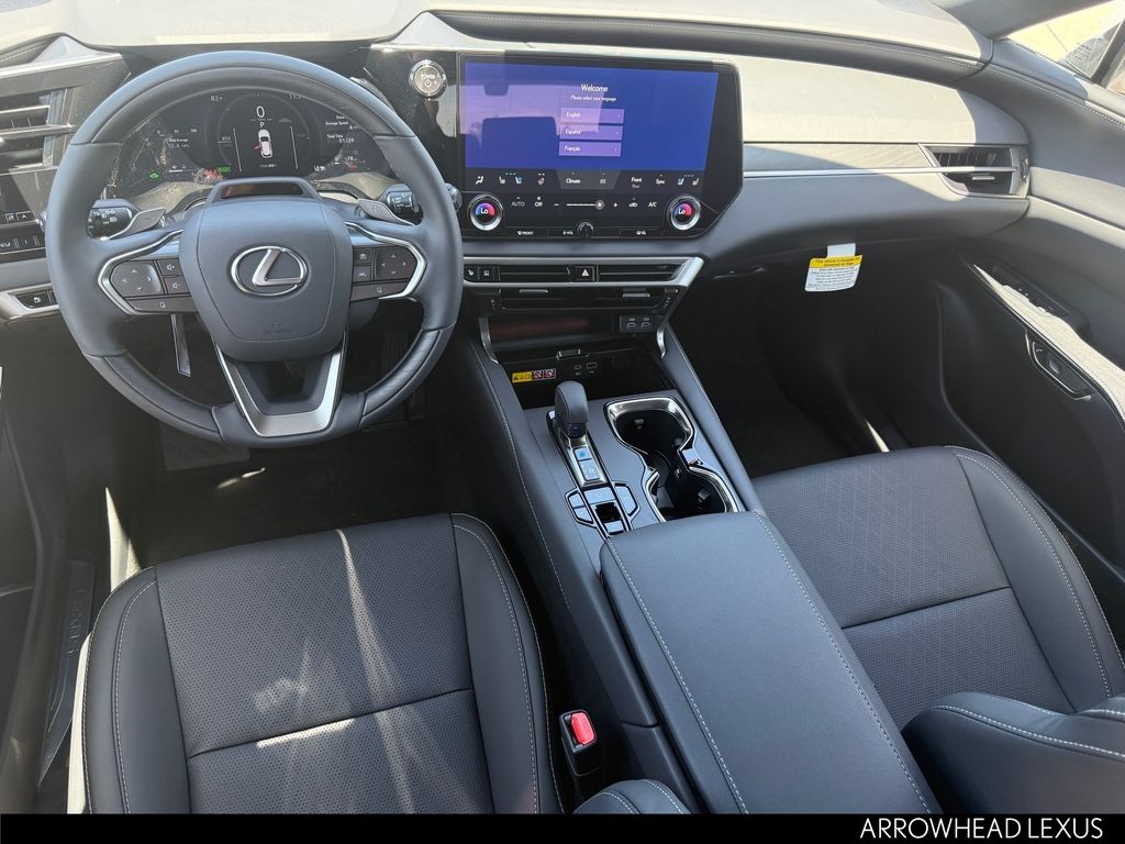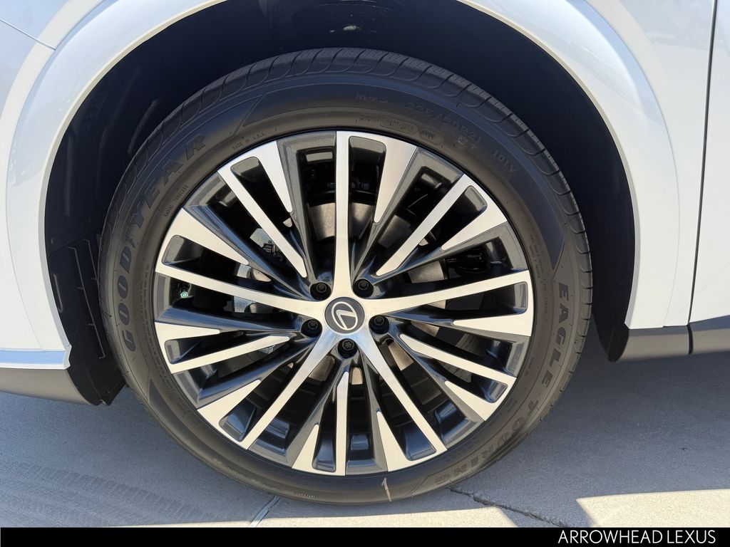 This Lexus RX is equipped with the following features: Convenience Package (Advanced Park, Front Cross-Traffic Alert, Panoramic View Monitor, and Traffic Jam Assist), Premium+ Grade, Technology Package (10" Color Head-Up Display), 2.5L I4 DOHC 16V, AWD, 21 Leather, 12 Speakers, 120V/1,500-Watt AC Power Outlet, 4-Wheel Disc Brakes, ABS brakes, Air Conditioning, Alloy wheels, AM/FM radio: SiriusXM, Anti-whiplash front head restraints, Auto High-beam Headlights, Auto tilt-away steering wheel, Auto-dimming door mirrors, Auto-dimming Rear-View mirror, Automatic temperature control, Black Emblem Overlays, Brake assist, Bumpers: body-color, Compass, Delay-off headlights, Driver door bin, Driver vanity mirror, Dual front impact airbags, Dual front side impact airbags, Electronic Stability Control, Emergency communication system: Safety Connect (5-year minimum), Exterior Parking Camera Rear, Four wheel independent suspension, Front anti-roll bar, Front Bucket Seats, Front Center Armrest, Front dual zone A/C, Front fog lights, Front reading lights, Fully automatic headlights, Garage door transmitter: HomeLink, Heated and Ventilated Front Seats, Heated door mirrors, Heated front seats, Heated steering wheel, Illuminated Cargo Sills, Illuminated entry, Leather Shift Knob, Leather steering wheel, Lexus Interface with 14" Touchscreen Display, Lexus Multimedia Screen Protector, Lexus Quick Charge Cables, Low tire pressure warning, Memory seat, Navigation System, Occupant sensing airbag, Outside temperature display, Overhead airbag, Overhead console, Panic alarm, Panorama Glass Roof and Roof Rails, Passenger door bin, Passenger vanity mirror, Perforated Leather Seat Trim, Power door mirrors, Power driver seat, Power Liftgate, Power passenger seat, Power Rear Door with Kick Sensor, Power steering, Power windows, Radio data system, Radio: 12-Speaker Lexus Premium Sound System, Rain sensing wipers, Rear air conditioning, Rear anti-roll bar, Rear Bumper Applique, Rear reading lights, Rear seat center armrest, Rear side impact airbag, Rear window defroster, Rear window wiper, Remote keyless entry, Security system, Speed control, Speed-sensing steering, Split folding rear seat, Spoiler, Steering wheel memory, Steering wheel mounted audio controls, Telescoping steering wheel, Tilt steering wheel, Traction control, Trip computer, Turn signal indicator mirrors, Variably intermittent wipers, Ventilated front seats, Wheels: 21" 20-Spoke Alloy, and Wireless Apple CarPlay/Wireless Android Auto.