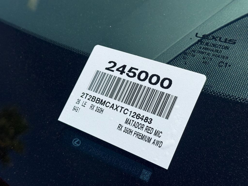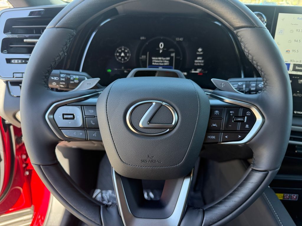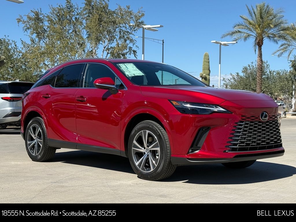 This Lexus RX is equipped with the following features: Accessory Package, Convenience Package (Front Cross-Traffic Alert, Panoramic View Monitor, and Traffic Jam Assist), Premium Grade, 2.5L I4 DOHC 16V, AWD, 21 Artificial Leather, 12 Speakers, 19" 5-Spoke Alloy Wheels, 4-Wheel Disc Brakes, ABS brakes, Air Conditioning, All-Weather Cargo Mat, All-Weather Floor Liners, Alloy wheels, AM/FM radio: SiriusXM, Anti-whiplash front head restraints, Auto High-beam Headlights, Auto tilt-away steering wheel, Auto-dimming door mirrors, Auto-dimming Rear-View mirror, Automatic temperature control, Brake assist, Bumpers: body-color, Cargo Net, Compass, Delay-off headlights, Digital Key, Door Edge Guards, Driver door bin, Driver vanity mirror, Dual front impact airbags, Dual front side impact airbags, Electronic Stability Control, Emergency communication system: Safety Connect (5-year minimum), Exterior Parking Camera Rear, Four wheel independent suspension, Front anti-roll bar, Front Bucket Seats, Front Center Armrest, Front dual zone A/C, Front fog lights, Front reading lights, Fully automatic headlights, Garage door transmitter: HomeLink, Heated and Ventilated Front Seats, Heated door mirrors, Heated front seats, Heated steering wheel, Illuminated entry, Key Gloves, Leather Shift Knob, Leather steering wheel, Lexus Interface with 14" Touchscreen Display, Lexus Interface with 9.8" Touchscreen Display, Low tire pressure warning, Memory seat, Navigation System, NuLuxe Seat Trim, Occupant sensing airbag, Outside temperature display, Overhead airbag, Overhead console, Panic alarm, Passenger door bin, Passenger vanity mirror, Power door mirrors, Power driver seat, Power Liftgate, Power passenger seat, Power Rear Door with Kick Sensor, Power steering, Power windows, Radio data system, Radio: 12-Speaker Lexus Premium Sound System, Rain sensing wipers, Rear air conditioning, Rear anti-roll bar, Rear reading lights, Rear seat center armrest, Rear side impact airbag, Rear window defroster, Rear window wiper, Remote keyless entry, Security system, Speed control, Speed-sensing steering, Split folding rear seat, Spoiler, Steering wheel memory, Steering wheel mounted audio controls, Telescoping steering wheel, Tilt steering wheel, Traction control, Trip computer, Turn signal indicator mirrors, Variably intermittent wipers, Ventilated front seats, Wheels: 21" 20-Spoke Alloy, and Wireless Apple CarPlay/Wireless Android Auto.
