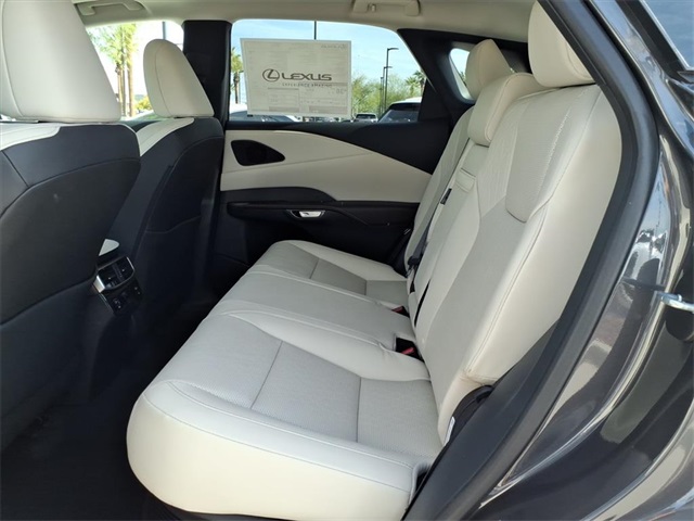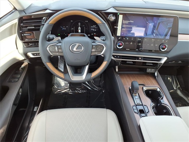 This Lexus RX is equipped with the following features: Accessory Package (K3) (Illuminated Cargo Sills), Accessory Package (Z1) (Alloy Wheel Locks w/Triple Nickel Chrome Plating and Cargo Net), Convenience Package, Kick Sensor w/Tow Package (Power Rear Door w/Kick Sensor), Premium+ Grade, Technology Package (10" Color Head-Up Display and Digital Rearview Mirror), 2.5L I4 DOHC 16V, AWD, 02 Leather, 12 Speakers, 120V/1,500-Watt AC Power Outlet, 4-Wheel Disc Brakes, ABS brakes, Air Conditioning, Alloy wheels, AM/FM radio: SiriusXM, Anti-whiplash front head restraints, Auto High-beam Headlights, Auto tilt-away steering wheel, Auto-dimming door mirrors, Auto-dimming Rear-View mirror, Automatic temperature control, Brake assist, Bumpers: body-color, Carpet Cargo Mat, Compass, Delay-off headlights, Driver door bin, Driver vanity mirror, Dual front impact airbags, Dual front side impact airbags, Electronic Stability Control, Emergency communication system: Safety Connect (10-year trial), Exterior Parking Camera Rear, Four wheel independent suspension, Front anti-roll bar, Front Bucket Seats, Front Center Armrest, Front dual zone A/C, Front fog lights, Front reading lights, Fully automatic headlights, Garage door transmitter: HomeLink, Heated & Ventilated Front Bucket Seats, Heated door mirrors, Heated front seats, Heated steering wheel, Illuminated Door Sills, Illuminated entry, Key Gloves, Leather Seat Trim, Leather Shift Knob, Leather steering wheel, Lexus Interface w/14" Touchscreen Display, Low tire pressure warning, Memory seat, Navigation System, Occupant sensing airbag, Outside temperature display, Overhead airbag, Overhead console, Panic alarm, Panorama Glass Roof & Roof Rails, Passenger door bin, Passenger vanity mirror, Power door mirrors, Power driver seat, Power Liftgate, Power passenger seat, Power steering, Power windows, Radio data system, Radio: 12-Speaker Lexus Premium Sound System, Rain sensing wipers, Rear air conditioning, Rear anti-roll bar, Rear Bumper Applique, Rear reading lights, Rear seat center armrest, Rear side impact airbag, Rear window defroster, Rear window wiper, Remote keyless entry, Security system, SiriusXM Trial Offering: 33 Months, Speed control, Speed-sensing steering, Split folding rear seat, Spoiler, Steering wheel memory, Steering wheel mounted audio controls, Telescoping steering wheel, Tilt steering wheel, Traction control, Trip computer, Turn signal indicator mirrors, Variably intermittent wipers, Ventilated front seats, Wheels: 21" 20-Spoke Alloy, and Wireless Apple CarPlay/Wireless Android Auto.