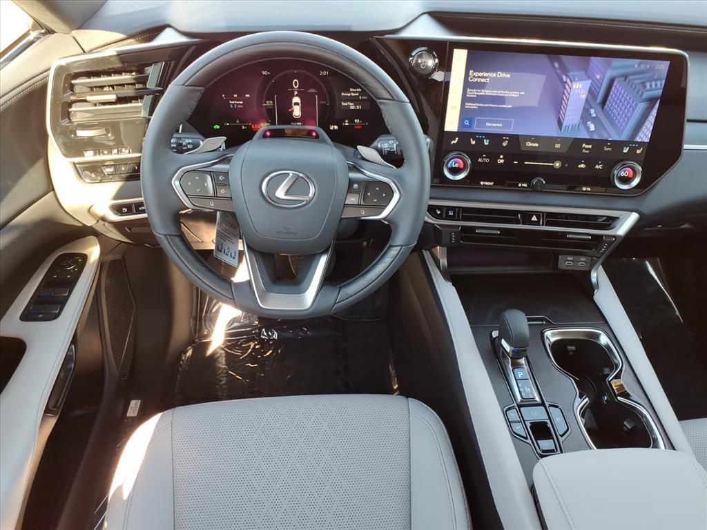 This Lexus RX is equipped with the following features: Accessory Package (K3) (Illuminated Cargo Sills), 2.5L I4 DOHC 16V, AWD, 11, 12 Speakers, 4-Wheel Disc Brakes, ABS brakes, Air Conditioning, Alloy wheels, AM/FM radio: SiriusXM, Anti-whiplash front head restraints, Auto High-beam Headlights, Auto-dimming door mirrors, Auto-dimming Rear-View mirror, Automatic temperature control, Brake assist, Bumpers: body-color, Compass, Delay-off headlights, Driver door bin, Driver vanity mirror, Dual front impact airbags, Dual front side impact airbags, Electronic Stability Control, Emergency communication system: Safety Connect (10-year trial), Exterior Parking Camera Rear, Four wheel independent suspension, Front anti-roll bar, Front Bucket Seats, Front Center Armrest, Front dual zone A/C, Front fog lights, Front reading lights, Fully automatic headlights, Garage door transmitter: HomeLink, Heated door mirrors, Heated front seats, Illuminated entry, Leather Shift Knob, Leather steering wheel, Low tire pressure warning, Navigation System, Occupant sensing airbag, Outside temperature display, Overhead airbag, Overhead console, Panic alarm, Passenger door bin, Passenger vanity mirror, Power door mirrors, Power driver seat, Power Liftgate, Power passenger seat, Power steering, Power windows, Radio data system, Radio: 12-Speaker Lexus Premium Sound System, Rain sensing wipers, Rear air conditioning, Rear anti-roll bar, Rear reading lights, Rear seat center armrest, Rear side impact airbag, Rear window defroster, Rear window wiper, Remote keyless entry, Security system, Speed control, Speed-sensing steering, Split folding rear seat, Spoiler, Steering wheel mounted audio controls, Telescoping steering wheel, Tilt steering wheel, Traction control, Trip computer, Turn signal indicator mirrors, Variably intermittent wipers, and Wireless Apple CarPlay/Wireless Android Auto.