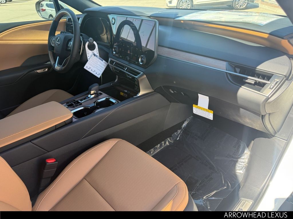 This Lexus RX is equipped with the following features: Convenience Package (Front Cross-Traffic Alert, Lane Change Assist, Panoramic View Monitor, and Traffic Jam Assist), 2.5L I4 DOHC 16V, AWD, Palomino W/Ash Bamboo Nul Artificial Leather, 12 Speakers, 4-Wheel Disc Brakes, ABS brakes, Air Conditioning, Alloy wheels, AM/FM radio: SiriusXM, Anti-whiplash front head restraints, Auto High-beam Headlights, Auto tilt-away steering wheel, Auto-dimming door mirrors, Auto-dimming Rear-View mirror, Automatic temperature control, Brake assist, Bumpers: body-color, Compass, Delay-off headlights, Digital Key, Driver door bin, Driver vanity mirror, Dual front impact airbags, Dual front side impact airbags, Electronic Stability Control, Emergency communication system: Safety Connect (10-year trial), Exterior Parking Camera Rear, Four wheel independent suspension, Front anti-roll bar, Front Bucket Seats, Front Center Armrest, Front dual zone A/C, Front fog lights, Front reading lights, Fully automatic headlights, Garage door transmitter: HomeLink, Heads-Up Display, Heated and Ventilated Front Seats, Heated door mirrors, Heated front seats, Heated steering wheel, Illuminated entry, Leather Shift Knob, Leather steering wheel, Lexus Interface with 14" Touchscreen Display, Lexus Multimedia Screen Protector, Low tire pressure warning, Memory seat, Navigation System, NuLuxe Seat Trim, Occupant sensing airbag, Outside temperature display, Overhead airbag, Overhead console, Panic alarm, Passenger door bin, Passenger vanity mirror, Power door mirrors, Power driver seat, Power Liftgate, Power moonroof, Power passenger seat, Power Rear Door with Kick Sensor, Power steering, Power windows, Radio data system, Radio: 12-Speaker Lexus Premium Sound System, Rain sensing wipers, Rear air conditioning, Rear anti-roll bar, Rear reading lights, Rear seat center armrest, Rear side impact airbag, Rear window defroster, Rear window wiper, Remote keyless entry, Security system, Speed control, Speed-sensing steering, Split folding rear seat, Spoiler, Steering wheel memory, Steering wheel mounted audio controls, Telescoping steering wheel, Tilt steering wheel, Traction control, Trip computer, Turn signal indicator mirrors, Variably intermittent wipers, Ventilated front seats, Wheels: 21" 20-Spoke Alloy, and Wireless Apple CarPlay/Wireless Android Auto.