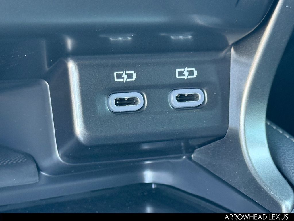 This Lexus RX is equipped with the following features: Convenience Package (Advanced Park, Front Cross-Traffic Alert, Lane Change Assist, Panoramic View Monitor, and Traffic Jam Assist), Technology Package (Digital Rearview Mirror), 2.4L I4 Turbo, AWD, 24 Leather, 12 Speakers, 120V/1,500-Watt AC Power Outlet, 4-Wheel Disc Brakes, ABS brakes, Adaptive suspension, Air Conditioning, Alloy wheels, AM/FM radio: SiriusXM, Anti-whiplash front head restraints, Auto High-beam Headlights, Auto tilt-away steering wheel, Auto-dimming door mirrors, Auto-dimming Rear-View mirror, Auto-leveling suspension, Automatic temperature control, Black Emblem Overlays, Brake assist, Bumpers: body-color, Compass, Delay-off headlights, Driver door bin, Driver vanity mirror, Dual front impact airbags, Dual front side impact airbags, Electronic Stability Control, Emergency communication system: Safety Connect (10-year trial), Exterior Parking Camera Rear, Four wheel independent suspension, Front anti-roll bar, Front Bucket Seats, Front Center Armrest, Front dual zone A/C, Front fog lights, Front reading lights, Fully automatic headlights, Garage door transmitter: HomeLink, Heads-Up Display, Heated and Ventilated F SPORT Front Seats, Heated and Ventilated Rear Seats, Heated door mirrors, Heated front seats, Illuminated entry, Leather Shift Knob, Leather steering wheel, Lexus Interface with 14" Touchscreen Display, Lexus Multimedia Screen Protector, Low tire pressure warning, Mark Levinson 21-Speaker PurePlay Surround Sound, Memory seat, Navigation System, Occupant sensing airbag, Outside temperature display, Overhead airbag, Overhead console, Panic alarm, Passenger door bin, Passenger vanity mirror, Perforated Leather Seat Trim, Power door mirrors, Power driver seat, Power Liftgate, Power moonroof, Power passenger seat, Power Rear Door with Kick Sensor, Power steering, Power windows, Radio data system, Radio: 12-Speaker Lexus Premium Sound System, Rain sensing wipers, Rear air conditioning, Rear anti-roll bar, Rear reading lights, Rear seat center armrest, Rear side impact airbag, Rear window defroster, Rear window wiper, Remote keyless entry, Security system, Speed control, Speed-sensing steering, Split folding rear seat, Spoiler, Sport steering wheel, Steering wheel memory, Steering wheel mounted audio controls, Tachometer, Telescoping steering wheel, Tilt steering wheel, Traction control, Trip computer, Triple-Beam LED Headlamps, Turn signal indicator mirrors, Variably intermittent wipers, Ventilated front seats, Wheels: 21" 10-Spoke Alloy, and Wireless Apple CarPlay/Wireless Android Auto.