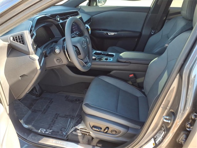 This Lexus RZ is equipped with the following features: 4-Wheel Disc Brakes, ABS brakes, Air Conditioning, Alloy wheels, AM/FM radio: SiriusXM, Auto High-beam Headlights, Auto-dimming door mirrors, Auto-dimming Rear-View mirror, Automatic temperature control, Brake assist, Delay-off headlights, Driver door bin, Driver vanity mirror, Dual front impact airbags, Dual front side impact airbags, Electronic Stability Control, Four wheel independent suspension, Front anti-roll bar, Front Bucket Seats, Front dual zone A/C, Front reading lights, Fully automatic headlights, Heated and Ventilated Front Seats, Heated door mirrors, Heated front seats, Heated steering wheel, Illuminated entry, Knee airbag, Low tire pressure warning, Memory seat, Occupant sensing airbag, Outside temperature display, Overhead airbag, Overhead console, Panic alarm, Passenger door bin, Passenger vanity mirror, Power door mirrors, Power driver seat, Power Liftgate, Power passenger seat, Power steering, Power windows, Radio data system, Rain sensing wipers, Rear anti-roll bar, Rear window defroster, Remote keyless entry, Speed control, Speed-sensing steering, Split folding rear seat, Steering wheel mounted audio controls, Telescoping steering wheel, Tilt steering wheel, Traction control, Trip computer, Turn signal indicator mirrors, Variably intermittent wipers, and Ventilated front seats.
