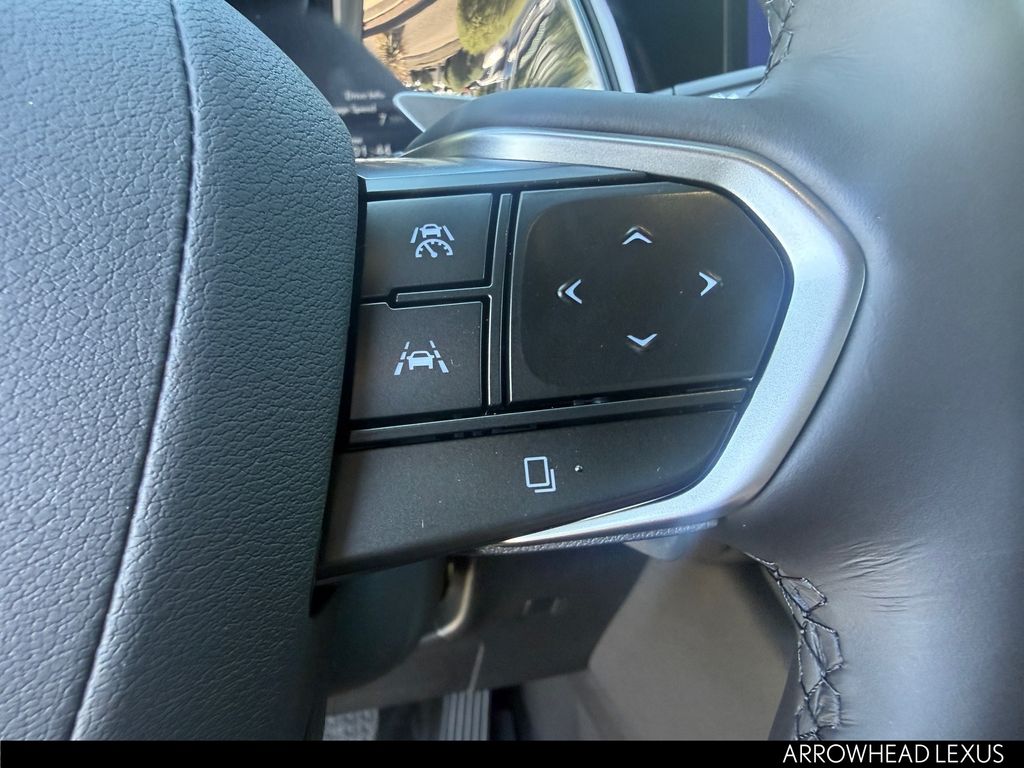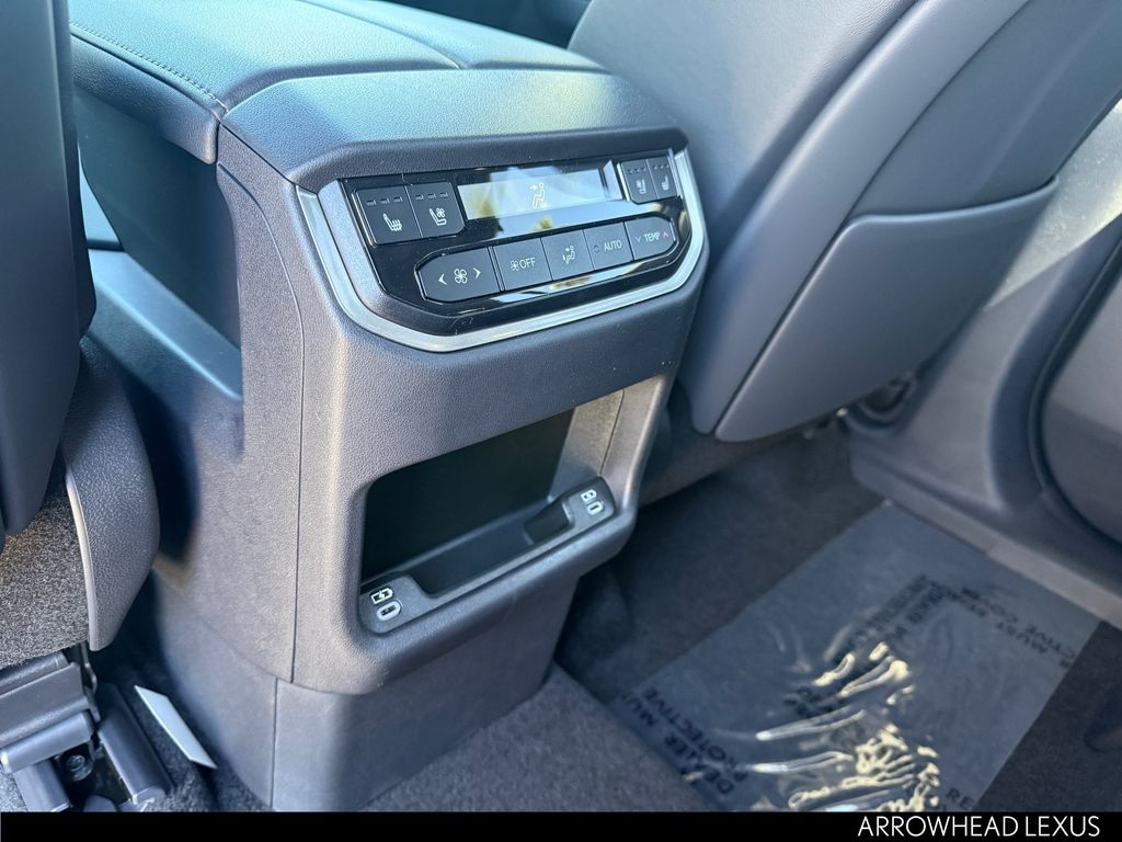 This Lexus TX is equipped with the following features: Convenience Package (Digital Key, Front Cross-Traffic Alert and Lane Change Assist, and Traffic Jam Assist), Technology Package (Advanced Park w/Remote Park, Digital Rearview Mirror, Head-Up Display, and Panoramic View Monitor), 12 Speakers, 20" Wheels, 3rd row seats: split-bench, 4-Wheel Disc Brakes, ABS brakes, Air Conditioning, Alloy wheels, AM/FM radio, Apple CarPlay/Android Auto, Auto High-beam Headlights, Auto tilt-away steering wheel, Auto-dimming door mirrors, Auto-dimming Rear-View mirror, Automatic temperature control, Black Emblem Overlays, Brake assist, Bumpers: body-color, Delay-off headlights, Driver door bin, Driver vanity mirror, Dual front impact airbags, Dual front side impact airbags, Electronic Stability Control, Emergency communication system: Safety Connect (5-year minimum), Exterior Parking Camera Rear, Four wheel independent suspension, Front anti-roll bar, Front Bucket Seats, Front Center Armrest, Front dual zone A/C, Front fog lights, Front reading lights, Fully automatic headlights, Garage door transmitter: HomeLink, Headlight cleaning, Heated and Ventilated Front Seats, Heated and Ventilated Second Row Captain's Chairs, Heated door mirrors, Heated front seats, Heated rear seats, Heated steering wheel, Illuminated entry, Knee airbag, Leather Shift Knob, Leather steering wheel, Lexus Interface with 14" Touchscreen Display, Lexus Multimedia Screen Protector, Low tire pressure warning, Mark Levinson 21-Speaker PurePlay Surround Sound, Memory seat, Navigation system: Drive Connect Cloud Navigation (3-year trial subscription included), Occupant sensing airbag, Outside temperature display, Overhead airbag, Panic alarm, Passenger door bin, Passenger vanity mirror, Power door mirrors, Power driver seat, Power Liftgate, Power moonroof, Power passenger seat, Power steering, Power windows, Radio data system, Radio: 12-Speaker Lexus Premium Sound System, Rain sensing wipers, Rear air conditioning, Rear anti-roll bar, Rear reading lights, Rear seat center armrest, Rear window defroster, Rear window wiper, Reclining 3rd row seat, Remote keyless entry, Security system, Semi-Aniline Leather Seat Trim, SiriusXM Trial Offering: 33 Months, Speed control, Speed-sensing steering, Split folding rear seat, Spoiler, Steering wheel memory, Steering wheel mounted audio controls, Tachometer, Telescoping steering wheel, Tilt steering wheel, Traction control, Trip computer, Turn signal indicator mirrors, Variably intermittent wipers, Ventilated front seats, Wheels: 20" Multispoke Alloy, and Wheels: 22" Multispoke Alloy.