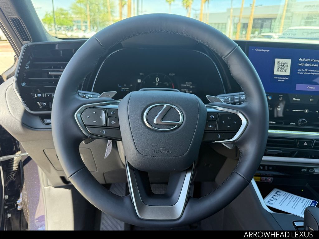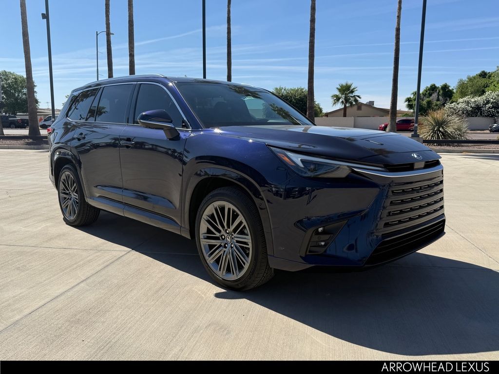 This Lexus TX is equipped with the following features: Convenience Package (Digital Key, Front Cross-Traffic Alert and Lane Change Assist, and Traffic Jam Assist), Technology Package (Advanced Park w/Remote Park, Digital Rearview Mirror, Head-Up Display, and Panoramic View Monitor), 12 Speakers, 20" Wheels, 3rd row seats: split-bench, 4-Wheel Disc Brakes, ABS brakes, Air Conditioning, Alloy wheels, AM/FM radio, Apple CarPlay/Android Auto, Auto High-beam Headlights, Auto tilt-away steering wheel, Auto-dimming door mirrors, Auto-dimming Rear-View mirror, Automatic temperature control, Brake assist, Bumpers: body-color, Delay-off headlights, Driver door bin, Driver vanity mirror, Dual front impact airbags, Dual front side impact airbags, Electronic Stability Control, Emergency communication system: Safety Connect (5-year minimum), Exterior Parking Camera Rear, Four wheel independent suspension, Front anti-roll bar, Front Bucket Seats, Front Center Armrest, Front dual zone A/C, Front fog lights, Front reading lights, Fully automatic headlights, Garage door transmitter: HomeLink, Headlight cleaning, Heated and Ventilated Front Seats, Heated and Ventilated Second Row Captain's Chairs, Heated door mirrors, Heated front seats, Heated rear seats, Heated steering wheel, Illuminated entry, Knee airbag, Leather Shift Knob, Leather steering wheel, Lexus Interface with 14" Touchscreen Display, Lexus Multimedia Screen Protector, Low tire pressure warning, Mark Levinson 21-Speaker PurePlay Surround Sound, Memory seat, Navigation system: Drive Connect Cloud Navigation (3-year trial subscription included), Occupant sensing airbag, Outside temperature display, Overhead airbag, Panic alarm, Passenger door bin, Passenger vanity mirror, Power door mirrors, Power driver seat, Power Liftgate, Power moonroof, Power passenger seat, Power steering, Power windows, Radio data system, Radio: 12-Speaker Lexus Premium Sound System, Rain sensing wipers, Rear air conditioning, Rear anti-roll bar, Rear reading lights, Rear seat center armrest, Rear window defroster, Rear window wiper, Reclining 3rd row seat, Remote keyless entry, Security system, Semi-Aniline Leather Seat Trim, Speed control, Speed-sensing steering, Split folding rear seat, Spoiler, Steering wheel memory, Steering wheel mounted audio controls, Tachometer, Telescoping steering wheel, Tilt steering wheel, Traction control, Trip computer, Turn signal indicator mirrors, Variably intermittent wipers, Ventilated front seats, Wheels: 20" Multispoke Alloy, and Wheels: 22" Multispoke Alloy.