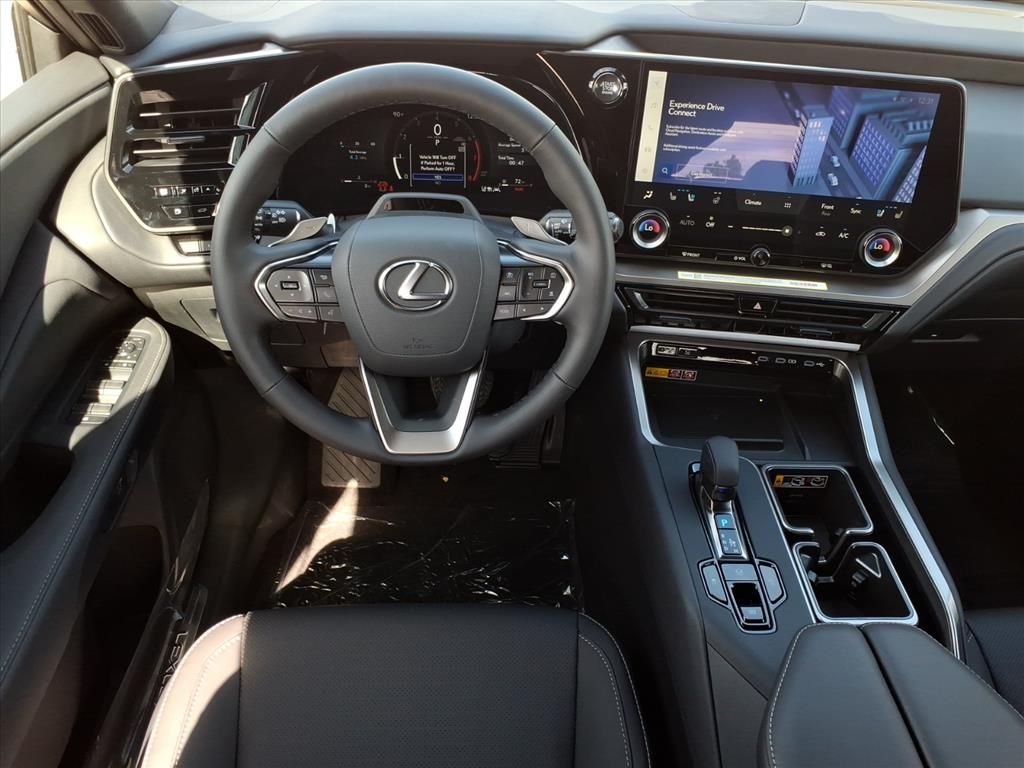 This Lexus TX is equipped with the following features: Convenience Package (Digital Key, Front Cross-Traffic Alert & Lane Change Assist, and Traffic Jam Assist), Technology Package (Advanced Park w/Remote Park and Panoramic View Monitor), 12 Speakers, 20" Wheels, 3rd row seats: split-bench, 4-Wheel Disc Brakes, ABS brakes, Air Conditioning, Alloy Wheel Locks w/Triple Nickel Chrome Plating, Alloy wheels, AM/FM radio, Apple CarPlay/Android Auto, Auto High-beam Headlights, Auto tilt-away steering wheel, Auto-dimming door mirrors, Auto-dimming Rear-View mirror, Automatic temperature control, Brake assist, Bumpers: body-color, Delay-off headlights, Driver door bin, Driver vanity mirror, Dual front impact airbags, Dual front side impact airbags, Electronic Stability Control, Emergency communication system: Safety Connect (5-year minimum), Exterior Parking Camera Rear, Four wheel independent suspension, Front anti-roll bar, Front Bucket Seats, Front Center Armrest, Front dual zone A/C, Front fog lights, Front reading lights, Fully automatic headlights, Garage door transmitter: HomeLink, Heated & Ventilated 2nd Row Captain's Chairs, Heated & Ventilated Front Seats, Heated door mirrors, Heated front seats, Heated steering wheel, Illuminated Cargo Sills w/Lexus Logo, Illuminated Door Sills w/Lexus Logo, Illuminated entry, Knee airbag, Leather Shift Knob, Leather steering wheel, Lexus Interface w/14" Touchscreen Display, Lexus Multimedia Screen Protector, Low tire pressure warning, Memory seat, Navigation system: Drive Connect Cloud Navigation (3-year trial subscription included), NuLuxe Seat Trim, Occupant sensing airbag, Outside temperature display, Overhead airbag, Panic alarm, Passenger door bin, Passenger vanity mirror, Power door mirrors, Power driver seat, Power Liftgate, Power moonroof, Power passenger seat, Power steering, Power windows, Radio data system, Radio: 12-Speaker Lexus Premium Sound System, Rain sensing wipers, Rear air conditioning, Rear anti-roll bar, Rear reading lights, Rear seat center armrest, Rear window defroster, Rear window wiper, Reclining 3rd row seat, Remote keyless entry, Security system, Speed control, Speed-sensing steering, Split folding rear seat, Spoiler, Steering wheel memory, Steering wheel mounted audio controls, Tachometer, Telescoping steering wheel, Tilt steering wheel, Tow Hitch Receiver, Traction control, Trip computer, Turn signal indicator mirrors, Variably intermittent wipers, Ventilated front seats, and Wheels: 20" Multispoke Alloy.