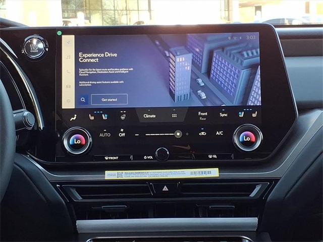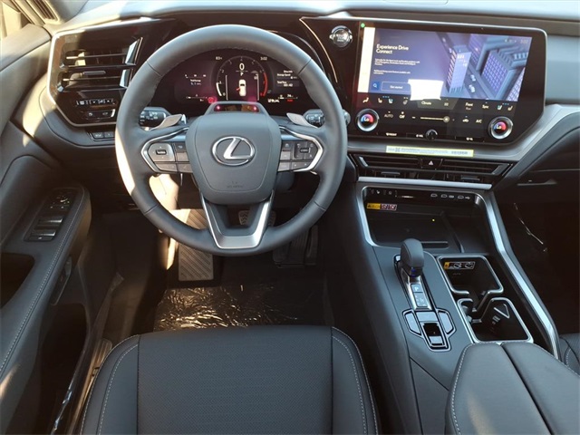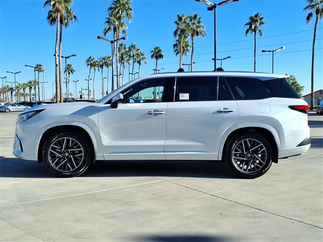 This Lexus TX is equipped with the following features: Convenience Package (Digital Key, Front Cross-Traffic Alert & Lane Change Assist, and Traffic Jam Assist), Technology Package (Advanced Park w/Remote Park and Panoramic View Monitor), 12 Speakers, 20" Wheels, 3rd row seats: split-bench, 4-Wheel Disc Brakes, ABS brakes, Air Conditioning, Alloy Wheel Locks w/Triple Nickel Chrome Plating, Alloy wheels, AM/FM radio, Apple CarPlay/Android Auto, Auto High-beam Headlights, Auto tilt-away steering wheel, Auto-dimming door mirrors, Auto-dimming Rear-View mirror, Automatic temperature control, Ball Mount, Brake assist, Bumpers: body-color, Cargo Net, Cross Bars, Delay-off headlights, Driver door bin, Driver vanity mirror, Dual front impact airbags, Dual front side impact airbags, Electronic Stability Control, Emergency communication system: Safety Connect (5-year minimum), Exterior Parking Camera Rear, Four wheel independent suspension, Front & Rear Mudguards, Front anti-roll bar, Front Bucket Seats, Front Center Armrest, Front dual zone A/C, Front fog lights, Front reading lights, Fully automatic headlights, Garage door transmitter: HomeLink, Heated & Ventilated Front Seats, Heated door mirrors, Heated front seats, Heated steering wheel, Illuminated Door Sills w/Lexus Logo, Illuminated entry, Knee airbag, Leather Shift Knob, Leather steering wheel, Lexus Interface w/14" Touchscreen Display, Low tire pressure warning, Memory seat, Navigation system: Drive Connect Cloud Navigation (3-year trial subscription included), NuLuxe Seat Trim, Occupant sensing airbag, Outside temperature display, Overhead airbag, Panic alarm, Passenger door bin, Passenger vanity mirror, Power door mirrors, Power driver seat, Power Liftgate, Power moonroof, Power passenger seat, Power steering, Power windows, Radio data system, Radio: 12-Speaker Lexus Premium Sound System, Rain sensing wipers, Rear air conditioning, Rear anti-roll bar, Rear Hatch Cargo Lamps, Rear reading lights, Rear seat center armrest, Rear window defroster, Rear window wiper, Reclining 3rd row seat, Remote keyless entry, Security system, Speed control, Speed-sensing steering, Split folding rear seat, Spoiler, Steering wheel memory, Steering wheel mounted audio controls, Tachometer, Telescoping steering wheel, Tilt steering wheel, Tow Hitch Receiver, Traction control, Trip computer, Turn signal indicator mirrors, Variably intermittent wipers, Ventilated front seats, and Wheels: 20" Multispoke Alloy.