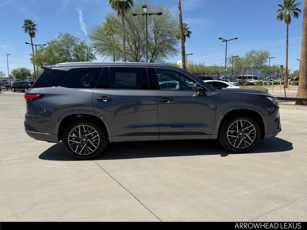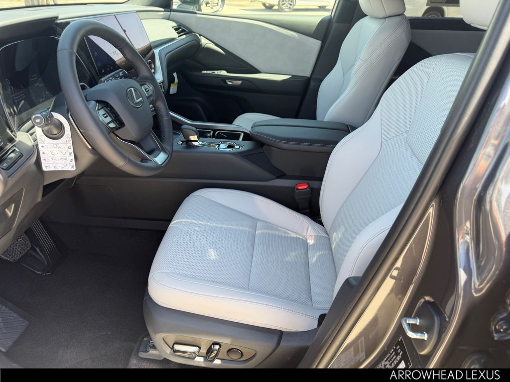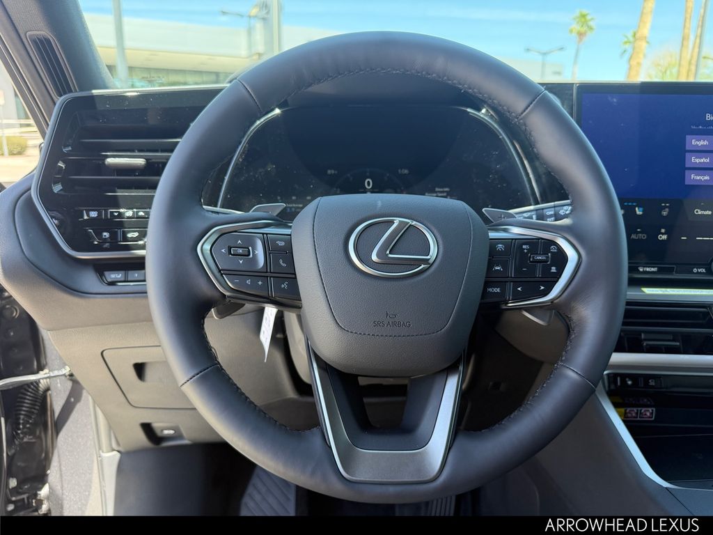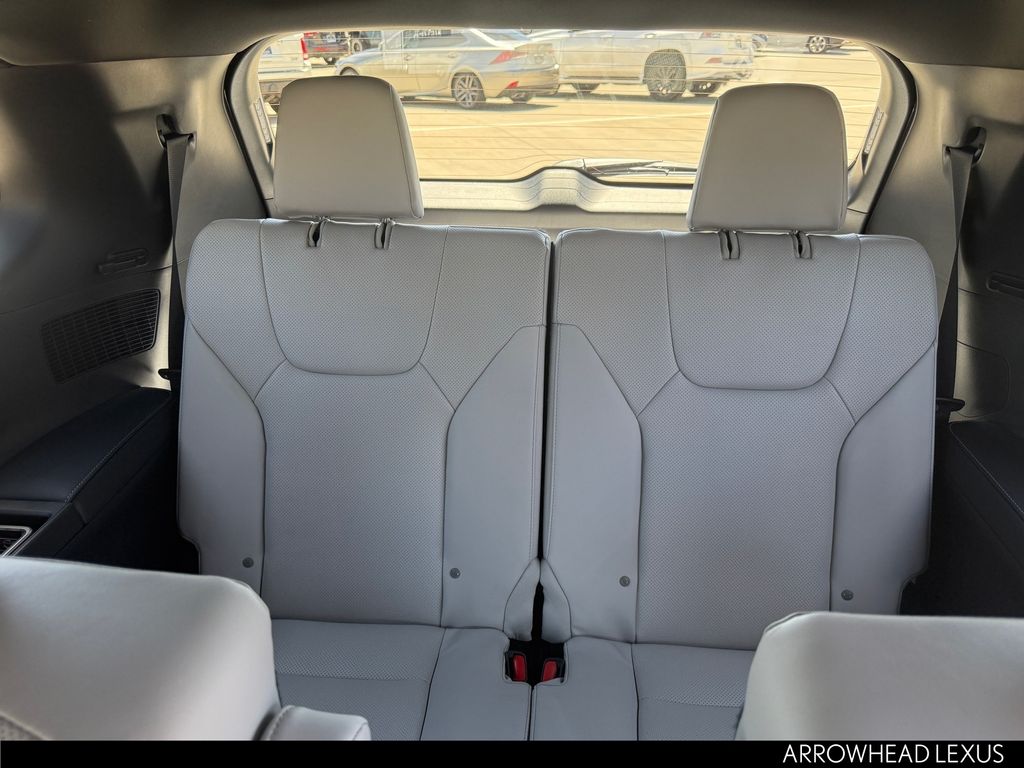 This Lexus TX is equipped with the following features: Birch Interior Package, Convenience Package (Digital Key, Front Cross-Traffic Alert and Lane Change Assist, and Traffic Jam Assist), Technology Package (Advanced Park with Remote Park and Panoramic View Monitor), 12 Speakers, 20" Wheels, 3rd row seats: split-bench, 4-Wheel Disc Brakes, ABS brakes, Air Conditioning, Alloy wheels, AM/FM radio, Apple CarPlay/Android Auto, Auto High-beam Headlights, Auto tilt-away steering wheel, Auto-dimming door mirrors, Auto-dimming Rear-View mirror, Automatic temperature control, Brake assist, Bumpers: body-color, Delay-off headlights, Driver door bin, Driver vanity mirror, Dual front impact airbags, Dual front side impact airbags, Electronic Stability Control, Emergency communication system: Safety Connect (5-year minimum), Exterior Parking Camera Rear, Four wheel independent suspension, Front anti-roll bar, Front Bucket Seats, Front Center Armrest, Front dual zone A/C, Front fog lights, Front reading lights, Fully automatic headlights, Garage door transmitter: HomeLink, Heated and Ventilated Front Seats, Heated and Ventilated Second Row Captain's Chairs, Heated door mirrors, Heated front seats, Heated steering wheel, Illuminated entry, Knee airbag, Leather Shift Knob, Leather steering wheel, Lexus Interface with 14" Touchscreen Display, Lexus Multimedia Screen Protector, Lexus Quick Charge Cables, Low tire pressure warning, Memory seat, Navigation system: Drive Connect Cloud Navigation (3-year trial subscription included), NuLuxe Seat Trim, Occupant sensing airbag, Outside temperature display, Overhead airbag, Panic alarm, Passenger door bin, Passenger vanity mirror, Power door mirrors, Power driver seat, Power Liftgate, Power moonroof, Power passenger seat, Power steering, Power windows, Radio data system, Radio: 12-Speaker Lexus Premium Sound System, Rain sensing wipers, Rear air conditioning, Rear anti-roll bar, Rear Hatch Cargo Lamps, Rear reading lights, Rear seat center armrest, Rear window defroster, Rear window wiper, Reclining 3rd row seat, Remote keyless entry, Security system, Speed control, Speed-sensing steering, Split folding rear seat, Spoiler, Steering wheel memory, Steering wheel mounted audio controls, Tachometer, Telescoping steering wheel, Tilt steering wheel, Traction control, Trip computer, Turn signal indicator mirrors, Variably intermittent wipers, Ventilated front seats, and Wheels: 20" Multispoke Alloy.