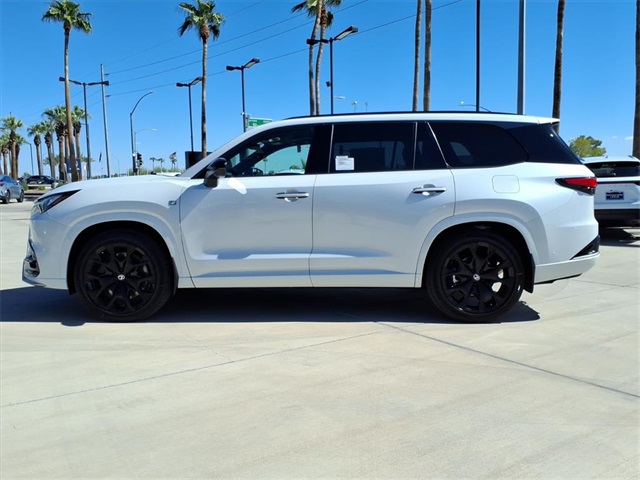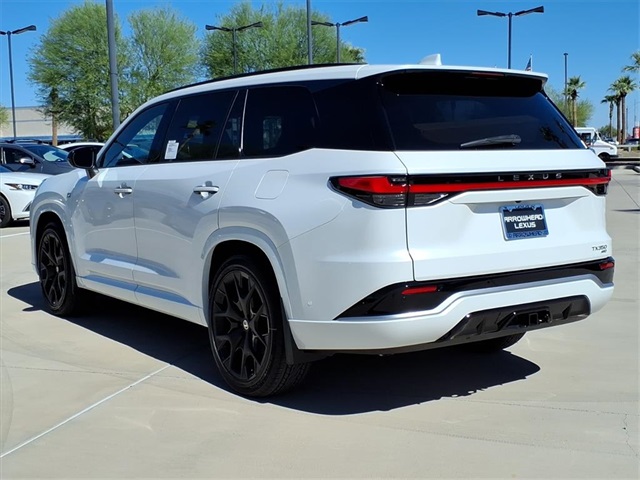 This Lexus TX is equipped with the following features: Accessory Package (2T) (All-Weather Cargo Mat and All-Weather Floor Liners), Convenience Package (Digital Key, Front Cross-Traffic Alert & Lane Change Assist, and Traffic Jam Assist), 12 Speakers, 3rd row seats: split-bench, 4-Wheel Disc Brakes, ABS brakes, Air Conditioning, Alloy wheels, AM/FM radio, Apple CarPlay/Android Auto, Auto High-beam Headlights, Auto tilt-away steering wheel, Auto-dimming door mirrors, Auto-dimming Rear-View mirror, Automatic temperature control, Brake assist, Bumpers: body-color, Cargo Net, Delay-off headlights, Driver door bin, Driver vanity mirror, Dual front impact airbags, Dual front side impact airbags, Electronic Stability Control, Emergency communication system: Safety Connect (5-year minimum), Exterior Parking Camera Rear, Four wheel independent suspension, Front & Rear Mudguards, Front anti-roll bar, Front Bucket Seats, Front Center Armrest, Front dual zone A/C, Front fog lights, Front reading lights, Fully automatic headlights, Garage door transmitter: HomeLink, Heated door mirrors, Heated front seats, Heated steering wheel, Illuminated entry, Knee airbag, Leather Shift Knob, Leather steering wheel, Lexus Interface w/14" Touchscreen Display, Low tire pressure warning, Navigation system: Drive Connect Cloud Navigation (3-year trial subscription included), NuLuxe Seat Trim, Occupant sensing airbag, Outside temperature display, Overhead airbag, Panic alarm, Passenger door bin, Passenger vanity mirror, Power door mirrors, Power driver seat, Power Liftgate, Power passenger seat, Power steering, Power windows, Radio data system, Radio: 12-Speaker Lexus Premium Sound System, Rain sensing wipers, Rear air conditioning, Rear anti-roll bar, Rear reading lights, Rear window defroster, Rear window wiper, Reclining 3rd row seat, Remote keyless entry, Security system, SiriusXM Trial Offering: 33 Months, Speed control, Speed-sensing steering, Split folding rear seat, Spoiler, Steering wheel mounted audio controls, Tachometer, Telescoping steering wheel, Tilt steering wheel, Tow Hitch Receiver, Traction control, Trip computer, Turn signal indicator mirrors, and Variably intermittent wipers.