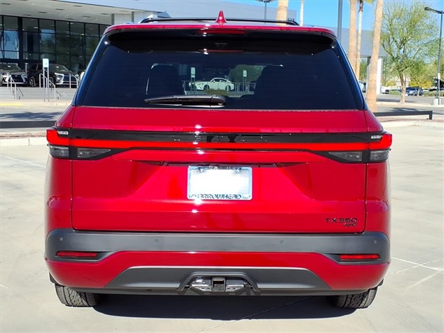 This Lexus TX is equipped with the following features: Accessory Package (Z1) (Alloy Wheel Locks w/Triple Nickel Chrome Plating, Cargo Net, Carpet Cargo Mat w/Embroidered Logo, and Key Gloves w/Embossed Lexus Logo), Convenience Package (Digital Key, Front Cross-Traffic Alert & Lane Change Assist, and Traffic Jam Assist), 12 Speakers, 3rd row seats: split-bench, 4-Wheel Disc Brakes, ABS brakes, Air Conditioning, Alloy wheels, AM/FM radio, Apple CarPlay/Android Auto, Auto High-beam Headlights, Auto tilt-away steering wheel, Auto-dimming door mirrors, Auto-dimming Rear-View mirror, Automatic temperature control, Ball Mount, Brake assist, Bumpers: body-color, Cross Bars, Dashcam, Delay-off headlights, Driver door bin, Driver vanity mirror, Dual front impact airbags, Dual front side impact airbags, Electronic Stability Control, Emergency communication system: Safety Connect (5-year minimum), Exterior Parking Camera Rear, Four wheel independent suspension, Front & Rear Mudguards, Front anti-roll bar, Front Bucket Seats, Front Center Armrest, Front dual zone A/C, Front fog lights, Front reading lights, Fully automatic headlights, Garage door transmitter: HomeLink, Heated door mirrors, Heated front seats, Heated steering wheel, Illuminated entry, Knee airbag, Leather Shift Knob, Leather steering wheel, Lexus Interface w/14" Touchscreen Display, Low tire pressure warning, Navigation system: Drive Connect Cloud Navigation (3-year trial subscription included), NuLuxe Seat Trim, Occupant sensing airbag, Outside temperature display, Overhead airbag, Panic alarm, Passenger door bin, Passenger vanity mirror, Power door mirrors, Power driver seat, Power Liftgate, Power passenger seat, Power steering, Power windows, Radio data system, Radio: 12-Speaker Lexus Premium Sound System, Rain sensing wipers, Rear air conditioning, Rear anti-roll bar, Rear reading lights, Rear window defroster, Rear window wiper, Reclining 3rd row seat, Remote keyless entry, Security system, Speed control, Speed-sensing steering, Split folding rear seat, Spoiler, Steering wheel mounted audio controls, Tachometer, Telescoping steering wheel, Tilt steering wheel, Tow Hitch Receiver, Traction control, Trip computer, Turn signal indicator mirrors, and Variably intermittent wipers.