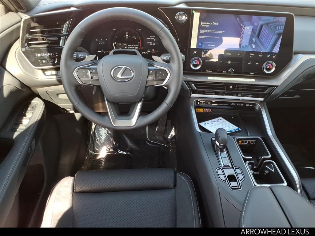 This Lexus TX is equipped with the following features: Accessory Package (2T) (All-Weather Cargo Mat and All-Weather Floor Liners), Convenience Package (Digital Key, Front Cross-Traffic Alert & Lane Change Assist, and Traffic Jam Assist), 12 Speakers, 20" Wheels, 3rd row seats: split-bench, 4-Wheel Disc Brakes, ABS brakes, Air Conditioning, Alloy wheels, AM/FM radio, Apple CarPlay/Android Auto, Auto High-beam Headlights, Auto tilt-away steering wheel, Auto-dimming door mirrors, Auto-dimming Rear-View mirror, Automatic temperature control, Brake assist, Bumpers: body-color, Delay-off headlights, Door Edge Film by 3M, Driver door bin, Driver vanity mirror, Dual front impact airbags, Dual front side impact airbags, Electronic Stability Control, Emergency Assistance Kit, Emergency communication system: Safety Connect (5-year minimum), Exterior Parking Camera Rear, Four wheel independent suspension, Front & Rear Mudguards, Front anti-roll bar, Front Bucket Seats, Front Center Armrest, Front dual zone A/C, Front fog lights, Front reading lights, Fully automatic headlights, Garage door transmitter: HomeLink, Heated door mirrors, Heated Front Seats, Heated front seats, Heated steering wheel, Illuminated Door Sills w/Lexus Logo, Illuminated entry, Key Gloves w/Embossed Lexus Logo, Knee airbag, Leather Shift Knob, Leather steering wheel, Lexus Interface w/14" Touchscreen Display, Low tire pressure warning, Navigation system: Drive Connect Cloud Navigation (3-year trial subscription included), NuLuxe Seat Trim, Occupant sensing airbag, Outside temperature display, Overhead airbag, Panic alarm, Passenger door bin, Passenger vanity mirror, Power door mirrors, Power driver seat, Power Liftgate, Power passenger seat, Power steering, Power windows, Radio data system, Radio: 12-Speaker Lexus Premium Sound System, Rain sensing wipers, Rear air conditioning, Rear anti-roll bar, Rear Hatch Cargo Lamps, Rear reading lights, Rear seat center armrest, Rear window defroster, Rear window wiper, Reclining 3rd row seat, Remote keyless entry, Security system, Speed control, Speed-sensing steering, Split folding rear seat, Spoiler, Steering wheel mounted audio controls, Tachometer, Telescoping steering wheel, Tilt steering wheel, Tow Hitch Receiver, Traction control, Trip computer, Turn signal indicator mirrors, Variably intermittent wipers, and Wheels: 20" Multispoke Alloy.