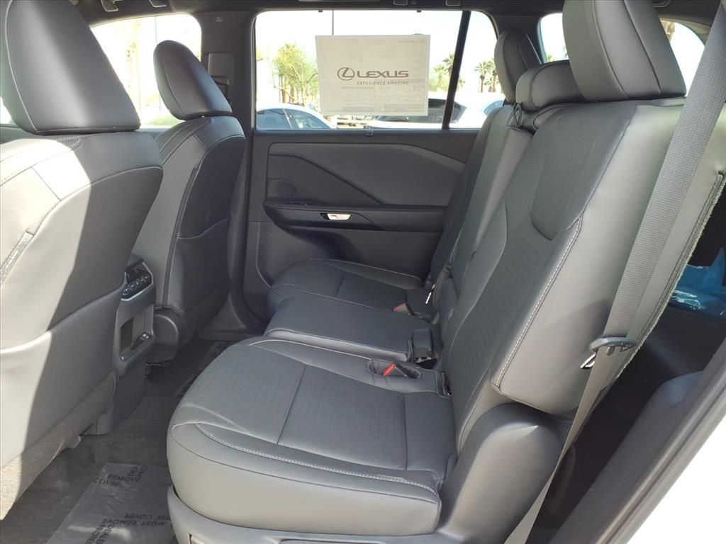 This Lexus TX is equipped with the following features: Accessory Package (2T) (All-Weather Cargo Mat and All-Weather Floor Liners), Convenience Package (Digital Key, Front Cross-Traffic Alert & Lane Change Assist, and Traffic Jam Assist), 12 Speakers, 20" Wheels, 3rd row seats: split-bench, 4-Wheel Disc Brakes, ABS brakes, Air Conditioning, Alloy Wheel Locks w/Triple Nickel Chrome Plating, Alloy wheels, AM/FM radio, Apple CarPlay/Android Auto, Auto High-beam Headlights, Auto tilt-away steering wheel, Auto-dimming door mirrors, Auto-dimming Rear-View mirror, Automatic temperature control, Brake assist, Bumpers: body-color, Delay-off headlights, Driver door bin, Driver vanity mirror, Dual front impact airbags, Dual front side impact airbags, Electronic Stability Control, Emergency communication system: Safety Connect (5-year minimum), Exterior Parking Camera Rear, Four wheel independent suspension, Front anti-roll bar, Front Bucket Seats, Front Center Armrest, Front dual zone A/C, Front fog lights, Front reading lights, Fully automatic headlights, Garage door transmitter: HomeLink, Heated door mirrors, Heated Front Seats, Heated front seats, Heated steering wheel, Illuminated Door Sills w/Lexus Logo, Illuminated entry, Key Gloves w/Embossed Lexus Logo, Knee airbag, Leather Shift Knob, Leather steering wheel, Lexus Interface w/14" Touchscreen Display, Low tire pressure warning, Navigation system: Drive Connect Cloud Navigation (3-year trial subscription included), NuLuxe Seat Trim, Occupant sensing airbag, Outside temperature display, Overhead airbag, Panic alarm, Passenger door bin, Passenger vanity mirror, Power door mirrors, Power driver seat, Power Liftgate, Power passenger seat, Power steering, Power windows, Radio data system, Radio: 12-Speaker Lexus Premium Sound System, Rain sensing wipers, Rear air conditioning, Rear anti-roll bar, Rear reading lights, Rear seat center armrest, Rear window defroster, Rear window wiper, Reclining 3rd row seat, Remote keyless entry, Security system, SiriusXM Trial Offering: 33 Months, Speed control, Speed-sensing steering, Split folding rear seat, Spoiler, Steering wheel mounted audio controls, Tachometer, Telescoping steering wheel, Tilt steering wheel, Traction control, Trip computer, Turn signal indicator mirrors, Variably intermittent wipers, and Wheels: 20" Multispoke Alloy.