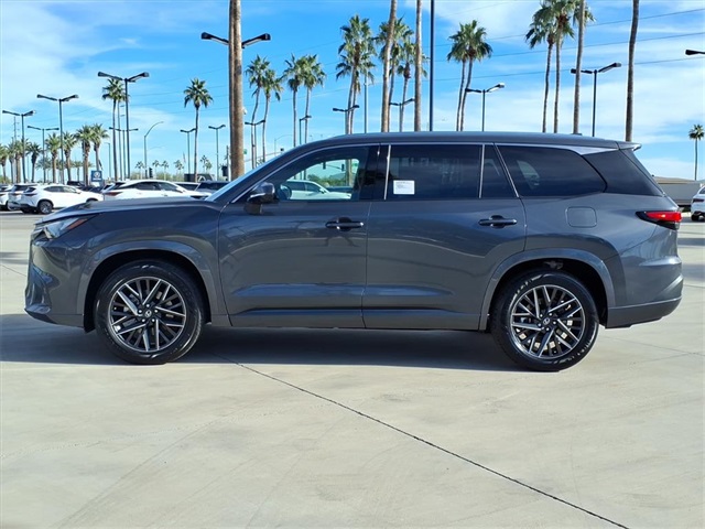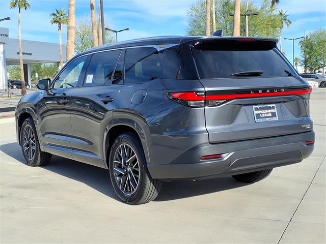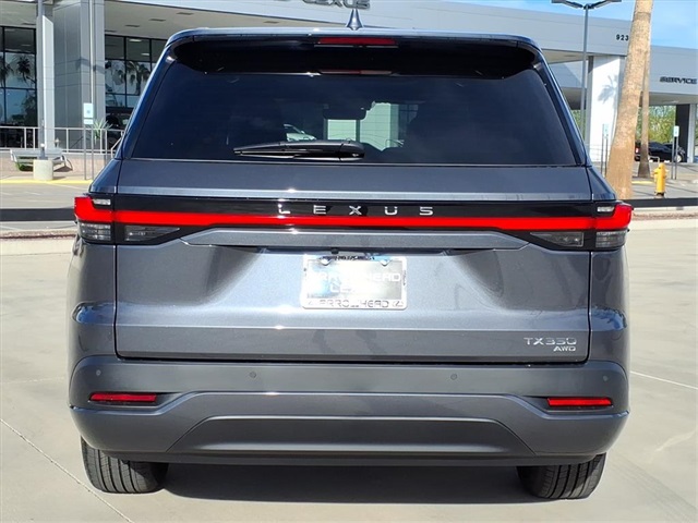 This Lexus TX is equipped with the following features: Accessory Package (2T) (All-Weather Cargo Mat and All-Weather Floor Liners), Accessory Package (Z1) (Alloy Wheel Locks w/Triple Nickel Chrome Plating, Cargo Net, Carpet Cargo Mat w/Embroidered Logo, and Key Gloves w/Embossed Lexus Logo), Convenience Package (Digital Key, Front Cross-Traffic Alert & Lane Change Assist, and Traffic Jam Assist), 12 Speakers, 20" Wheels, 3rd row seats: split-bench, 4-Wheel Disc Brakes, ABS brakes, Air Conditioning, Alloy wheels, AM/FM radio, Apple CarPlay/Android Auto, Auto High-beam Headlights, Auto tilt-away steering wheel, Auto-dimming door mirrors, Auto-dimming Rear-View mirror, Automatic temperature control, Brake assist, Bumpers: body-color, Delay-off headlights, Driver door bin, Driver vanity mirror, Dual front impact airbags, Dual front side impact airbags, Electronic Stability Control, Emergency communication system: Safety Connect (5-year minimum), Exterior Parking Camera Rear, Four wheel independent suspension, Front anti-roll bar, Front Bucket Seats, Front Center Armrest, Front dual zone A/C, Front fog lights, Front reading lights, Fully automatic headlights, Garage door transmitter: HomeLink, Heated door mirrors, Heated Front Seats, Heated front seats, Heated steering wheel, Illuminated Door Sills w/Lexus Logo, Illuminated entry, Knee airbag, Leather Shift Knob, Leather steering wheel, Lexus Interface w/14" Touchscreen Display, Low tire pressure warning, Navigation system: Drive Connect Cloud Navigation (3-year trial subscription included), NuLuxe Seat Trim, Occupant sensing airbag, Outside temperature display, Overhead airbag, Panic alarm, Passenger door bin, Passenger vanity mirror, Power door mirrors, Power driver seat, Power Liftgate, Power passenger seat, Power steering, Power windows, Radio data system, Radio: 12-Speaker Lexus Premium Sound System, Rain sensing wipers, Rear air conditioning, Rear anti-roll bar, Rear Hatch Cargo Lamps, Rear reading lights, Rear seat center armrest, Rear window defroster, Rear window wiper, Reclining 3rd row seat, Remote keyless entry, Security system, Side Puddle Lamps w/Lexus Logo, Speed control, Speed-sensing steering, Split folding rear seat, Spoiler, Steering wheel mounted audio controls, Tachometer, Telescoping steering wheel, Tilt steering wheel, Traction control, Trip computer, Turn signal indicator mirrors, Variably intermittent wipers, and Wheels: 20" Multispoke Alloy.
