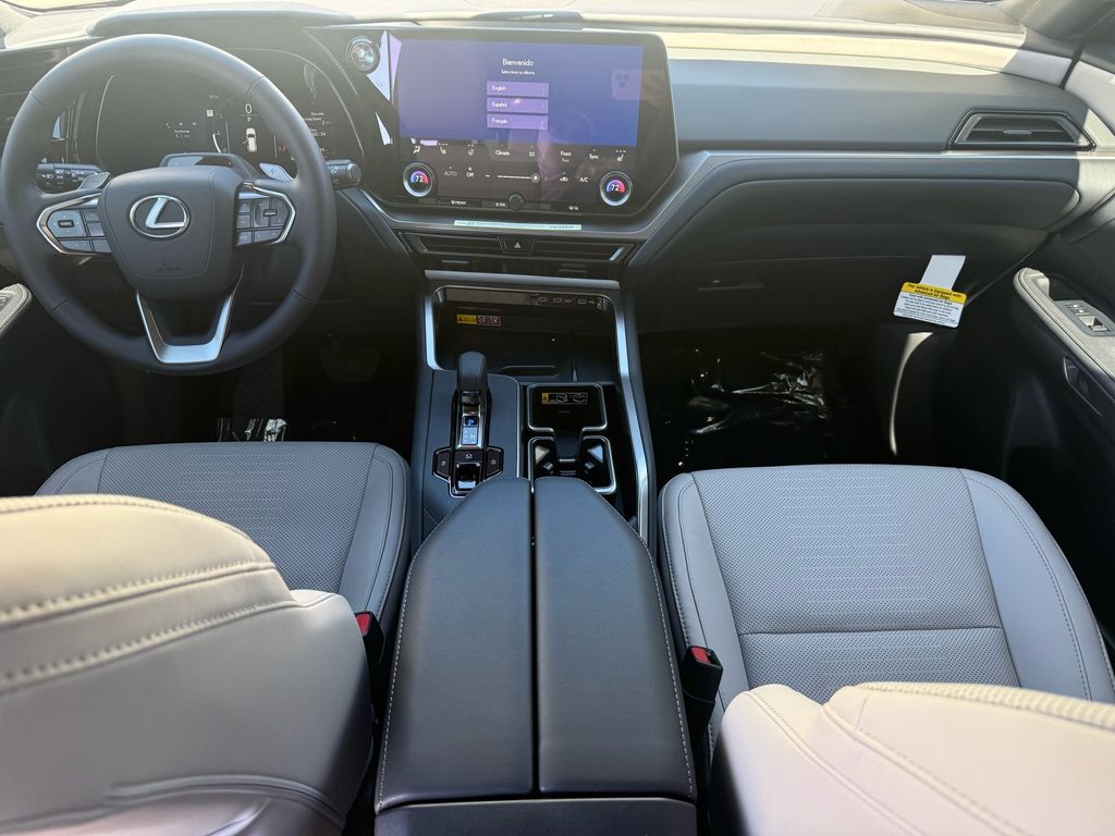 This Lexus TX is equipped with the following features: Birch Interior Package, Convenience Package (Digital Key, Front Cross-Traffic Alert and Lane Change Assist, and Traffic Jam Assist), 12 Speakers, 20" Wheels, 3rd row seats: split-bench, 4-Wheel Disc Brakes, ABS brakes, Air Conditioning, Alloy wheels, AM/FM radio, Apple CarPlay/Android Auto, Auto High-beam Headlights, Auto tilt-away steering wheel, Auto-dimming door mirrors, Auto-dimming Rear-View mirror, Automatic temperature control, Black Emblem Overlays, Brake assist, Bumpers: body-color, Delay-off headlights, Driver door bin, Driver vanity mirror, Dual front impact airbags, Dual front side impact airbags, Electronic Stability Control, Emergency communication system: Safety Connect (5-year minimum), Exterior Parking Camera Rear, Four wheel independent suspension, Front anti-roll bar, Front Bucket Seats, Front Center Armrest, Front dual zone A/C, Front fog lights, Front reading lights, Fully automatic headlights, Garage door transmitter: HomeLink, Heated door mirrors, Heated Front Seats, Heated front seats, Heated steering wheel, Illuminated entry, Knee airbag, Leather Shift Knob, Leather steering wheel, Lexus Interface with 14" Touchscreen Display, Lexus Multimedia Screen Protector, Low tire pressure warning, Navigation system: Drive Connect Cloud Navigation (3-year trial subscription included), NuLuxe Seat Trim, Occupant sensing airbag, Outside temperature display, Overhead airbag, Panic alarm, Passenger door bin, Passenger vanity mirror, Power door mirrors, Power driver seat, Power Liftgate, Power passenger seat, Power steering, Power windows, Radio data system, Radio: 12-Speaker Lexus Premium Sound System, Rain sensing wipers, Rear air conditioning, Rear anti-roll bar, Rear Hatch Cargo Lamps, Rear reading lights, Rear seat center armrest, Rear window defroster, Rear window wiper, Reclining 3rd row seat, Remote keyless entry, Security system, Speed control, Speed-sensing steering, Split folding rear seat, Spoiler, Steering wheel mounted audio controls, Tachometer, Telescoping steering wheel, Tilt steering wheel, Traction control, Trip computer, Turn signal indicator mirrors, Variably intermittent wipers, and Wheels: 20" Multispoke Alloy.