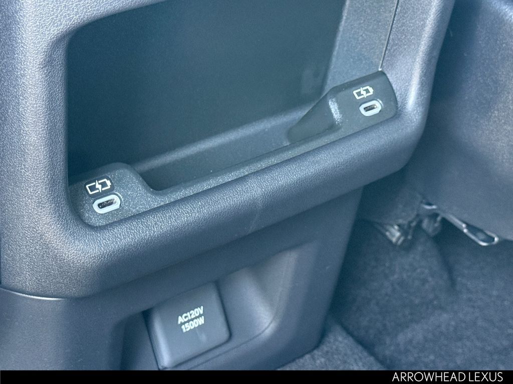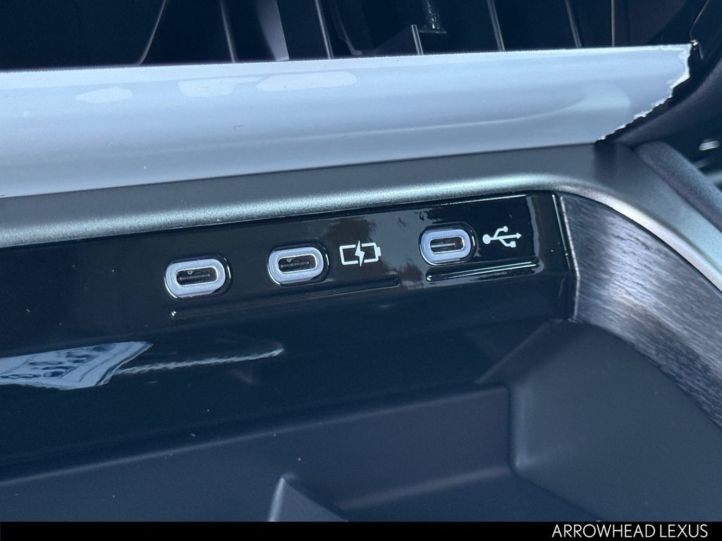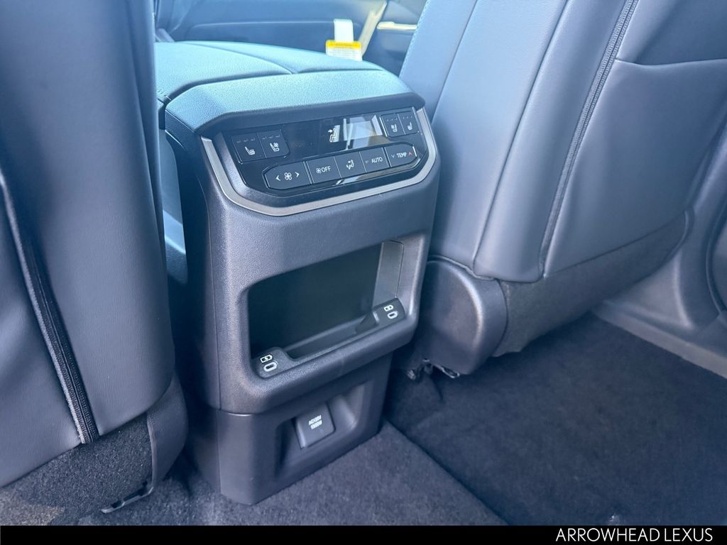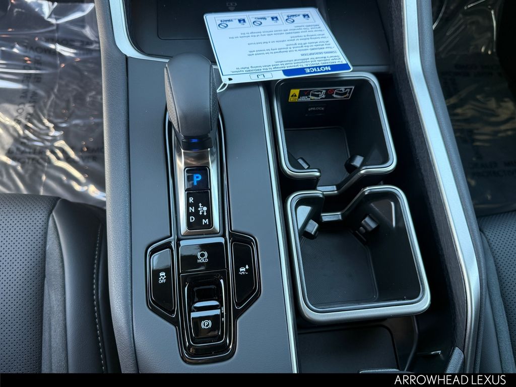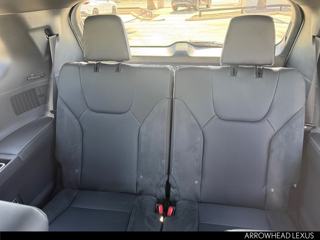 This Lexus TX is equipped with the following features: Convenience Package (Digital Key and Traffic Jam Assist), F SPORT Luxury Upgrade Package, Technology Package (Advanced Park with Remote Park, Digital Rearview Mirror, Head-Up Display, and Panoramic View Monitor), 2.4L I4 PDI Hybrid Turbocharged DOHC 16V, 120V/1500-Watt AC Power Outlet, 21 Speakers, 3rd row seats: split-bench, 4-Wheel Disc Brakes, ABS brakes, Adaptive suspension, Air Conditioning, Alloy wheels, AM/FM radio, Apple CarPlay/Android Auto, Auto High-beam Headlights, Auto tilt-away steering wheel, Auto-dimming door mirrors, Auto-dimming Rear-View mirror, Automatic temperature control, Brake assist, Bumpers: body-color, Delay-off headlights, Driver door bin, Driver vanity mirror, Dual front impact airbags, Dual front side impact airbags, Electronic Stability Control, Emergency communication system: Safety Connect (5-year minimum), Exterior Parking Camera Rear, F SPORT Black Badges, F SPORT Heated and Ventilated Front Seats, Four wheel independent suspension, Front anti-roll bar, Front Bucket Seats, Front Center Armrest, Front dual zone A/C, Front fog lights, Front reading lights, Fully automatic headlights, Garage door transmitter: HomeLink, Headlight cleaning, Heated door mirrors, Heated front seats, Heated rear seats, Heated steering wheel, Illuminated entry, Knee airbag, Leather Seat Trim, Leather Shift Knob, Leather steering wheel, Lexus Interface with 14" Touchscreen Display, Lexus Multimedia Screen Protector, Lexus Quick Charge Cables, Low tire pressure warning, Memory seat, Navigation system: Drive Connect Cloud Navigation (3-year trial subscription included), Occupant sensing airbag, Outside temperature display, Overhead airbag, Panic alarm, Passenger door bin, Passenger vanity mirror, Power door mirrors, Power driver seat, Power Liftgate, Power moonroof, Power passenger seat, Power steering, Power windows, Radio data system, Radio: : Mark Levinson PurePlay Surround Sound, Rain sensing wipers, Rear air conditioning, Rear anti-roll bar, Rear reading lights, Rear window defroster, Rear window wiper, Reclining 3rd row seat, Remote keyless entry, Security system, Speed control, Speed-sensing steering, Split folding rear seat, Spoiler, Steering wheel memory, Steering wheel mounted audio controls, Telescoping steering wheel, Tilt steering wheel, Traction control, Trip computer, Turn signal indicator mirrors, Variably intermittent wipers, Ventilated front seats, Ventilated rear seats, and Wheels: 22" Split 5-Spoke Alloy.