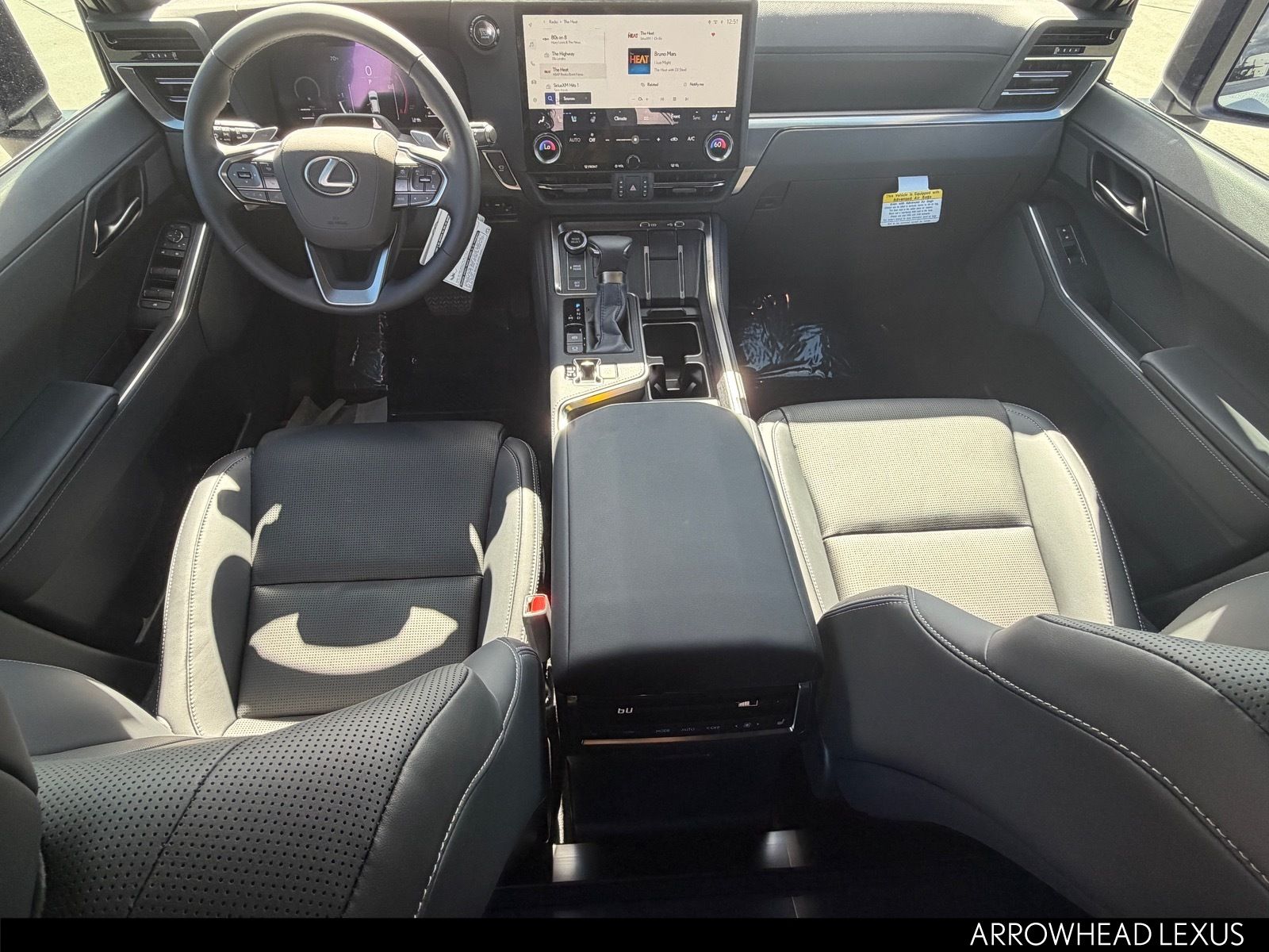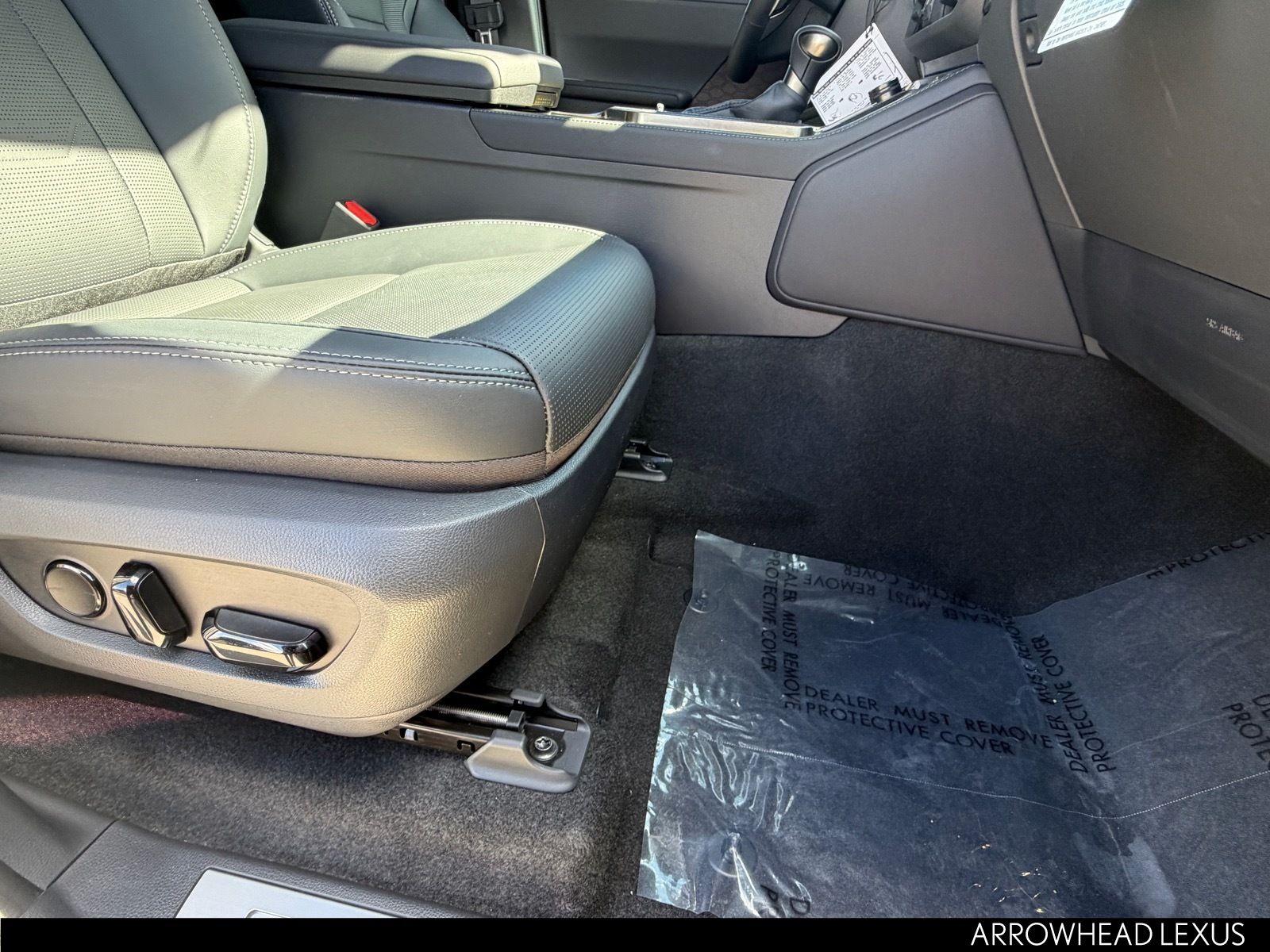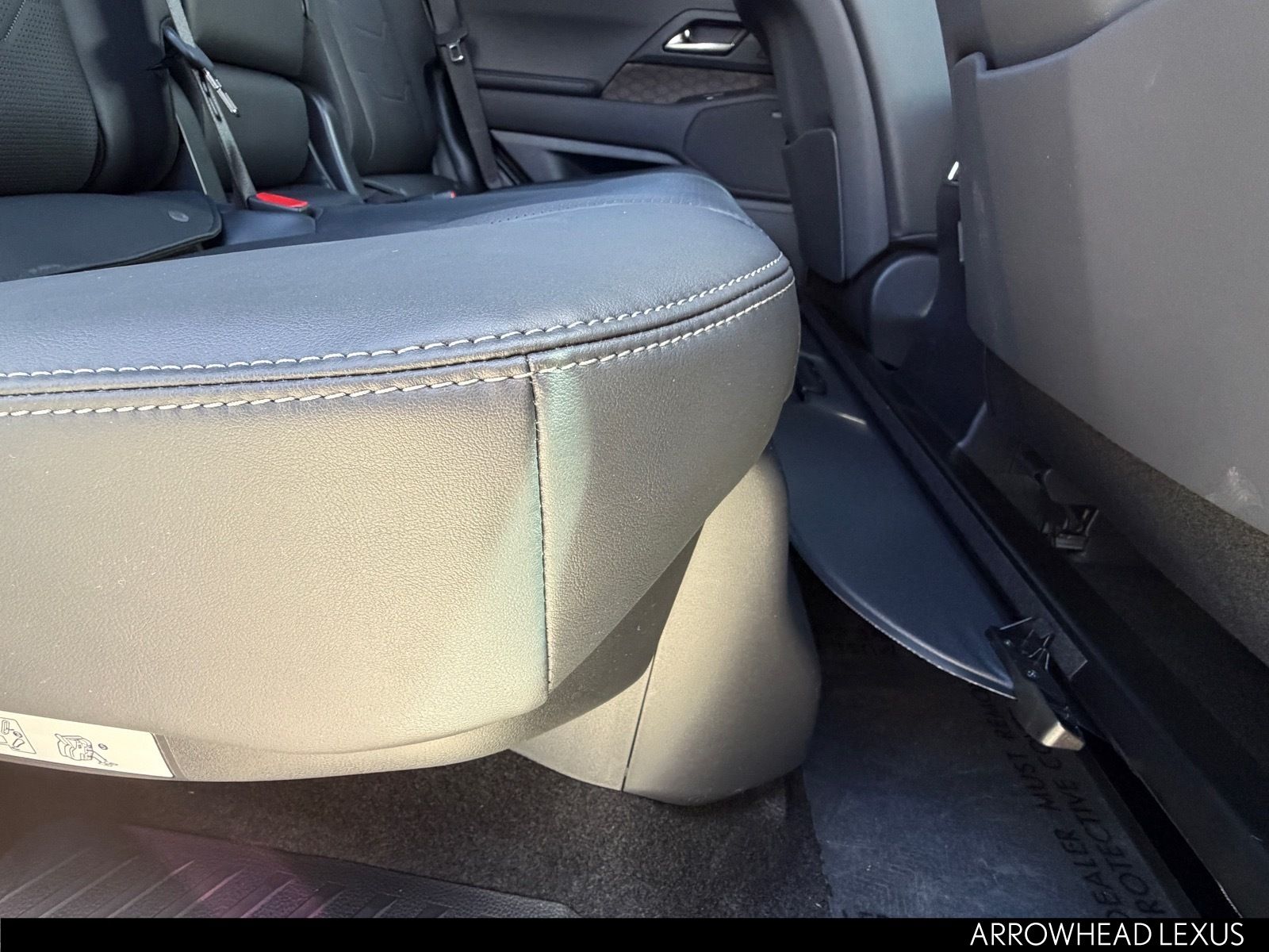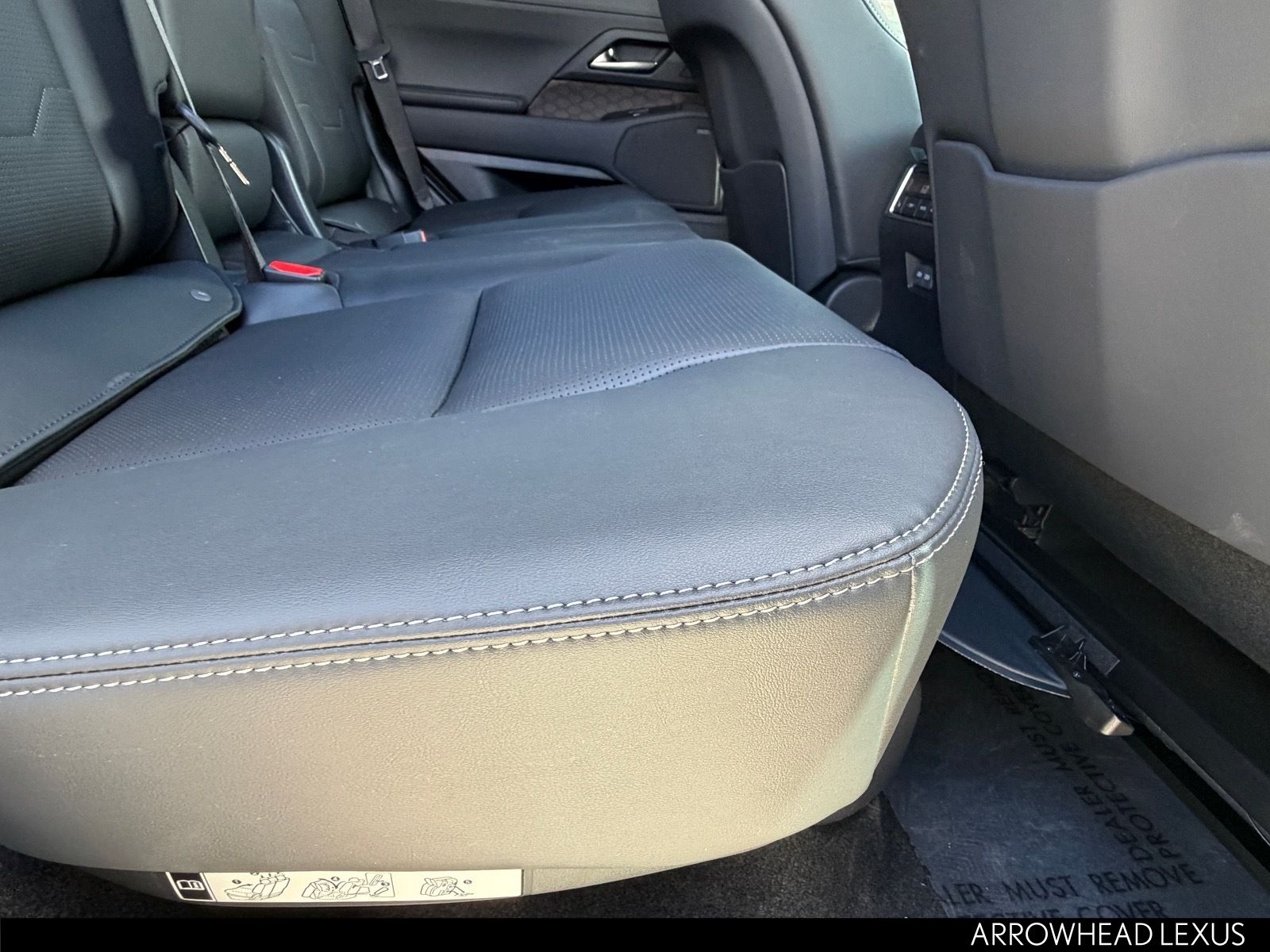 This Lexus TX is equipped with the following features: Accessory Package, Convenience Package (Digital Key and Traffic Jam Assist), Technology Package (Advanced Park w/Remote Park and Panoramic View Monitor), 2.4L I4 PDI Hybrid Turbocharged DOHC 16V, 12 Speakers, 120V/1500-Watt AC Power Outlet, 3rd row seats: split-bench, 4-Wheel Disc Brakes, ABS brakes, Adaptive suspension, Air Conditioning, All-Weather Cargo Mat, All-Weather Floor Liners, Alloy wheels, AM/FM radio, Apple CarPlay/Android Auto, Auto High-beam Headlights, Auto tilt-away steering wheel, Auto-dimming door mirrors, Auto-dimming Rear-View mirror, Automatic temperature control, Brake assist, Bumpers: body-color, Cargo Net, Delay-off headlights, Driver door bin, Driver vanity mirror, Dual front impact airbags, Dual front side impact airbags, Electronic Stability Control, Emergency Assistance Kit, Emergency communication system: Safety Connect (5-year minimum), Exterior Parking Camera Rear, F SPORT Heated and Ventilated Front Seats, Four wheel independent suspension, Front anti-roll bar, Front Bucket Seats, Front Center Armrest, Front dual zone A/C, Front fog lights, Front reading lights, Fully automatic headlights, Garage door transmitter: HomeLink, Headlight cleaning, Heated door mirrors, Heated front seats, Heated rear seats, Heated steering wheel, Illuminated Cargo Sills with Lexus Logo, Illuminated Door Sills with Lexus Logo, Illuminated entry, Key Gloves with Embossed Lexus Logo, Knee airbag, Leather Shift Knob, Leather steering wheel, Lexus Interface with 14" Touchscreen Display, Low tire pressure warning, Mark Levinson 21-Speaker PurePlay Surround Sound, Memory seat, Navigation system: Drive Connect Cloud Navigation (3-year trial subscription included), NuLuxe Seat Trim, Occupant sensing airbag, Outside temperature display, Overhead airbag, Panic alarm, Passenger door bin, Passenger vanity mirror, Power door mirrors, Power driver seat, Power Liftgate, Power passenger seat, Power steering, Power windows, Radio data system, Radio: 12-Speaker Lexus Premium Sound System, Rain sensing wipers, Rear air conditioning, Rear anti-roll bar, Rear Hatch Cargo Lamps, Rear reading lights, Rear window defroster, Rear window wiper, Reclining 3rd row seat, Remote keyless entry, Security system, SiriusXM Trial Offering: 33 Months, Speed control, Speed-sensing steering, Split folding rear seat, Spoiler, Steering wheel memory, Steering wheel mounted audio controls, Telescoping steering wheel, Tilt steering wheel, Tow Hitch Receiver, Traction control, Trip computer, Turn signal indicator mirrors, Variably intermittent wipers, Ventilated front seats, Ventilated rear seats, and Wheels: 22" Split 5-Spoke Alloy.