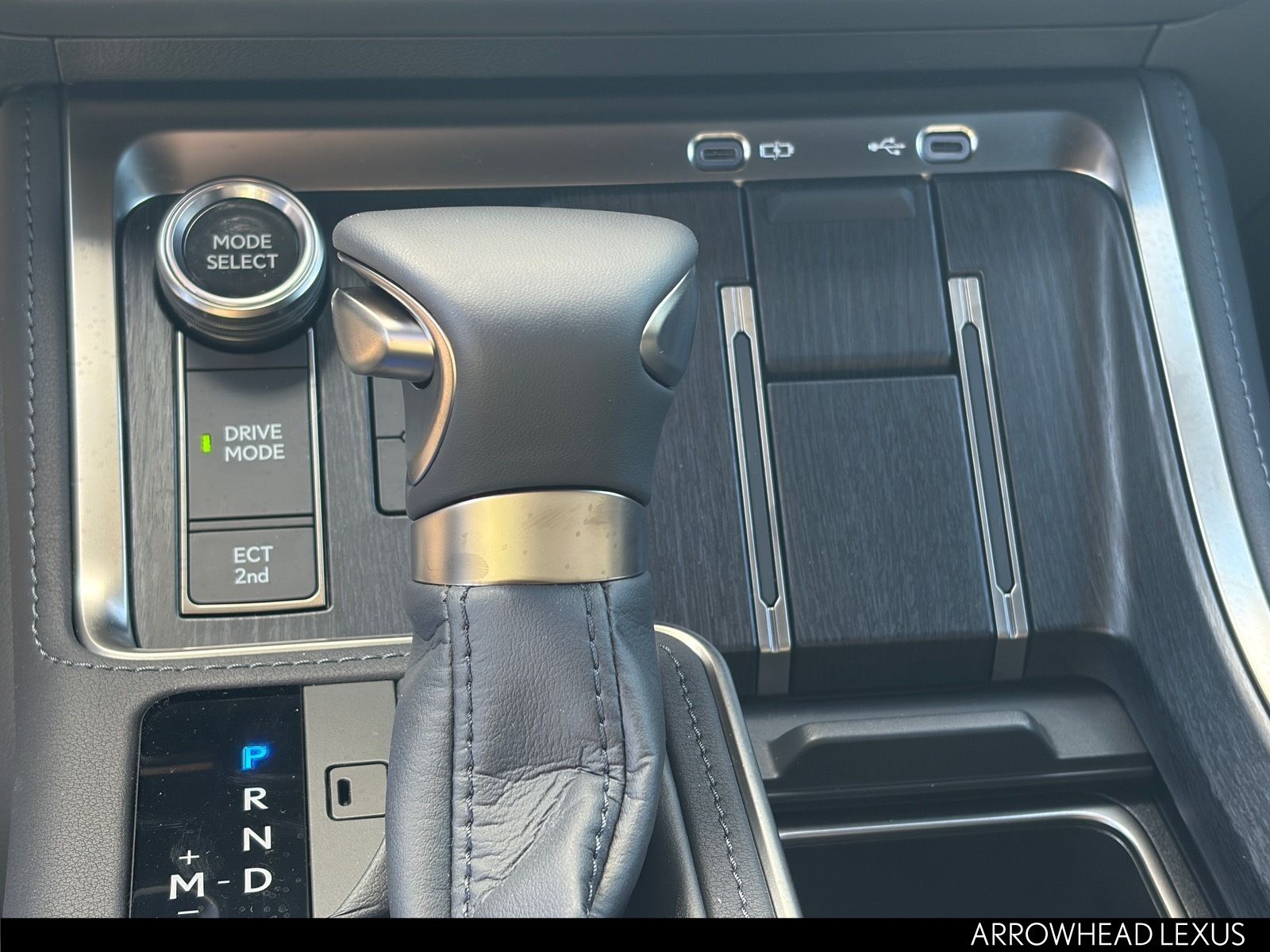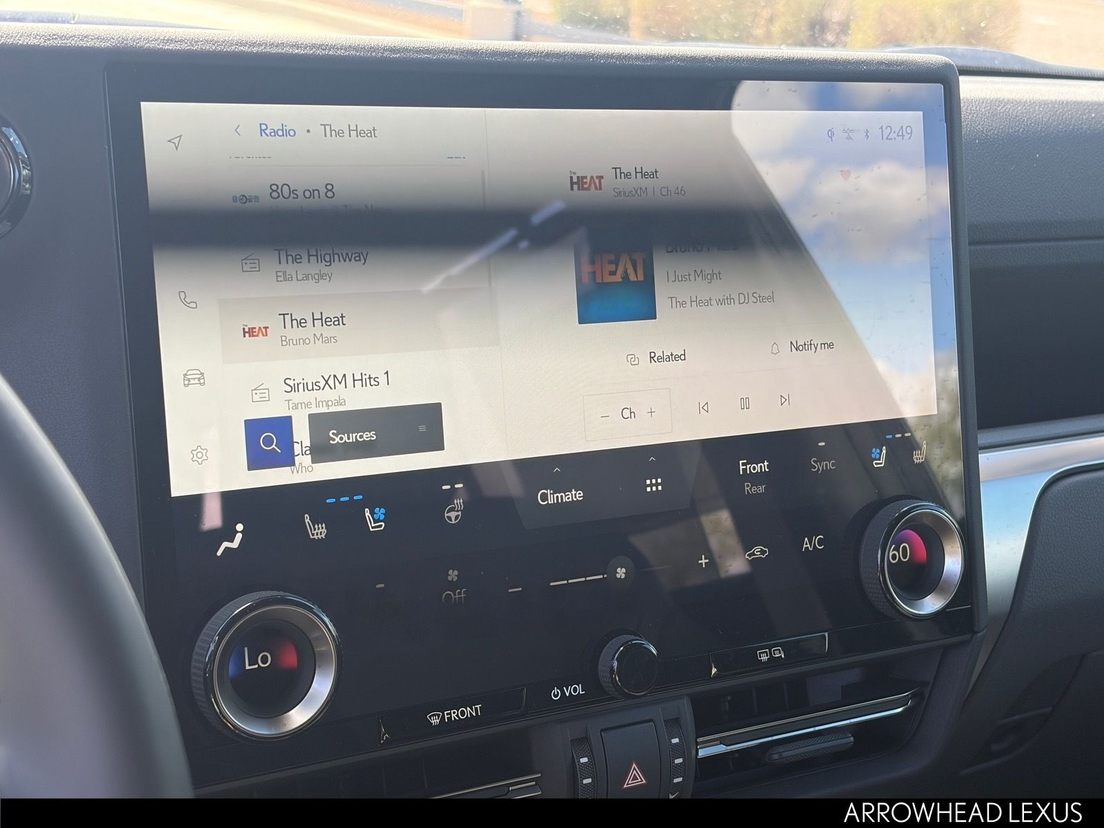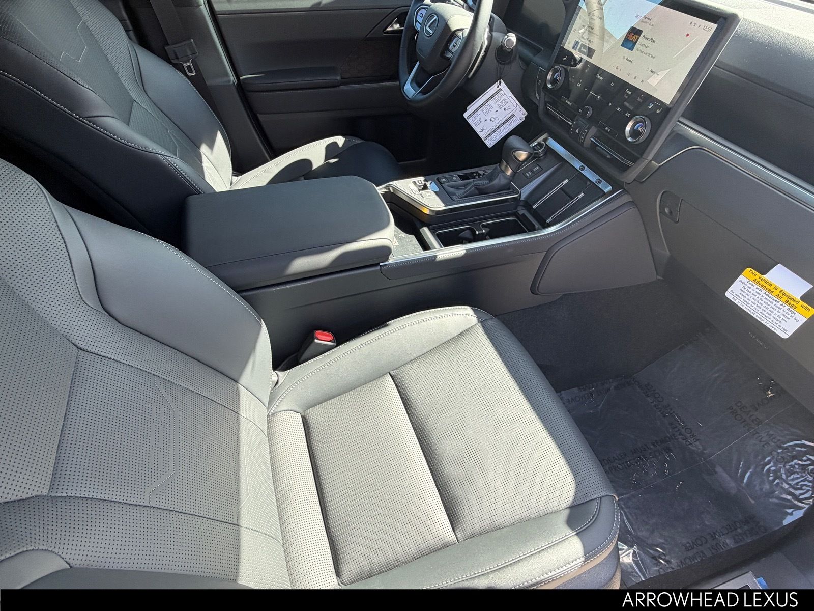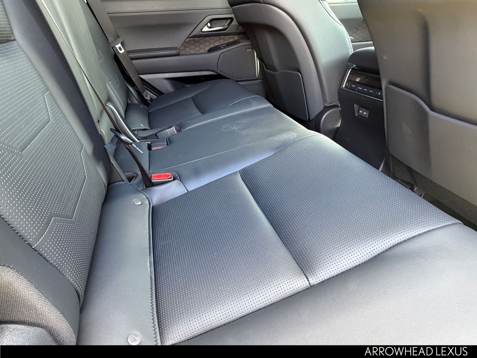 This Lexus TX is equipped with the following features: Accessory Package, Convenience Package (Digital Key and Traffic Jam Assist), Technology Package (Advanced Park w/Remote Park and Panoramic View Monitor), 2.4L I4 PDI Hybrid Turbocharged DOHC 16V, 12 Speakers, 120V/1500-Watt AC Power Outlet, 3rd row seats: split-bench, 4-Wheel Disc Brakes, ABS brakes, Adaptive suspension, Air Conditioning, All-Weather Cargo Mat, All-Weather Floor Liners, Alloy wheels, AM/FM radio, Apple CarPlay/Android Auto, Auto High-beam Headlights, Auto tilt-away steering wheel, Auto-dimming door mirrors, Auto-dimming Rear-View mirror, Automatic temperature control, Brake assist, Bumpers: body-color, Cargo Net, Delay-off headlights, Driver door bin, Driver vanity mirror, Dual front impact airbags, Dual front side impact airbags, Electronic Stability Control, Emergency Assistance Kit, Emergency communication system: Safety Connect (5-year minimum), Exterior Parking Camera Rear, F SPORT Heated and Ventilated Front Seats, Four wheel independent suspension, Front anti-roll bar, Front Bucket Seats, Front Center Armrest, Front dual zone A/C, Front fog lights, Front reading lights, Fully automatic headlights, Garage door transmitter: HomeLink, Headlight cleaning, Heated door mirrors, Heated front seats, Heated rear seats, Heated steering wheel, Illuminated Cargo Sills with Lexus Logo, Illuminated Door Sills with Lexus Logo, Illuminated entry, Key Gloves with Embossed Lexus Logo, Knee airbag, Leather Shift Knob, Leather steering wheel, Lexus Interface with 14" Touchscreen Display, Low tire pressure warning, Mark Levinson 21-Speaker PurePlay Surround Sound, Memory seat, Navigation system: Drive Connect Cloud Navigation (3-year trial subscription included), NuLuxe Seat Trim, Occupant sensing airbag, Outside temperature display, Overhead airbag, Panic alarm, Passenger door bin, Passenger vanity mirror, Power door mirrors, Power driver seat, Power Liftgate, Power passenger seat, Power steering, Power windows, Radio data system, Radio: 12-Speaker Lexus Premium Sound System, Rain sensing wipers, Rear air conditioning, Rear anti-roll bar, Rear Hatch Cargo Lamps, Rear reading lights, Rear window defroster, Rear window wiper, Reclining 3rd row seat, Remote keyless entry, Security system, SiriusXM Trial Offering: 33 Months, Speed control, Speed-sensing steering, Split folding rear seat, Spoiler, Steering wheel memory, Steering wheel mounted audio controls, Telescoping steering wheel, Tilt steering wheel, Tow Hitch Receiver, Traction control, Trip computer, Turn signal indicator mirrors, Variably intermittent wipers, Ventilated front seats, Ventilated rear seats, and Wheels: 22" Split 5-Spoke Alloy.