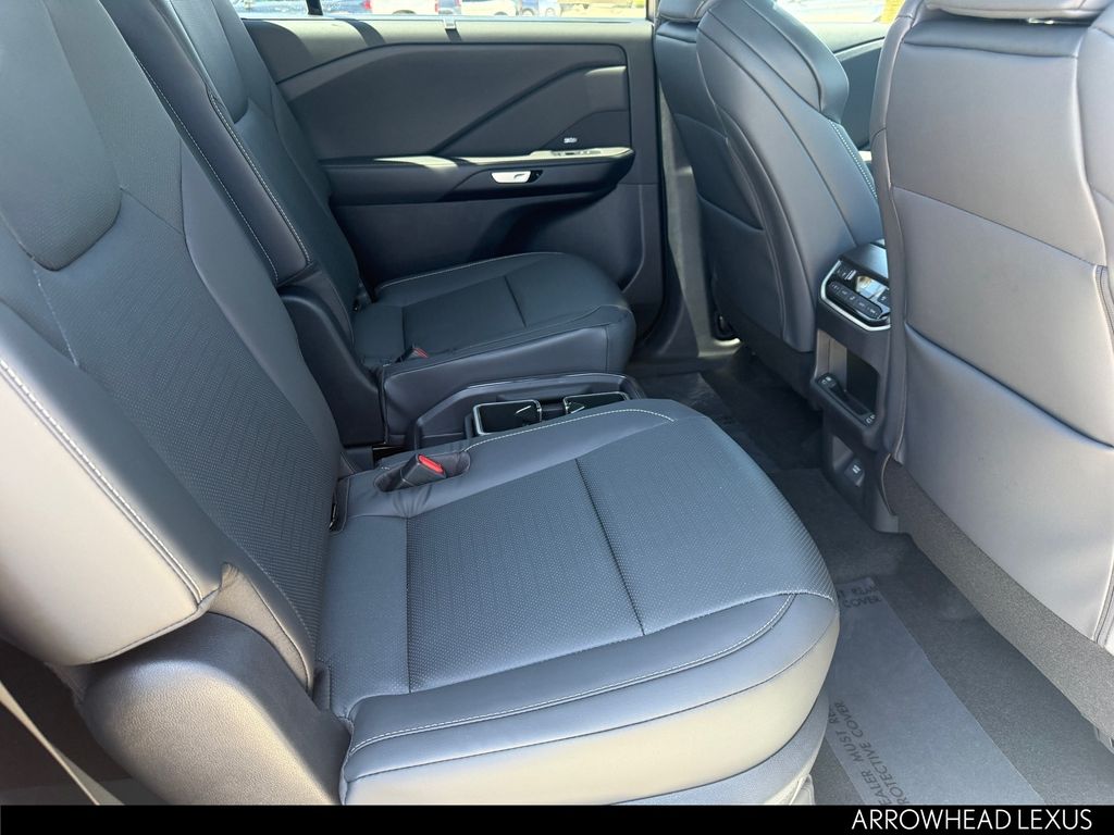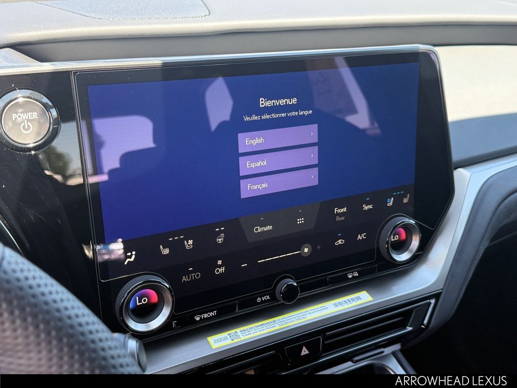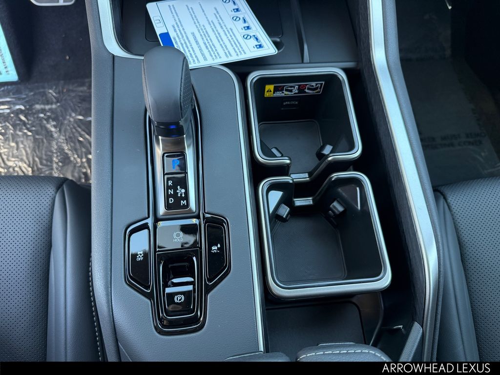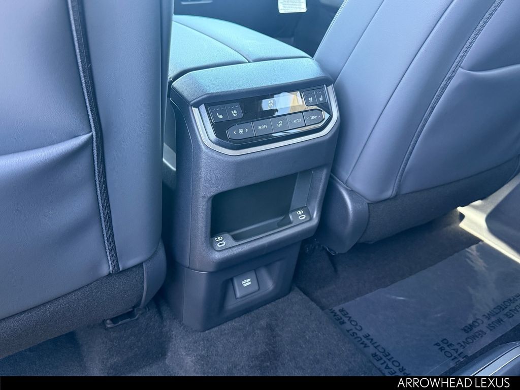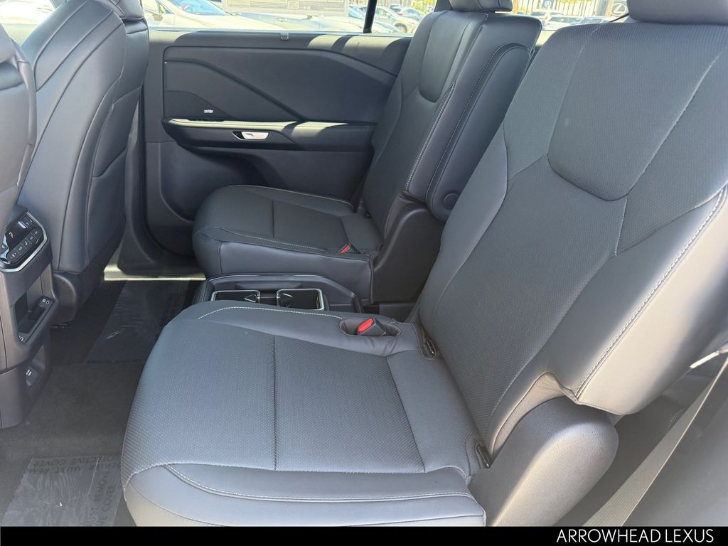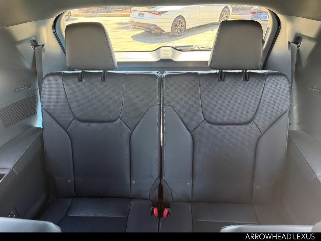 This Lexus TX is equipped with the following features: Convenience Package (Digital Key and Traffic Jam Assist), Technology Package (Advanced Park with Remote Park and Panoramic View Monitor), 2.4L I4 PDI Hybrid Turbocharged DOHC 16V, 12 Speakers, 120V/1500-Watt AC Power Outlet, 3rd row seats: split-bench, 4-Wheel Disc Brakes, ABS brakes, Adaptive suspension, Air Conditioning, Alloy wheels, AM/FM radio, Apple CarPlay/Android Auto, Auto High-beam Headlights, Auto tilt-away steering wheel, Auto-dimming door mirrors, Auto-dimming Rear-View mirror, Automatic temperature control, Brake assist, Bumpers: body-color, Delay-off headlights, Driver door bin, Driver vanity mirror, Dual front impact airbags, Dual front side impact airbags, Electronic Stability Control, Emergency communication system: Safety Connect (5-year minimum), Exterior Parking Camera Rear, F SPORT Black Badges, F SPORT Bumper Cover, F SPORT Heated and Ventilated Front Seats, Four wheel independent suspension, Front anti-roll bar, Front Bucket Seats, Front Center Armrest, Front dual zone A/C, Front fog lights, Front reading lights, Fully automatic headlights, Garage door transmitter: HomeLink, Headlight cleaning, Heated door mirrors, Heated front seats, Heated rear seats, Heated steering wheel, Illuminated entry, Knee airbag, Leather Shift Knob, Leather steering wheel, Lexus Interface with 14" Touchscreen Display, Lexus Multimedia Screen Protector, Lexus Quick Charge Cables, Low tire pressure warning, Mark Levinson 21-Speaker PurePlay Surround Sound, Memory seat, Navigation system: Drive Connect Cloud Navigation (3-year trial subscription included), NuLuxe Seat Trim, Occupant sensing airbag, Outside temperature display, Overhead airbag, Panic alarm, Passenger door bin, Passenger vanity mirror, Power door mirrors, Power driver seat, Power Liftgate, Power passenger seat, Power steering, Power windows, Radio data system, Radio: 12-Speaker Lexus Premium Sound System, Rain sensing wipers, Rear air conditioning, Rear anti-roll bar, Rear reading lights, Rear window defroster, Rear window wiper, Reclining 3rd row seat, Remote keyless entry, Security system, Speed control, Speed-sensing steering, Split folding rear seat, Spoiler, Steering wheel memory, Steering wheel mounted audio controls, Telescoping steering wheel, Tilt steering wheel, Traction control, Trip computer, Turn signal indicator mirrors, Variably intermittent wipers, Ventilated front seats, Ventilated rear seats, and Wheels: 22" Split 5-Spoke Alloy.