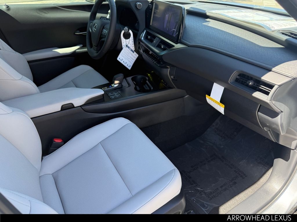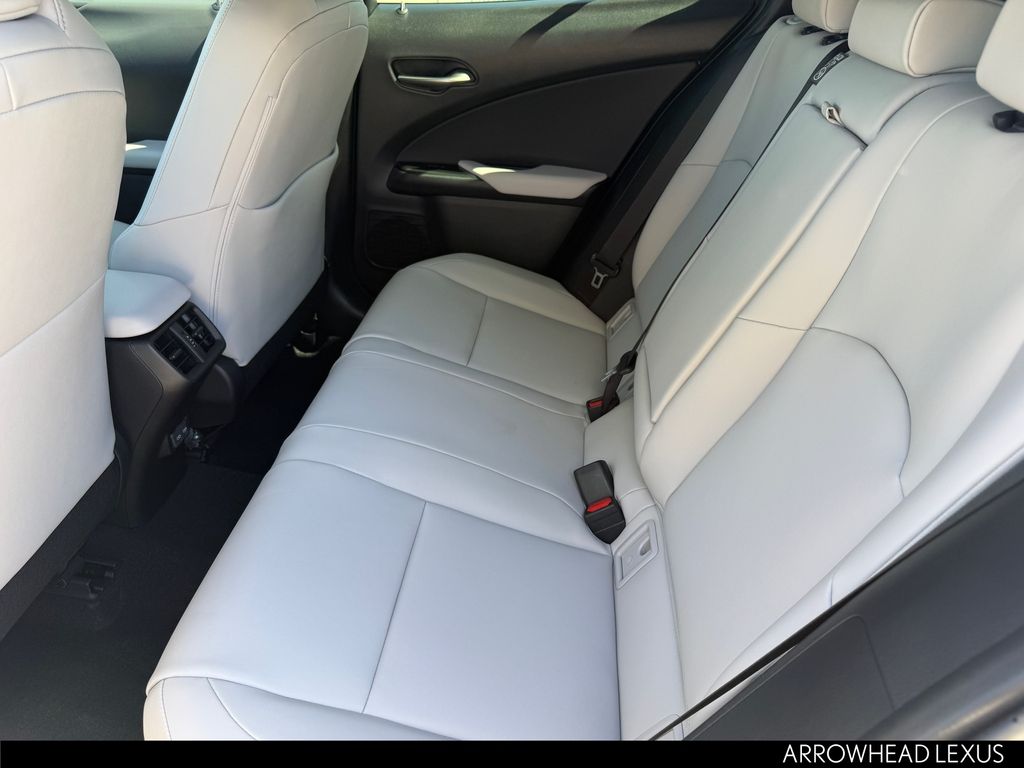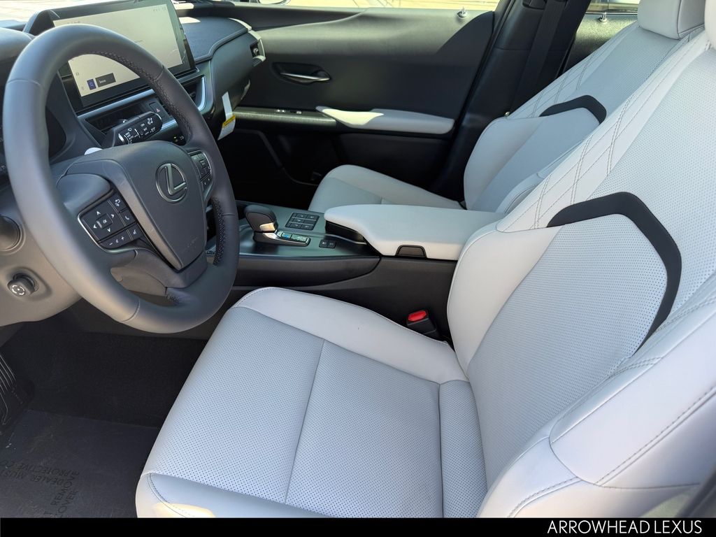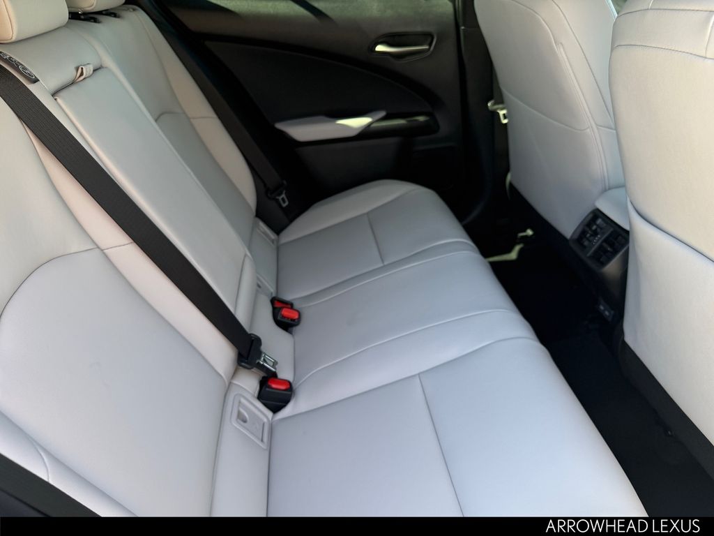 This Lexus UX is equipped with the following features: Cold Area Package, Premium Grade, 2.0L I4 DOHC 16V, 18" 5-Spoke Alloy Wheels, 4-Wheel Disc Brakes, 6 Speakers, ABS brakes, Air Conditioning, Alloy wheels, AM/FM radio: SiriusXM, Apple CarPlay/Android Auto, Auto High-beam Headlights, Auto-dimming Rear-View mirror, Automatic temperature control, Black Emblem Overlays, Brake assist, Bumpers: body-color, Color Head-Up Display, Compass, Delay-off headlights, Digital Key and SmartAccess Card Key, Driver door bin, Driver vanity mirror, Dual front impact airbags, Dual front side impact airbags, Electronic Stability Control, Emergency communication system: Safety Connect (10-year trial), Exterior Parking Camera Rear, Four wheel independent suspension, Front anti-roll bar, Front Bucket Seats, Front Center Armrest, Front dual zone A/C, Front reading lights, Fully automatic headlights, Garage door transmitter: HomeLink, Heated and Ventilated Front Seats, Heated door mirrors, Heated front seats, Illuminated entry, Knee airbag, Leather Shift Knob, Leather steering wheel, Lexus Interface with 12.3" Touchscreen Display, Lexus Interface with 8.0" Touchscreen Display, Low tire pressure warning, NuLuxe Seat Trim, Occupant sensing airbag, Outside temperature display, Overhead airbag, Panic alarm, Passenger door bin, Passenger vanity mirror, Power door mirrors, Power driver seat, Power Liftgate, Power moonroof, Power passenger seat, Power steering, Power windows, Radio data system, Radio: 6-Speaker Lexus Premium Sound System, Rain sensing wipers, Rear anti-roll bar, Rear reading lights, Rear side impact airbag, Rear window defroster, Rear window wiper, Remote keyless entry, Security system, SiriusXM Trial Offering: 33 Months, Speed control, Speed-sensing steering, Split folding rear seat, Spoiler, Steering wheel mounted audio controls, Tachometer, Telescoping steering wheel, Tilt steering wheel, Traction control, Trip computer, Turn signal indicator mirrors, Variably intermittent wipers, Ventilated front seats, and Wireless Charger.