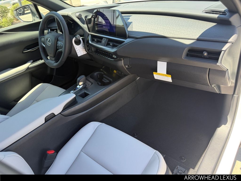 This Lexus UX is equipped with the following features: 2.0L I4 DOHC 16V, 18" 5-Spoke Alloy Wheels, 4-Wheel Disc Brakes, 6 Speakers, ABS brakes, Air Conditioning, Alloy wheels, AM/FM radio: SiriusXM, Apple CarPlay/Android Auto, Auto High-beam Headlights, Auto-Dimming Rear-View Mirror, Automatic temperature control, Black Emblem Overlays, Brake assist, Bumpers: body-color, Compass, Delay-off headlights, Driver door bin, Driver vanity mirror, Dual front impact airbags, Dual front side impact airbags, Electronic Stability Control, Emergency communication system: Safety Connect (10-year trial), Exterior Parking Camera Rear, Four wheel independent suspension, Front anti-roll bar, Front Bucket Seats, Front Center Armrest, Front dual zone A/C, Front reading lights, Front Seats, Fully automatic headlights, Heated door mirrors, Illuminated Door Sills, Illuminated entry, Knee airbag, Leather Shift Knob, Leather steering wheel, Lexus Interface with 8.0" Touchscreen Display, Low tire pressure warning, NuLuxe Seat Trim, Occupant sensing airbag, Outside temperature display, Overhead airbag, Panic alarm, Passenger door bin, Passenger vanity mirror, Power door mirrors, Power driver seat, Power passenger seat, Power Rear Door with Kick Sensor, Power steering, Power Tilt and Slide Moonroof, Power windows, Radio data system, Radio: 6-Speaker Lexus Premium Sound System, Rear anti-roll bar, Rear Parking Sensors, Rear reading lights, Rear side impact airbag, Rear window defroster, Rear window wiper, Remote keyless entry, Security system, Speed control, Speed-sensing steering, Split folding rear seat, Spoiler, Steering wheel mounted audio controls, Tachometer, Telescoping steering wheel, Tilt steering wheel, Traction control, Trip computer, Turn signal indicator mirrors, Variably intermittent wipers, Wheels: 18" Matte Black Alloy, and Wireless Charger.