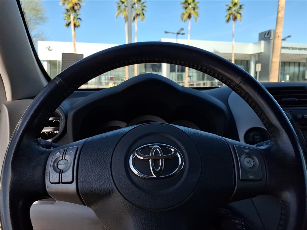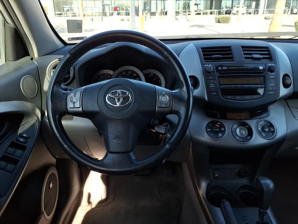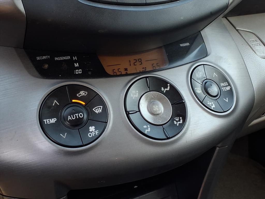 This Toyota RAV4 is equipped with the following features: 3.5L V6 DOHC, Ash w/Cloth Rafima D Seat Trim, 17" 6 Spoke Aluminum Wheels, 3.08 Axle Ratio, 4-Wheel Disc Brakes, 6 Speakers, ABS brakes, Air Conditioning, Alloy wheels, AM/FM 6-Disc CD Changer, AM/FM radio, Automatic temperature control, Brake assist, Bumpers: body-color, CD player, Cloth Blocks Seat Trim, Driver door bin, Driver vanity mirror, Dual front impact airbags, Dual front side impact airbags, Electronic Stability Control, Four wheel independent suspension, Front anti-roll bar, Front Bucket Seats, Front Center Armrest w/Storage, Front dual zone A/C, Front fog lights, Front reading lights, Heated door mirrors, Illuminated entry, Leather Shift Knob, Leather steering wheel, Low tire pressure warning, Occupant sensing airbag, Outside temperature display, Overhead airbag, Overhead console, Panic alarm, Passenger door bin, Passenger vanity mirror, Power door mirrors, Power driver seat, Power steering, Power windows, Rear anti-roll bar, Rear seat center armrest, Rear window defroster, Rear window wiper, Remote keyless entry, Roof rack, Speed control, Speed-sensing steering, Split folding rear seat, Spoiler, Steering wheel mounted audio controls, Tachometer, Telescoping steering wheel, Tilt steering wheel, Traction control, and Variably intermittent wipers.