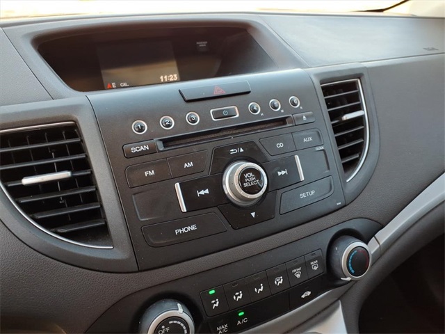 This Honda CR-V is equipped with the following features: 17" 10-Spoke Alloy Wheels, 4-Wheel Disc Brakes, 4.44 Axle Ratio, 6 Speakers, ABS brakes, Air Conditioning, Alloy wheels, AM/FM radio, AM/FM/CD Audio System w/6 Speakers, Brake assist, Bumpers: body-color, CD player, Cloth Seat Trim, Compass, Delay-off headlights, Driver door bin, Driver vanity mirror, Driver's Seat Mounted Armrest, Dual front impact airbags, Dual front side impact airbags, Electronic Stability Control, Exterior Parking Camera Rear, Four wheel independent suspension, Front anti-roll bar, Front Bucket Seats, Front fog lights, Front reading lights, Illuminated entry, Low tire pressure warning, Occupant sensing airbag, Outside temperature display, Overhead airbag, Overhead console, Panic alarm, Passenger door bin, Passenger seat mounted armrest, Passenger vanity mirror, Power door mirrors, Power moonroof, Power steering, Power windows, Radio data system, Rear anti-roll bar, Rear seat center armrest, Rear window defroster, Rear window wiper, Remote keyless entry, Security system, Speed control, Speed-sensing steering, Speed-Sensitive Wipers, Split folding rear seat, Steering wheel mounted audio controls, Tachometer, Telescoping steering wheel, Tilt steering wheel, Traction control, Trip computer, and Variably intermittent wipers.