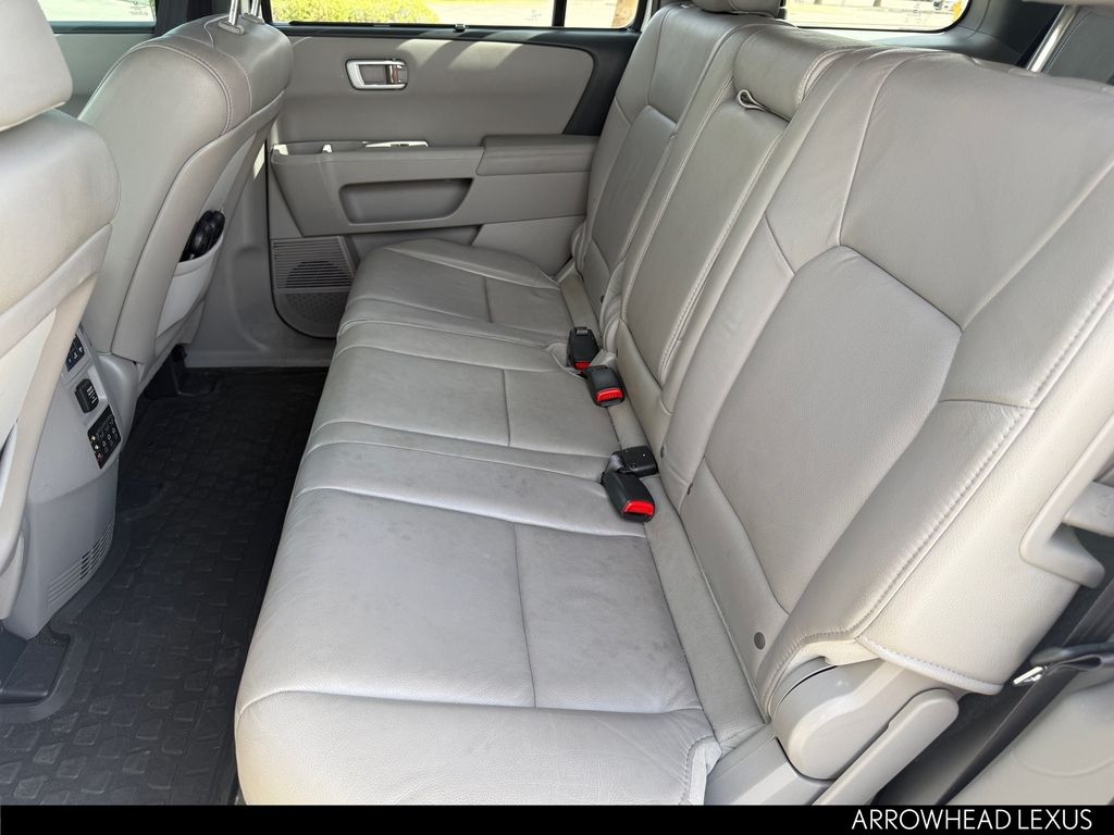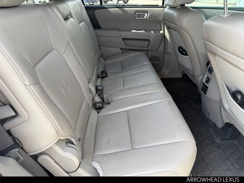 This Honda Pilot is equipped with the following features: 4WD, 10 Speakers, 18" Alloy Wheels, 3rd row seats: split-bench, 4-Wheel Disc Brakes, 4.312 Axle Ratio, A/V remote, ABS brakes, Air Conditioning, Alloy wheels, AM/FM radio: XM, AM/FM/CD Premium Audio System, Anti-whiplash front head restraints, Auto-dimming Rear-View mirror, Automatic temperature control, Bodyside moldings, Brake assist, Bumpers: body-color, CD player, Compass, Delay-off headlights, Driver door bin, Driver vanity mirror, Dual front impact airbags, Dual front side impact airbags, Electronic Stability Control, Exterior Parking Camera Rear, Four wheel independent suspension, Front anti-roll bar, Front Bucket Seats, Front Center Armrest, Front dual zone A/C, Front fog lights, Front reading lights, Garage door transmitter: HomeLink, Headphones, Heated door mirrors, Heated Front Bucket Seats, Heated front seats, Illuminated entry, Leather Shift Knob, Leather-Trimmed Seat Trim, Low tire pressure warning, Memory seat, Navigation System, Occupant sensing airbag, Outside temperature display, Overhead airbag, Overhead console, Panic alarm, Passenger door bin, Passenger vanity mirror, Power door mirrors, Power driver seat, Power Liftgate, Power moonroof, Power passenger seat, Power steering, Power windows, Radio data system, Rear air conditioning, Rear anti-roll bar, Rear audio controls, Rear reading lights, Rear seat center armrest, Rear window defroster, Rear window wiper, Remote keyless entry, Roof rack: rails only, Security system, Speed control, Speed-sensing steering, Speed-Sensitive Wipers, Split folding rear seat, Steering wheel mounted audio controls, Tachometer, Telescoping steering wheel, Tilt steering wheel, Traction control, Trip computer, Turn signal indicator mirrors, Variably intermittent wipers, and XM Radio.