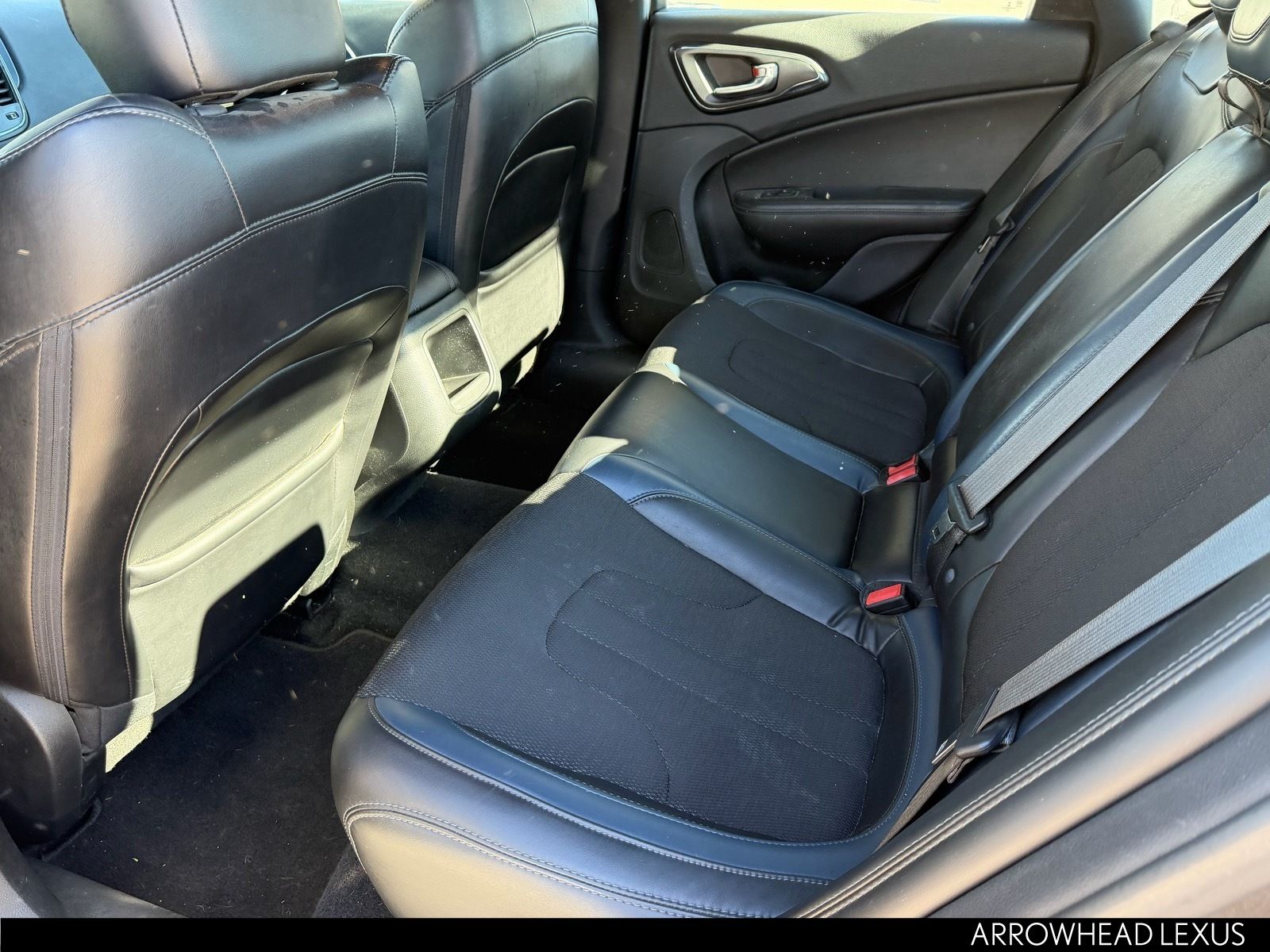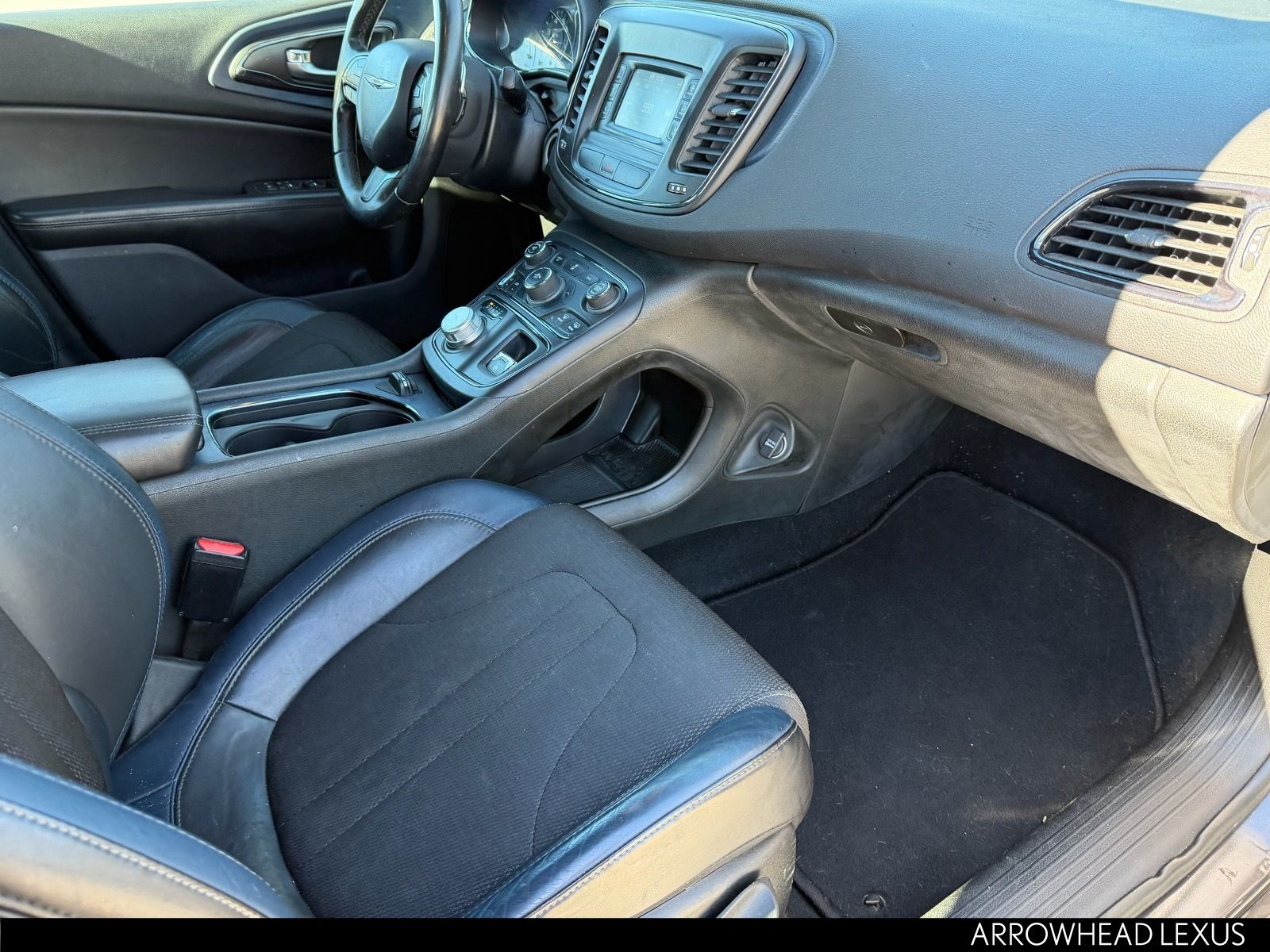 This Chrysler 200 is equipped with the following features: Black w/Premium Cloth Bucket Seats, 4-Wheel Disc Brakes, 6 Speakers, ABS brakes, Accessory Switch Bank, Air Conditioning, Alloy wheels, AM/FM radio: SiriusXM, Anti-whiplash front head restraints, Brake assist, Bumpers: body-color, Cloth w/Leather Trimmed Sport Seats, Compass, Delay-off headlights, Driver door bin, Driver vanity mirror, Dual front impact airbags, Dual front side impact airbags, Electronic Stability Control, Four wheel independent suspension, Front anti-roll bar, Front Bucket Seats, Front Center Armrest, Front fog lights, Front reading lights, Fully automatic headlights, Heated door mirrors, Illuminated entry, Integrated Voice Command w/Bluetooth, Knee airbag, Low tire pressure warning, Occupant sensing airbag, Outside temperature display, Overhead airbag, Overhead console, Panic alarm, Passenger door bin, Passenger vanity mirror, Power door mirrors, Power driver seat, Power steering, Power windows, Radio data system, Radio: Uconnect 5.0 AM/FM/BT, Rear anti-roll bar, Rear seat center armrest, Rear window defroster, Remote keyless entry, Security system, SIRIUSXM Satellite Radio, Speed control, Speed-sensing steering, Speed-Sensitive Wipers, Split folding rear seat, Steering wheel mounted audio controls, Tachometer, Telescoping steering wheel, Tilt steering wheel, Traction control, Trip computer, Uconnect Voice Command w/Bluetooth, Variably intermittent wipers, and Wheels: 18" x 8.0" Satin Carbon Aluminum.