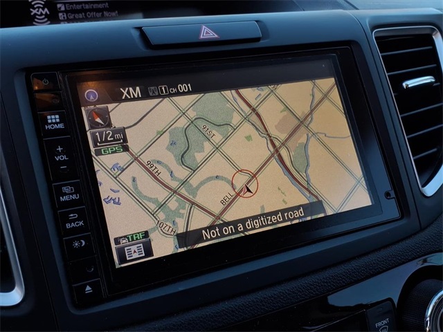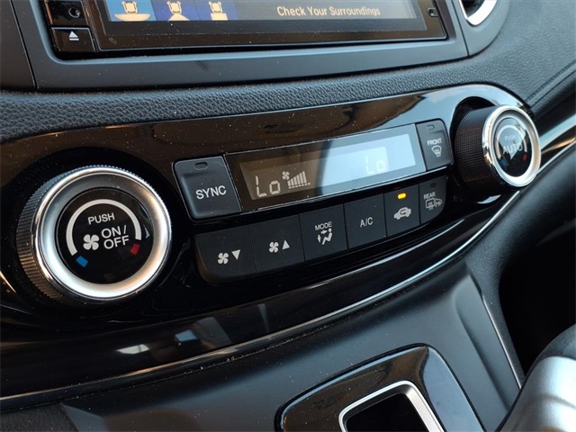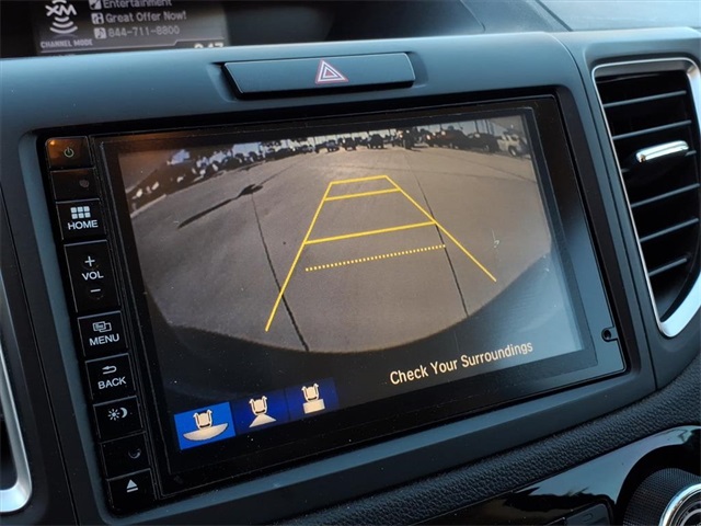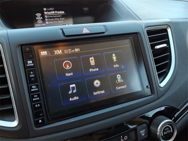 This Honda CR-V is equipped with the following features: AWD, 17" Alloy Wheels, 4-Wheel Disc Brakes, 5.048 Axle Ratio, 7 Speakers, ABS brakes, Air Conditioning, Alloy wheels, AM/FM radio: SiriusXM, Auto-dimming Rear-View mirror, Automatic temperature control, Brake assist, Bumpers: body-color, CD player, Compass, Delay-off headlights, Driver door bin, Driver vanity mirror, Dual front impact airbags, Dual front side impact airbags, Electronic Stability Control, Exterior Parking Camera Rear, Four wheel independent suspension, Front anti-roll bar, Front Bucket Seats, Front Center Armrest, Front dual zone A/C, Front fog lights, Front reading lights, Heated door mirrors, Heated Front Bucket Seats, Heated front seats, Illuminated entry, Leather Seat Trim, Leather Shift Knob, Low tire pressure warning, Occupant sensing airbag, Outside temperature display, Overhead airbag, Overhead console, Panic alarm, Passenger door bin, Passenger vanity mirror, Power door mirrors, Power driver seat, Power moonroof, Power steering, Power windows, Radio data system, Radio: AM/FM/CD/SiriusXM Audio System, Rear anti-roll bar, Rear seat center armrest, Rear window defroster, Rear window wiper, Remote keyless entry, Roof rack: rails only, Security system, Speed control, Speed-sensing steering, Speed-Sensitive Wipers, Split folding rear seat, Steering wheel mounted audio controls, Tachometer, Telescoping steering wheel, Tilt steering wheel, Traction control, Trip computer, and Variably intermittent wipers.