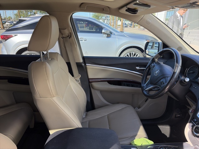 This Acura MDX is equipped with the following features: Parchment w/Leather-Trimmed Interior, 10 Speakers, 3rd row seats: split-bench, 4-Wheel Disc Brakes, 4.33 Axle Ratio, ABS brakes, Air Conditioning, Alloy wheels, AM/FM radio: SiriusXM, Anti-whiplash front head restraints, Auto tilt-away steering wheel, Auto-dimming Rear-View mirror, Automatic temperature control, Brake assist, Bumpers: body-color, CD player, Compass, Delay-off headlights, Driver door bin, Driver vanity mirror, Dual front impact airbags, Dual front side impact airbags, Electronic Stability Control, Exterior Parking Camera Rear, Four wheel independent suspension, Front anti-roll bar, Front Bucket Seats, Front Center Armrest w/Storage, Front dual zone A/C, Front reading lights, Garage door transmitter: HomeLink, Heated door mirrors, Heated front seats, Heated Front Sport Seats, Illuminated entry, Knee airbag, Lane Departure Warning System, Leather-Trimmed Interior, Low tire pressure warning, Memory seat, Navigation System, Occupant sensing airbag, Outside temperature display, Overhead airbag, Overhead console, Panic alarm, Passenger door bin, Passenger vanity mirror, Power door mirrors, Power driver seat, Power Liftgate, Power moonroof, Power passenger seat, Power steering, Power windows, Premium audio system: Acura/ELS Studio, Radio data system, Radio: Acura/ELS Studio Premium Audio System, Rain sensing wipers, Rear air conditioning, Rear anti-roll bar, Rear reading lights, Rear seat center armrest, Rear window defroster, Rear window wiper, Remote keyless entry, Security system, Speed control, Speed-sensing steering, Speed-Sensitive Wipers, Split folding rear seat, Spoiler, Steering wheel memory, Steering wheel mounted audio controls, Tachometer, Telescoping steering wheel, Tilt steering wheel, Traction control, Trip computer, Turn signal indicator mirrors, Variably intermittent wipers, and Wheels: 19" x 8.0" Machine Finished Aluminum Alloy.