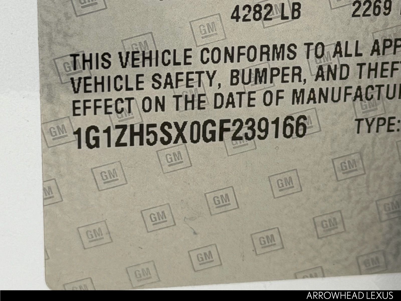 - VIN : 1G1ZH5SX0GF239166