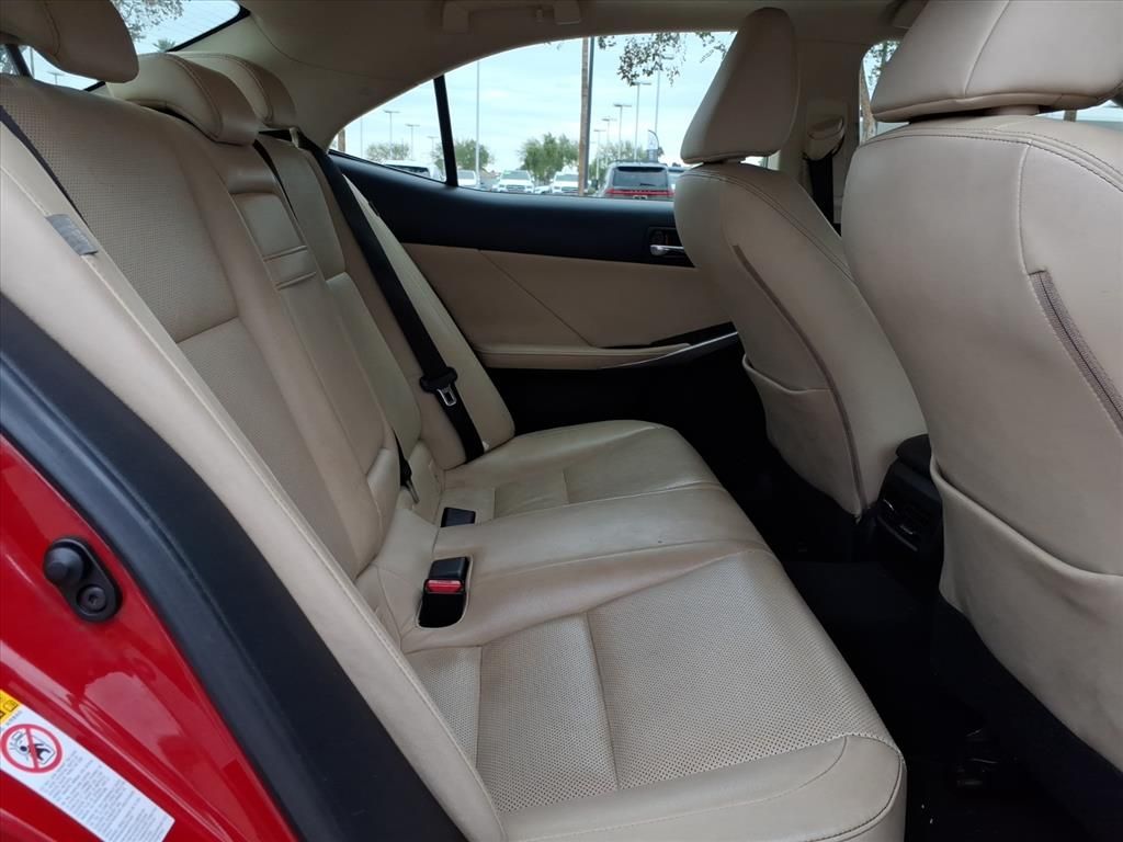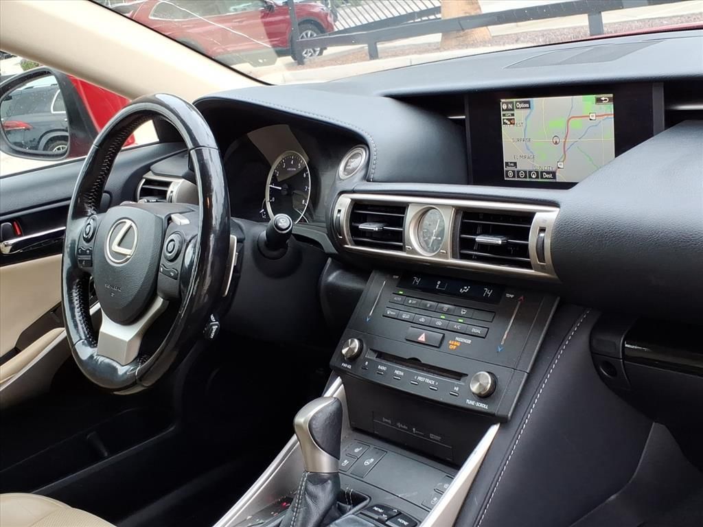 This Lexus IS is equipped with the following features: Premium Plus Package (Power Tilt/Telescopic Steering Wheel and Rain-Sensing Windshield Wipers), AWD, Parchment w/Leather Seat Trim w/Contrast Stitching, 17" x 7.5" 10-Spoke Aluminum Alloy Wheels, 4-Wheel Disc Brakes, 8 Speakers, ABS brakes, Air Conditioning, Alloy wheels, AM/FM radio: SiriusXM, Auto-dimming Rear-View mirror, Automatic temperature control, Brake assist, Bumpers: body-color, CD player, Compass, Delay-off headlights, Driver door bin, Driver vanity mirror, Dual front impact airbags, Dual front side impact airbags, Electronic Stability Control, Emergency communication system: Safety Connect, Four wheel independent suspension, Front anti-roll bar, Front Bucket Seats, Front Center Armrest, Front dual zone A/C, Front fog lights, Front reading lights, Fully automatic headlights, Garage door transmitter: HomeLink, Heated door mirrors, Heated Front Power Bucket Seats, Heated front seats, High intensity discharge headlights: Bi-Xenon, Illuminated entry, Knee airbag, Low tire pressure warning, NuLuxe Seat Trim, Occupant sensing airbag, Outside temperature display, Overhead airbag, Overhead console, Panic alarm, Passenger door bin, Passenger vanity mirror, Power door mirrors, Power driver seat, Power moonroof, Power passenger seat, Power steering, Power windows, Radio data system, Radio: Lexus Display Audio, Rear anti-roll bar, Rear reading lights, Rear seat center armrest, Rear side impact airbag, Rear window defroster, Remote keyless entry, Security system, Speed control, Speed-sensing steering, Speed-Sensitive Wipers, Split folding rear seat, Steering wheel mounted audio controls, Tachometer, Telescoping steering wheel, Tilt steering wheel, Traction control, Trip computer, Turn signal indicator mirrors, and Variably intermittent wipers.