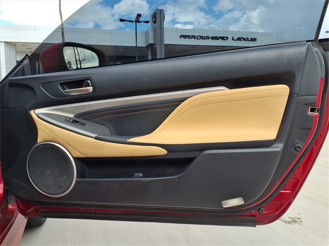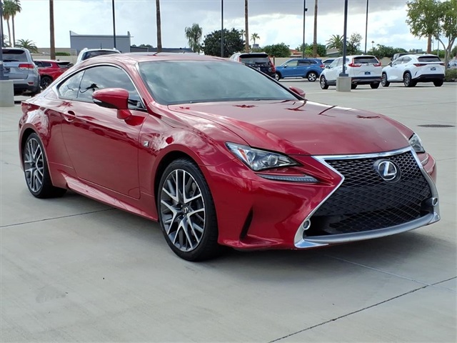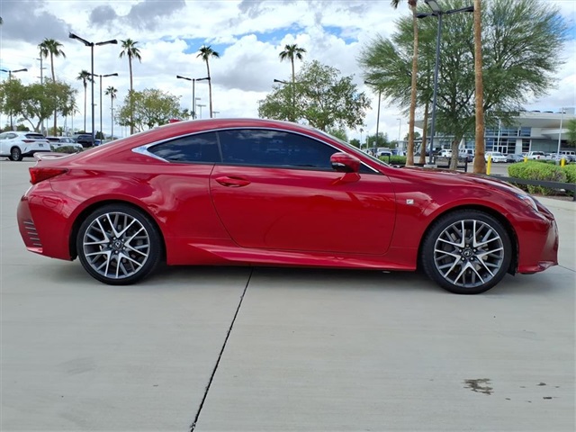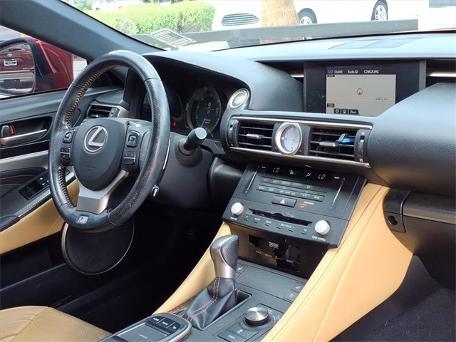 **Sun City Trade-Ins Lowest Miles Nicest Condition Vehicles in the Valley** This Lexus RC is equipped with the following features: F-Sport Package w/Summer Tires (Adaptive Variable Suspension, Aluminum Sport Pedals, Black Headliner, Blind Spot Monitor w/Rear Cross Traffic Alert, Driver Seat Memory, F Sport Front Fender Badges, F Sport Nuluxe Seat Trim, F Sport Shift Knob, Glove Box w/Key, Heated & Vented Driver & Passenger Seats, High-Friction Brake Pads, LFA Inspired TFT Instrumentation, Perf Leather Steering Wheel w/Paddle Shifters, Power Front Sport Seats w/Contrast Stitching, Power Tilt/Telescoping Steering Column, Silver Performance Trim, Sport Vehicle Dynamics Integrated Mgmt (VDIM), Stainless Steel Scuff Plates, Unique Front Fascia/Grille, and Wheels: 19" x 8" Aluminum Alloy F Sport), Navigation System, 10 Speakers, 18" x 8" Aluminum Alloy Wheels, 4-Wheel Disc Brakes, ABS brakes, Air Conditioning, Alloy wheels, AM/FM radio: SiriusXM, Auto-dimming Rear-View mirror, Automatic temperature control, Back-Up Monitor w/Dynamic Grid Lines, Brake assist, Bumpers: body-color, CD player, Compass, Delay-off headlights, Driver door bin, Driver vanity mirror, Dual front impact airbags, Dual front side impact airbags, Electronic Stability Control, Emergency communication system: Safety Connect, Exterior Parking Camera Rear, Four wheel independent suspension, Front anti-roll bar, Front Bucket Seats, Front Center Armrest, Front dual zone A/C, Front reading lights, Fully automatic headlights, Garage door transmitter: HomeLink, Genuine wood dashboard insert, Genuine wood door panel insert, Heated door mirrors, Illuminated entry, Knee airbag, Leather Shift Knob, Low tire pressure warning, NuLuxe Interior Seat Trim, Occupant sensing airbag, Outside temperature display, Overhead airbag, Overhead console, Panic alarm, Passenger door bin, Passenger vanity mirror, Power door mirrors, Power driver seat, Power Front Bucket Seats, Power passenger seat, Power steering, Power windows, Radio data system, Radio: AM/FM/In-Dash CD w/7" VGA Display, Rear anti-roll bar, Rear reading lights, Rear side impact airbag, Rear window defroster, Remote keyless entry, Security system, Speed control, Speed-sensing steering, Speed-Sensitive Wipers, Split folding rear seat, Steering wheel mounted audio controls, Tachometer, Telescoping steering wheel, Tilt steering wheel, Traction control, Trip computer, Turn signal indicator mirrors, and Variably intermittent wipers.
