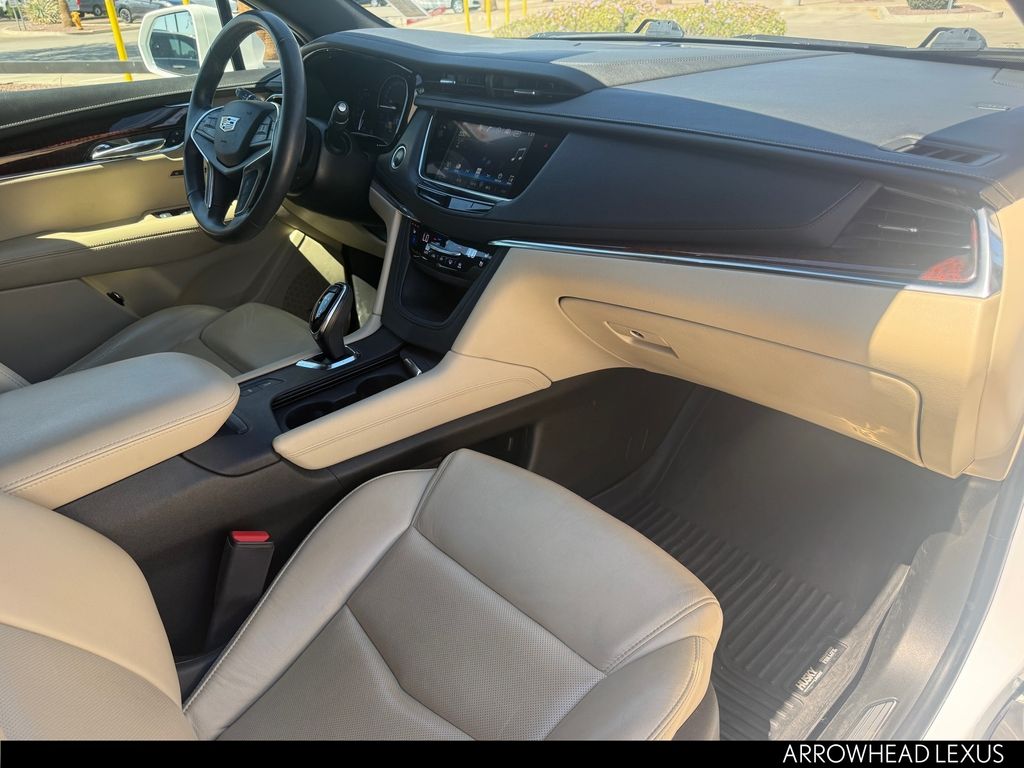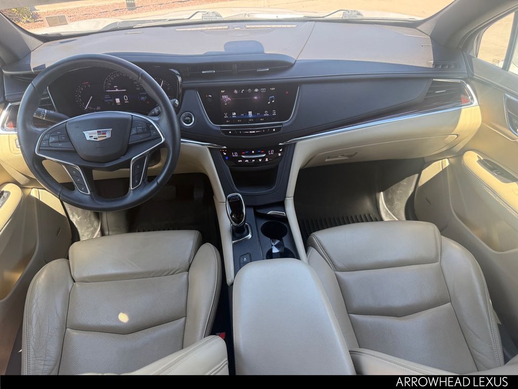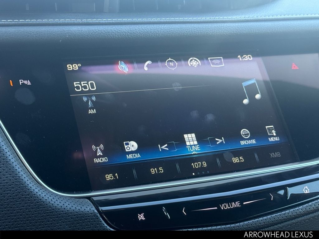 This Cadillac XT5 is equipped with the following features: Preferred Equipment Group 1SE (Automatic Dual-Zone Climate Control, Body-Color Heated Power-Adjustable Outside Mirrors, Front & Rear Park Assist, and Low Speed Front Automatic Braking), 14 Speakers, 2-Way Power Driver Lumbar Control Seat Adjuster, 2-Way Power Passenger Lumbar Control Seat Adjuster, 3.20 Axle Ratio, 4-Wheel Disc Brakes, 8-Way Power Front Passenger Seat Adjuster, ABS brakes, Adaptive suspension, Air Conditioning, Alloy wheels, AM/FM radio: SiriusXM, Apple CarPlay/Android Auto, Auto High-beam Headlights, Auto-dimming door mirrors, Auto-dimming Rear-View mirror, Automatic temperature control, Black Molded Splash Guards (LPO), Bodyside moldings, Bose Studio Surround Sound w/14-Speakers, Brake assist, Bumpers: body-color, Child-Seat-Sensing Airbag, Compass, Delay-off headlights, Driver & Front Passenger Heated Seats, Driver door bin, Driver vanity mirror, Dual front impact airbags, Dual front side impact airbags, Electronic Stability Control, Emergency communication system: OnStar Directions & Connections, Exterior Parking Camera Rear, Four wheel independent suspension, Front anti-roll bar, Front Bucket Seats, Front Center Armrest, Front dual zone A/C, Front License Plate Bracket, Front reading lights, Full Leather Seats w/Mini Perforated Inserts, Fully automatic headlights, Garage door transmitter, Genuine wood door panel insert, Heated door mirrors, Heated front seats, Heated steering wheel, Illuminated entry, Lane Departure Warning System, Lateral Mesh Cargo Net, Leather steering wheel, Low tire pressure warning, Memory seat, Navigation System, Occupant sensing airbag, Outside temperature display, Overhead airbag, Overhead console, Panic alarm, Passenger door bin, Passenger vanity mirror, Performance Suspension, Power door mirrors, Power driver seat, Power Liftgate, Power moonroof: UltraView, Power passenger seat, Power steering, Power windows, Premium audio system: Cadillac CUE, Radio data system, Radio: Cadillac CUE Info & Media Control w/Nav, Rain sensing wipers, Rear air conditioning, Rear anti-roll bar, Rear reading lights, Rear seat center armrest, Rear window defroster, Rear window wiper, Remote keyless entry, Road Emergency Tool Kit, Roof rack: rails only, SiriusXM Satellite Radio, Speed control, Speed-sensing steering, Split folding rear seat, Spoiler, Steering wheel memory, Steering wheel mounted audio controls, Tachometer, Telescoping steering wheel, Tilt steering wheel, Traction control, Trip computer, Variably intermittent wipers, Ventilated Driver & Front Passenger Seats, Ventilated front seats, Voltmeter, Wheel Locks, Wheels: 20" x 8" Sterling Silver Painted Finish, and Wheels: 20" x 8" Ultra-Bright Machined Faced.