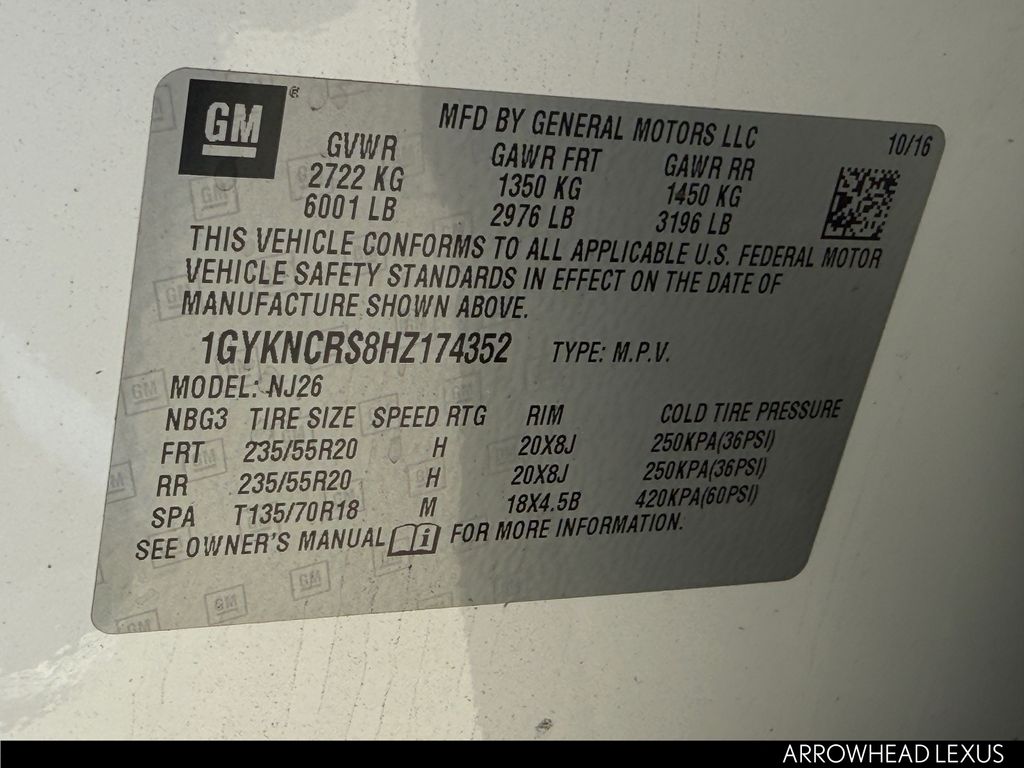 - VIN : 1GYKNCRS8HZ174352